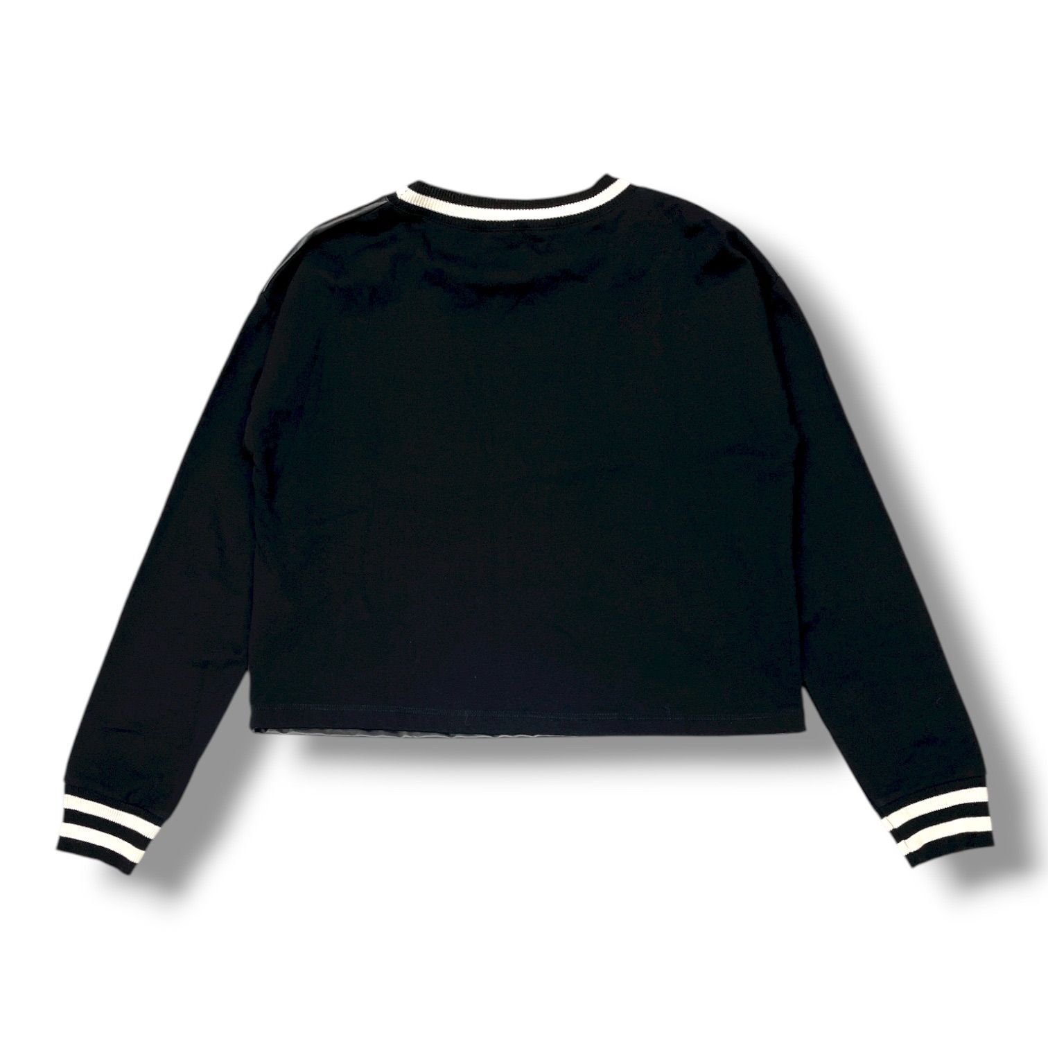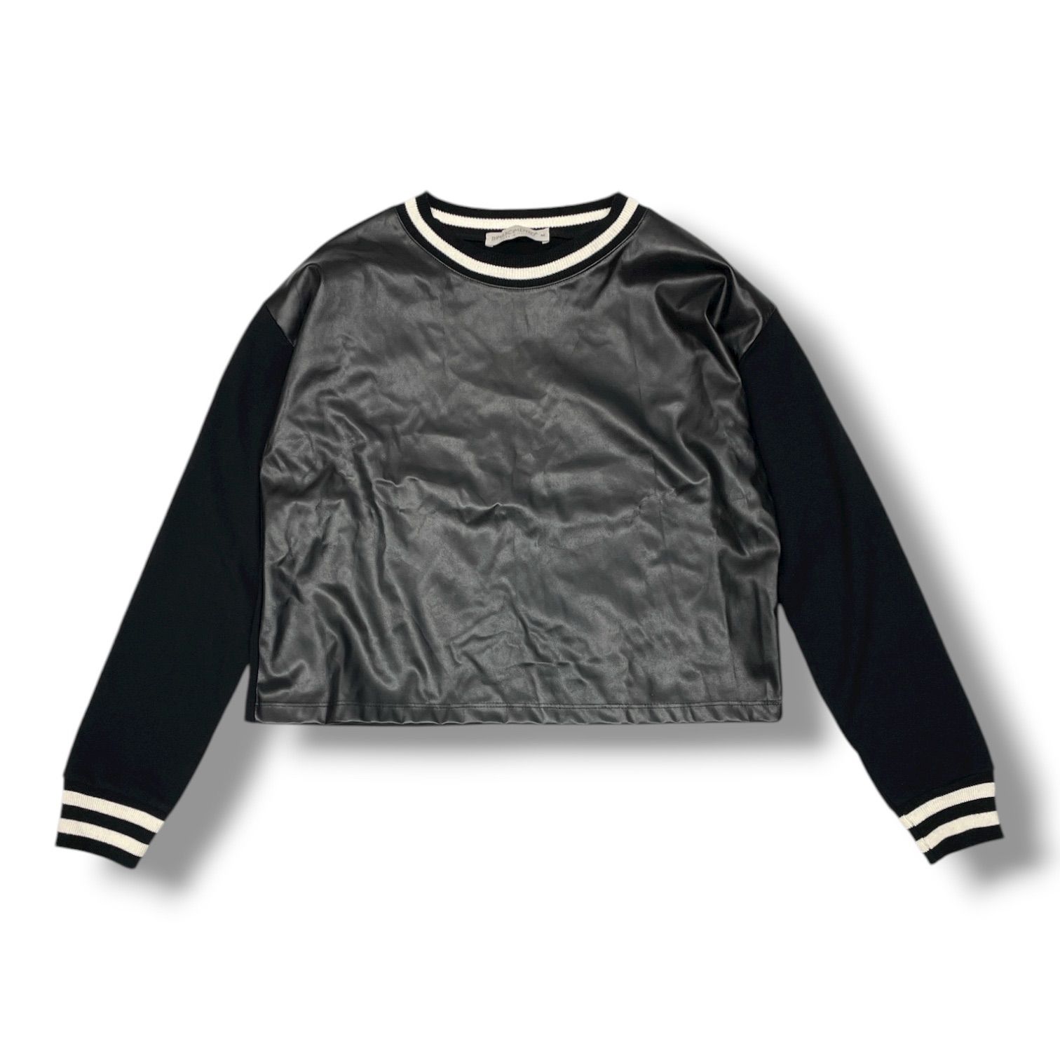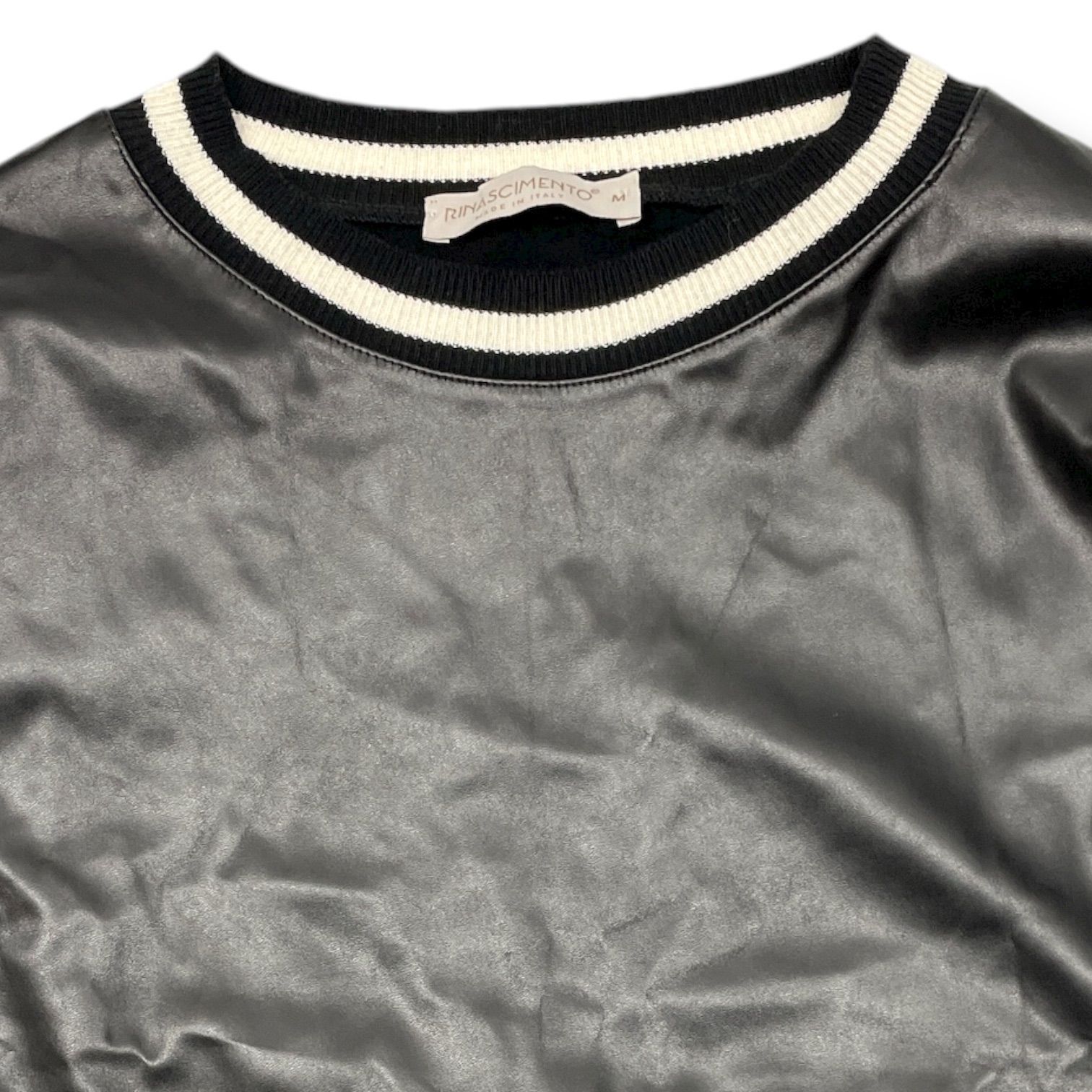 RINASCIMENTO リナシメント 異素材切替トップス カットソー レザー スウェット 裏起毛 スタジャン風 CFC0104182 イタリア製 黒 ブラック Mサイズ レディース 秋 ゴーゴー古着マルイ北千住店 2 No.1135