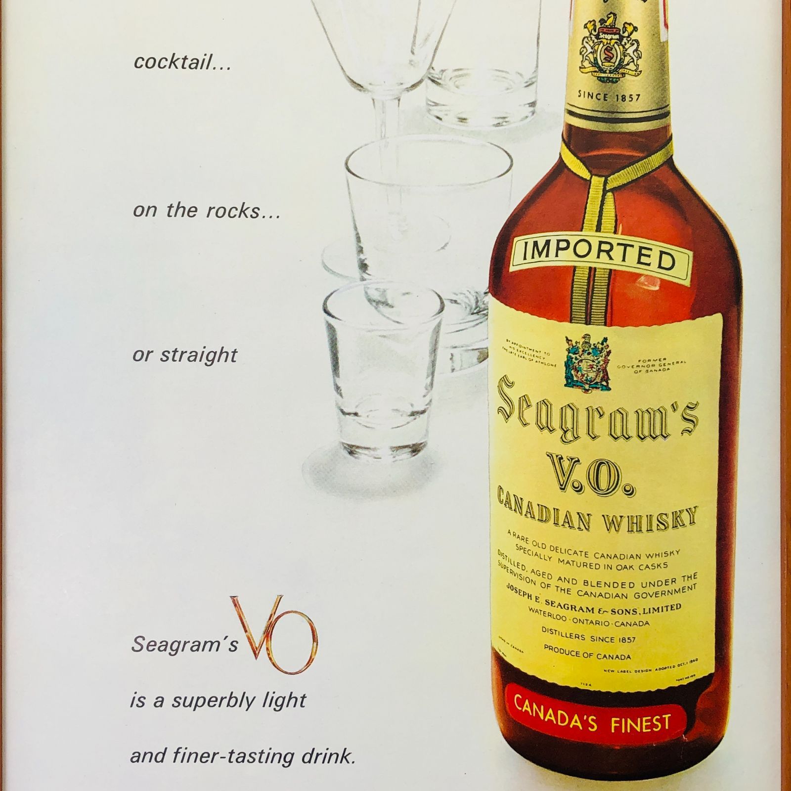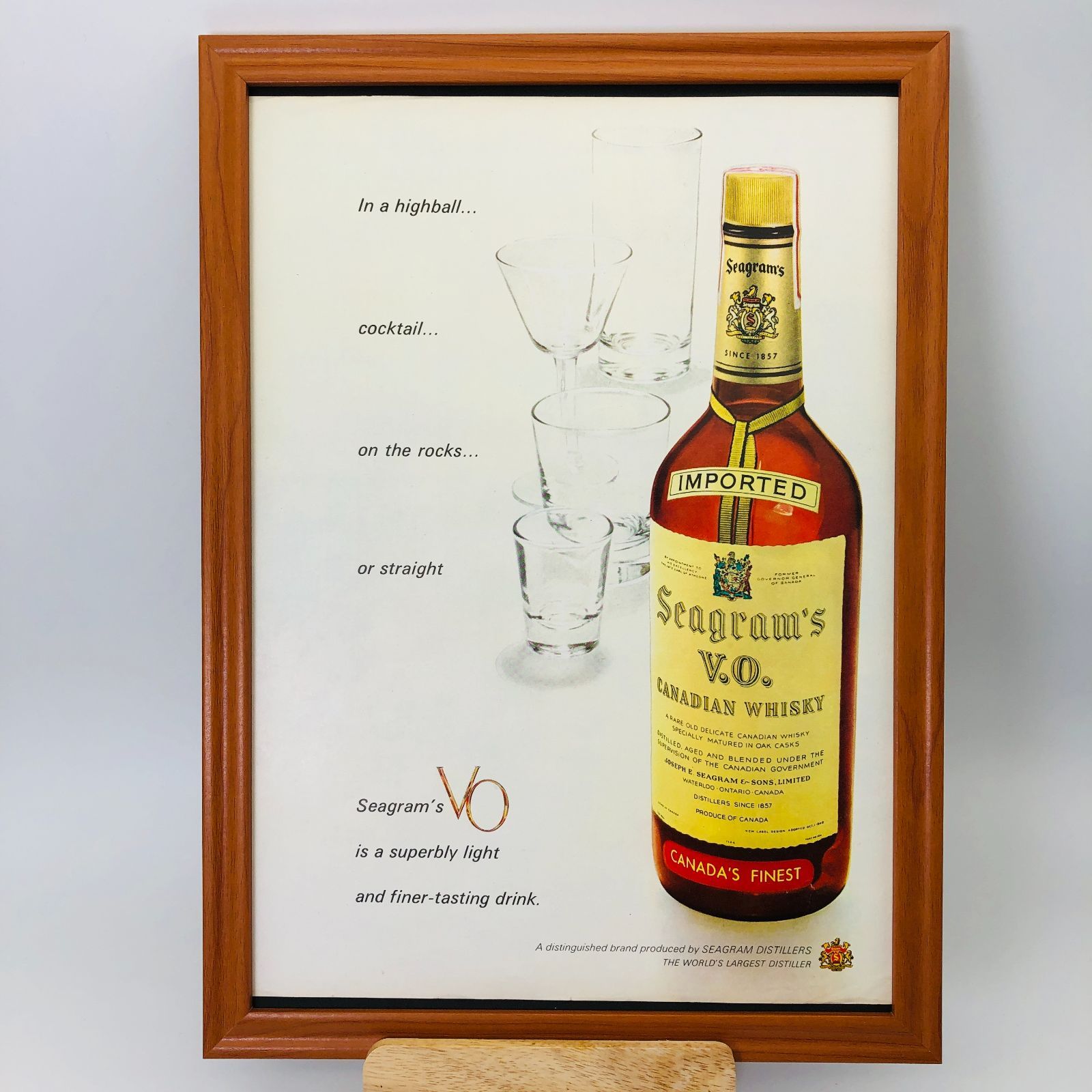 ビンテージ 広告 ポスター  『 シーグラムV.Oウイスキー 』 フレーム付 ※貴重な当時物 1960's オリジナル アメリカ ヴィンテージ 輸入雑貨 アドバタイジング レトロ( AZ1211 )