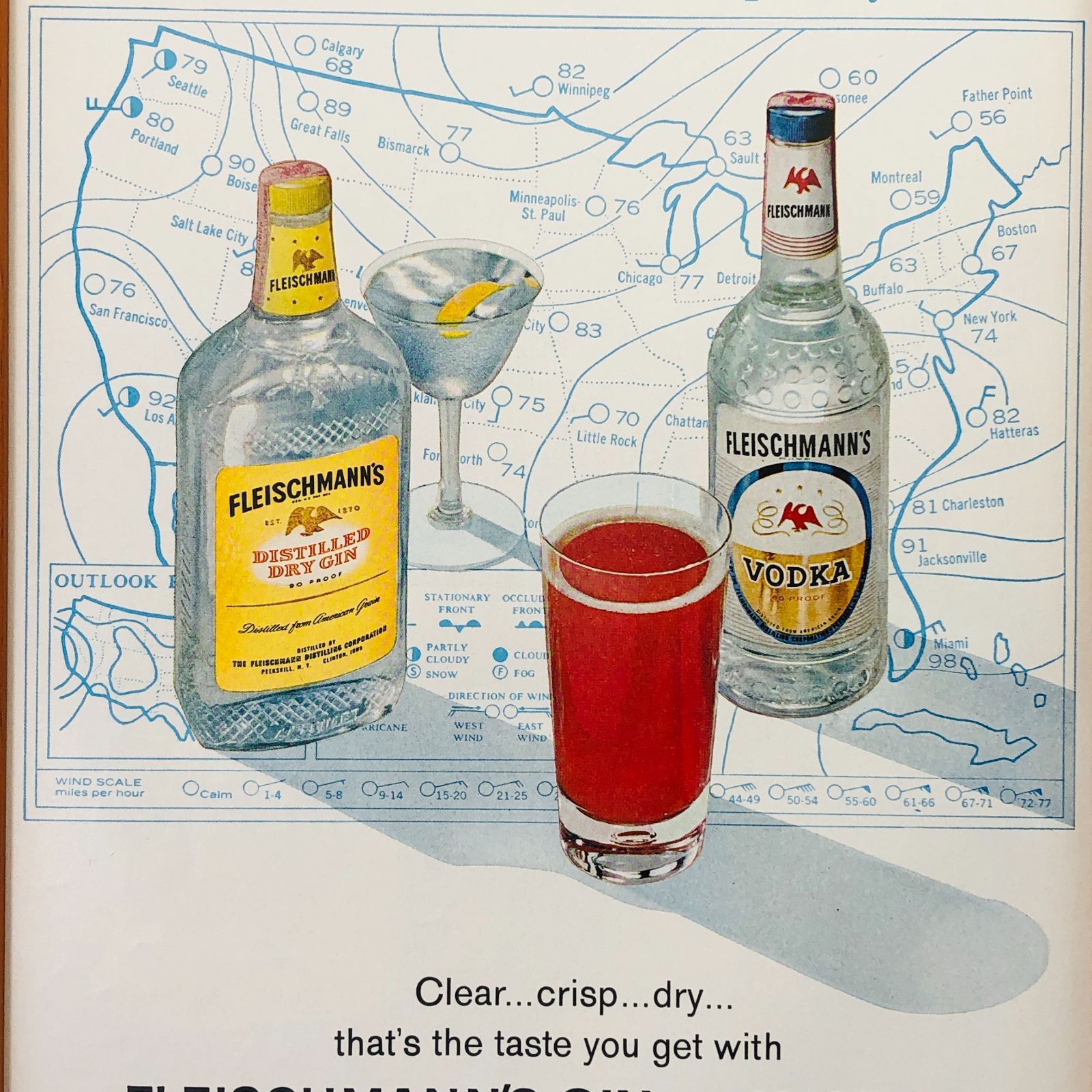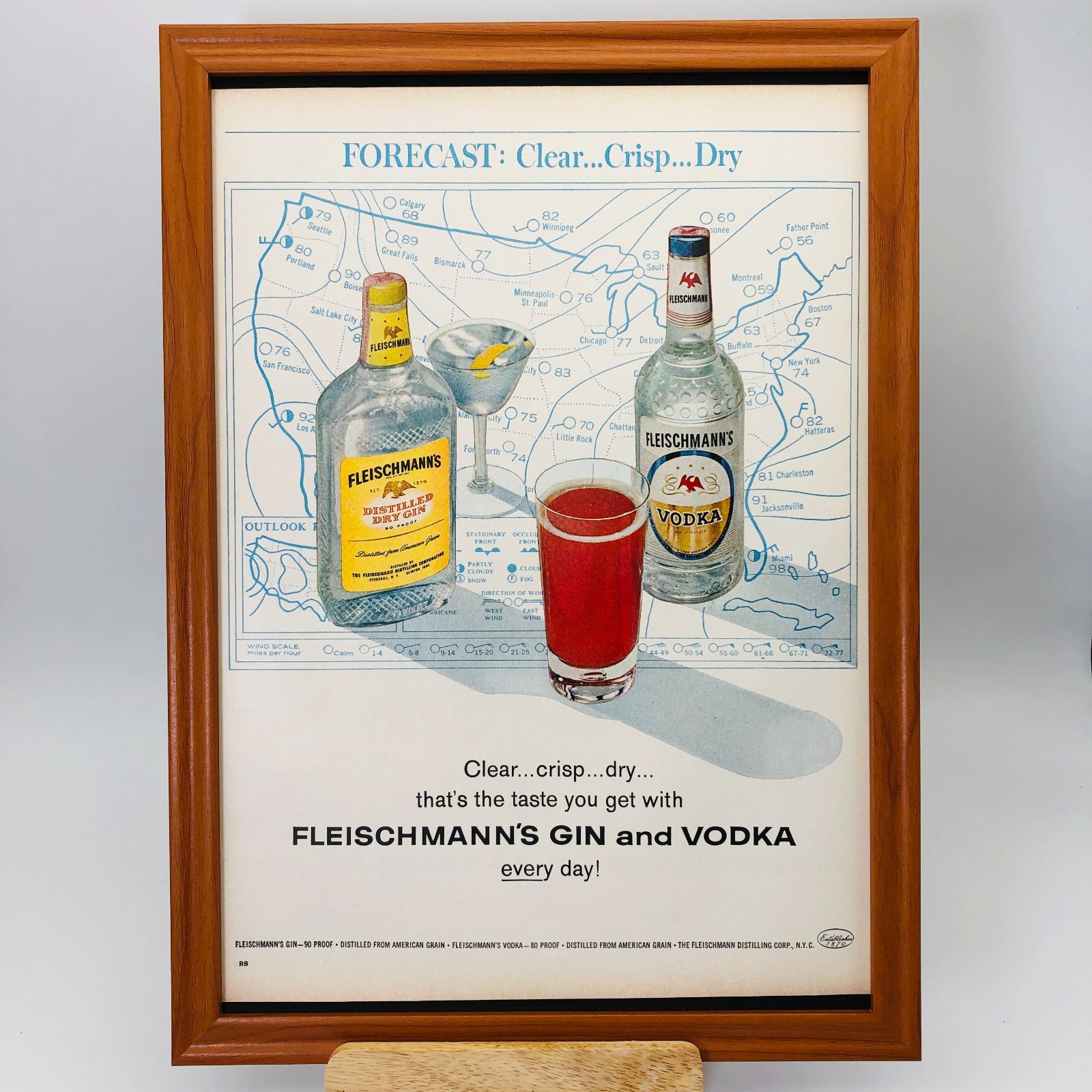 ビンテージ 広告 ポスター 『 フライシュマンズジンウォッカ 』 フレーム付 ※貴重な当時物 1960's オリジナル アメリカ ヴィンテージ 輸入雑貨 アドバタイジング レトロ( AZ1257 )