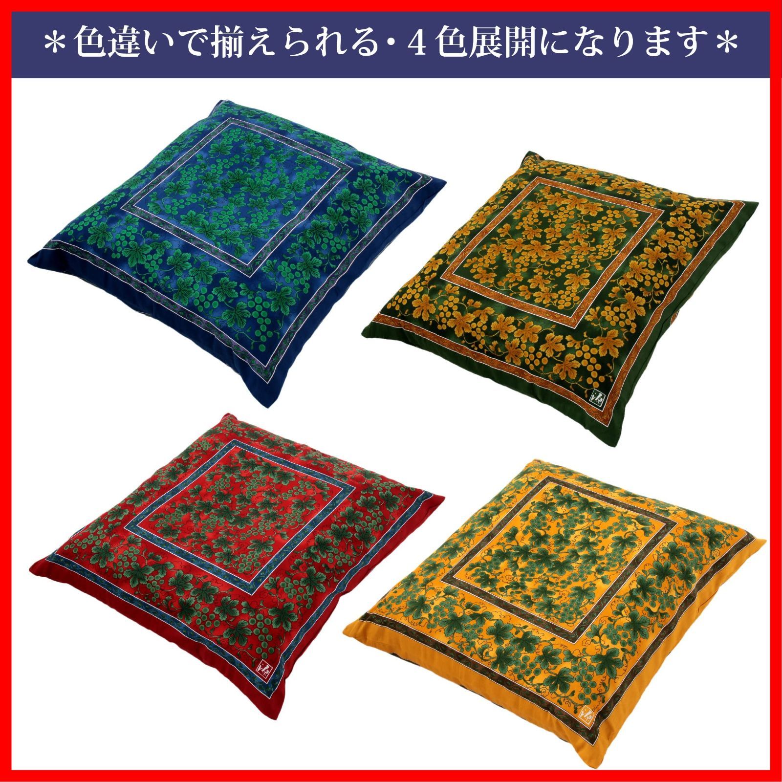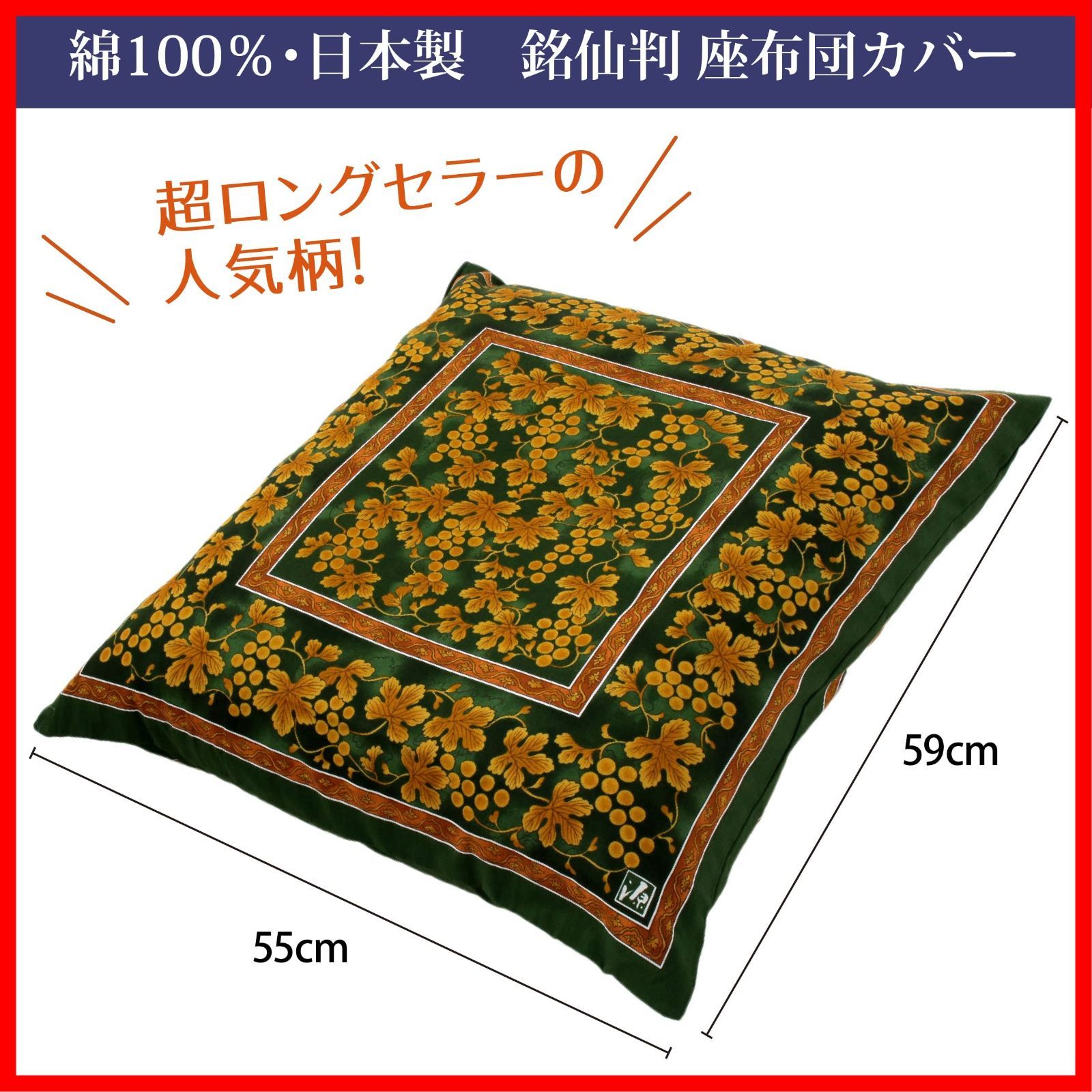【 西川 】座布団カバー nishikawa 銘仙判(55X59cm) 洗える 緑彩葡萄絵柄 日本製 グリーン PG02083096
