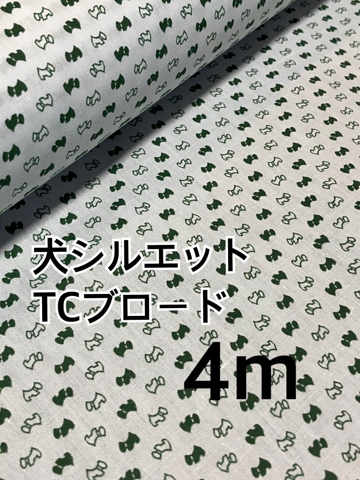 4m 犬柄 シルエット TCブロード モスグリーン ハギレ 生地
