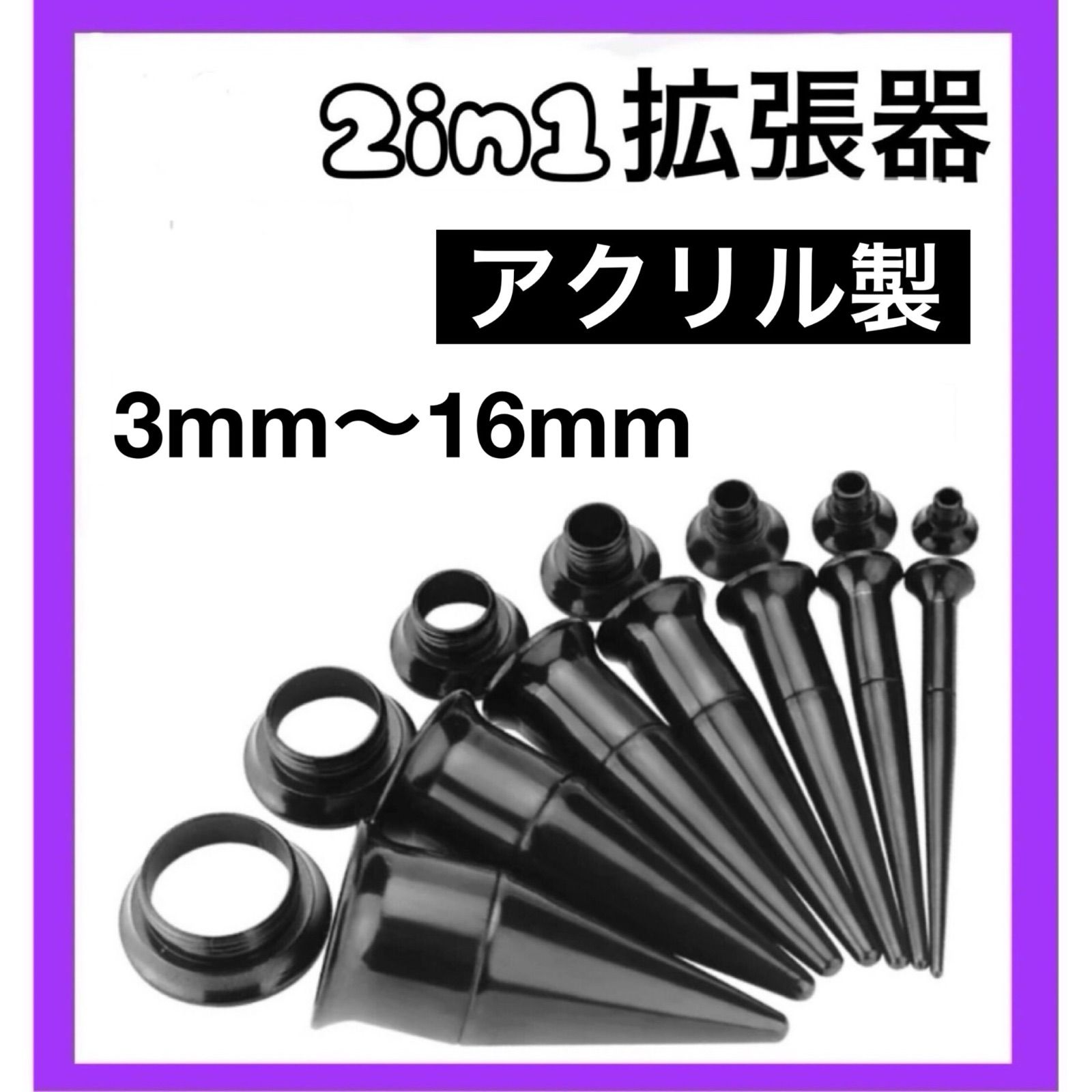 2in1 ボディピアス 拡張器 ダブルフレア ブラック アクリル製 3mm 4mm 5mm 6mm 8mm 10mm 12mm 14mm 16mm 8G 6G 4G 2G 0G 00G