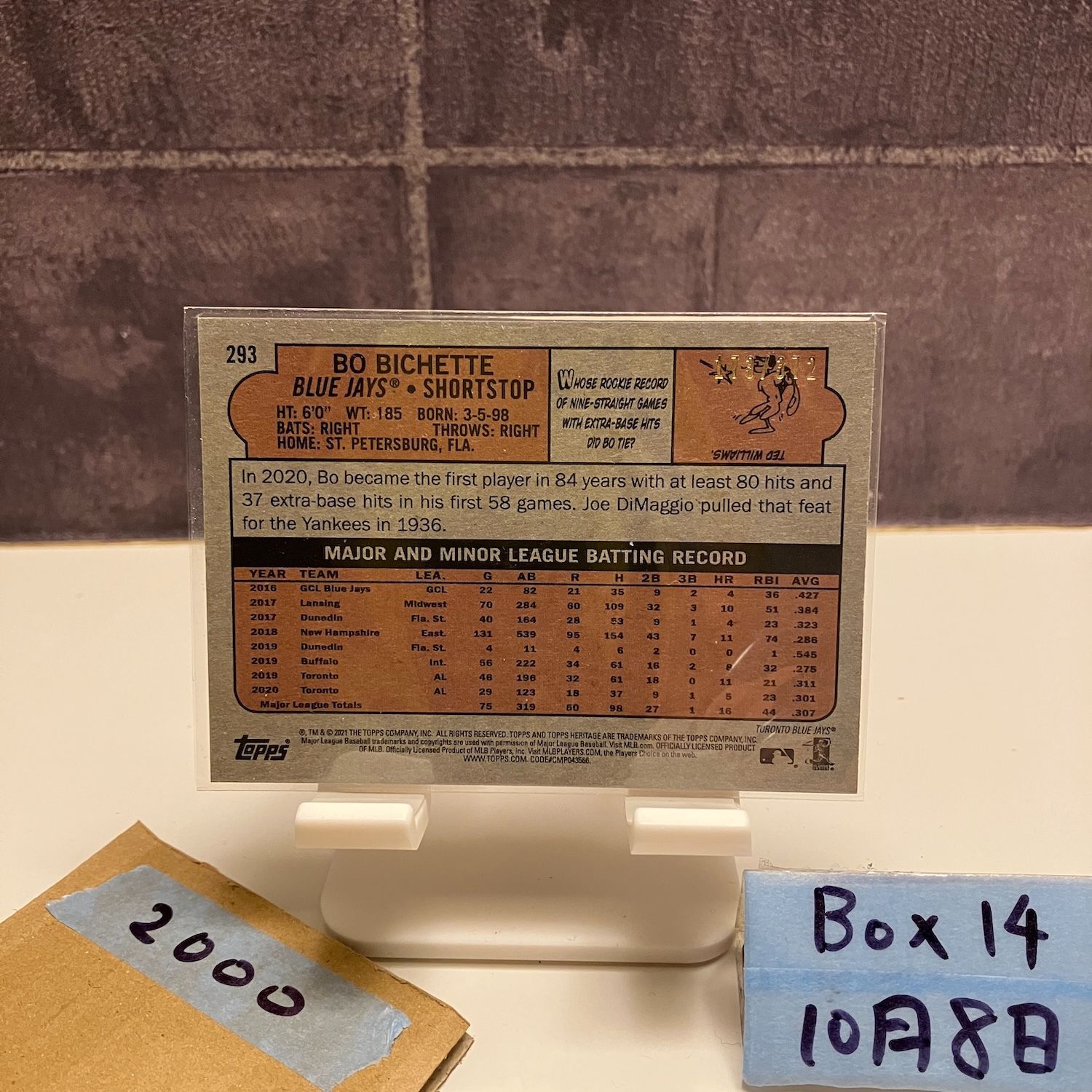 2021 Topps Bo Bichette Toronto Blue Jays Red Border Parallel カード