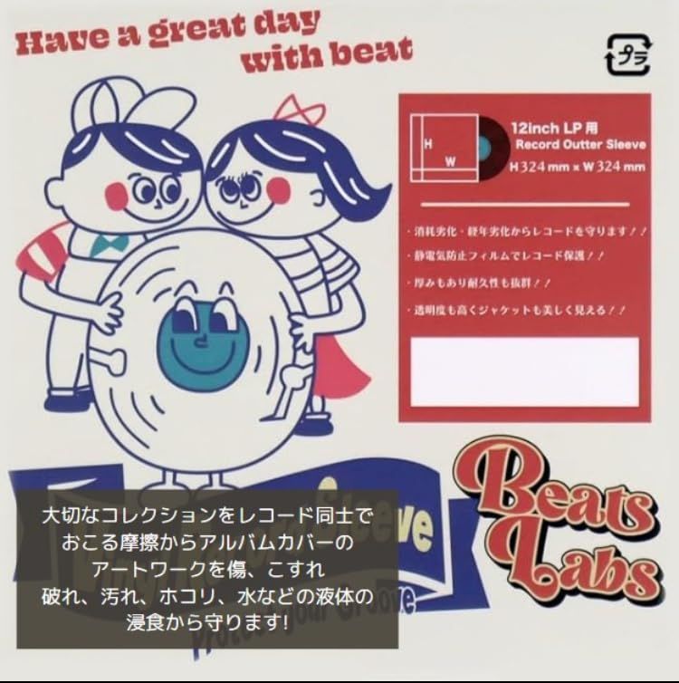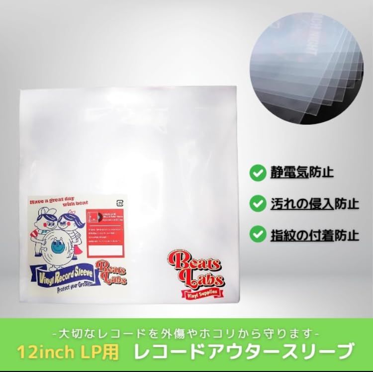 新品 アールアンドエス【Beats Labs】12inch LP用 レコードアウタースリーブ 高密度3ミル ポリプロピレン素材 クリスタルクリア 324mm x 324mm 保護 静電気防止 ホコリ防止(50枚入)