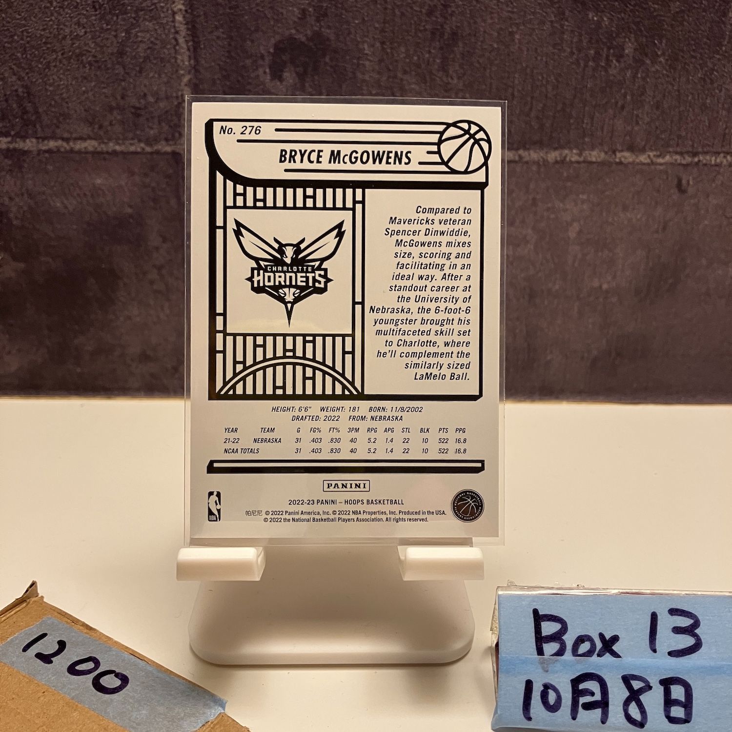 2022-23 Panini Hoops Bryce McGowens 10/75 Charlotte Hornets RC ルーキー Rookie カード