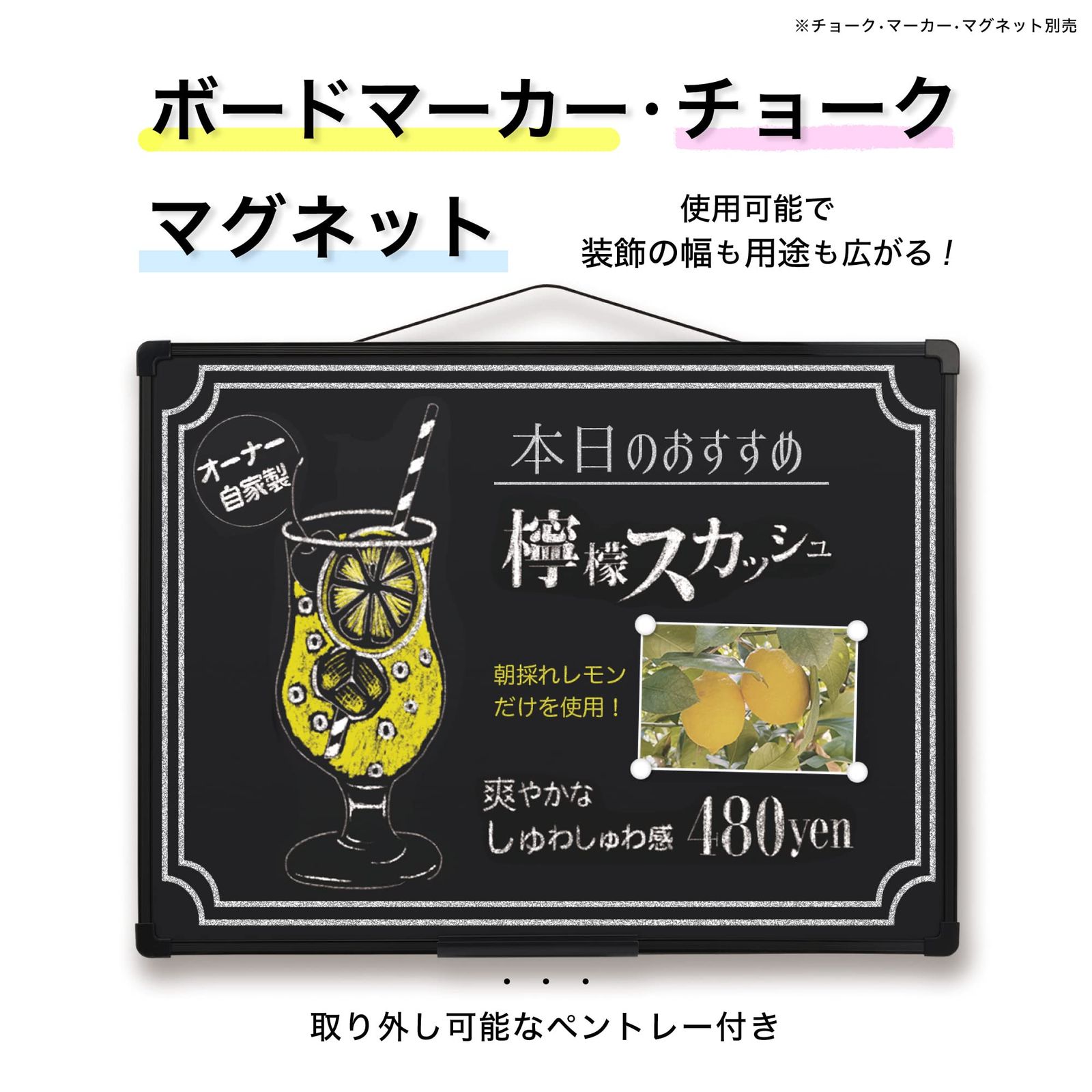 新品 アスミックス(Asmix) アスカ プラ枠ブラックボード L BB039 黒板 チョーク マーカー マグネット トレー付き