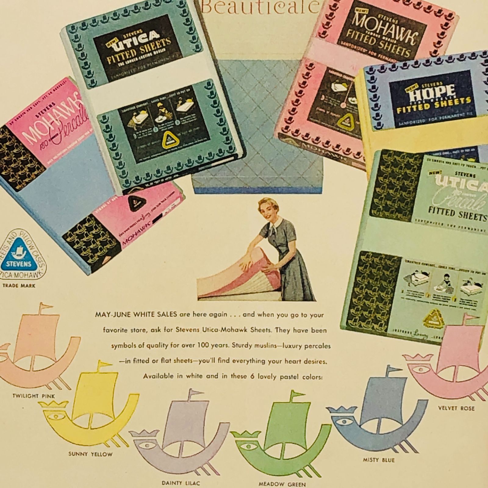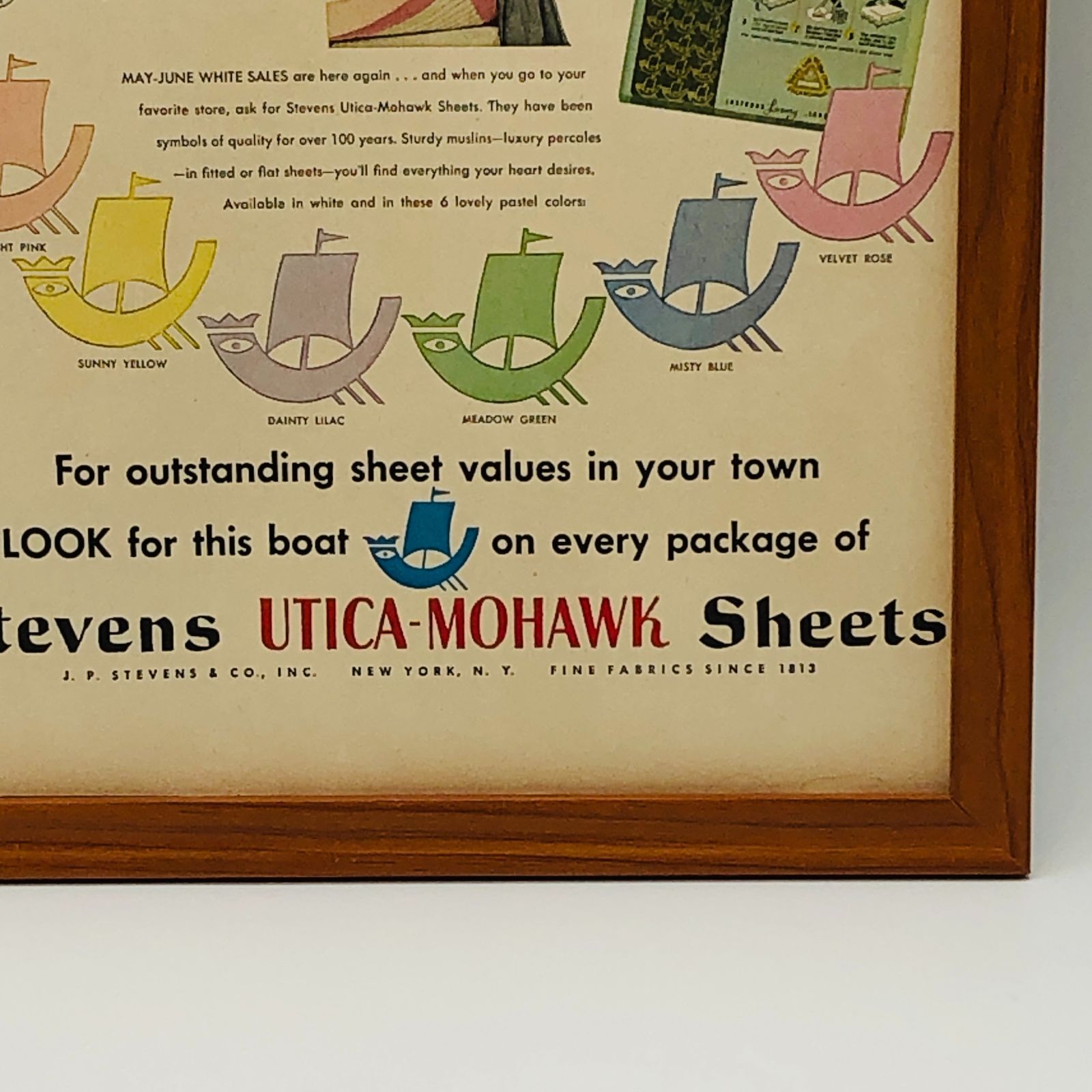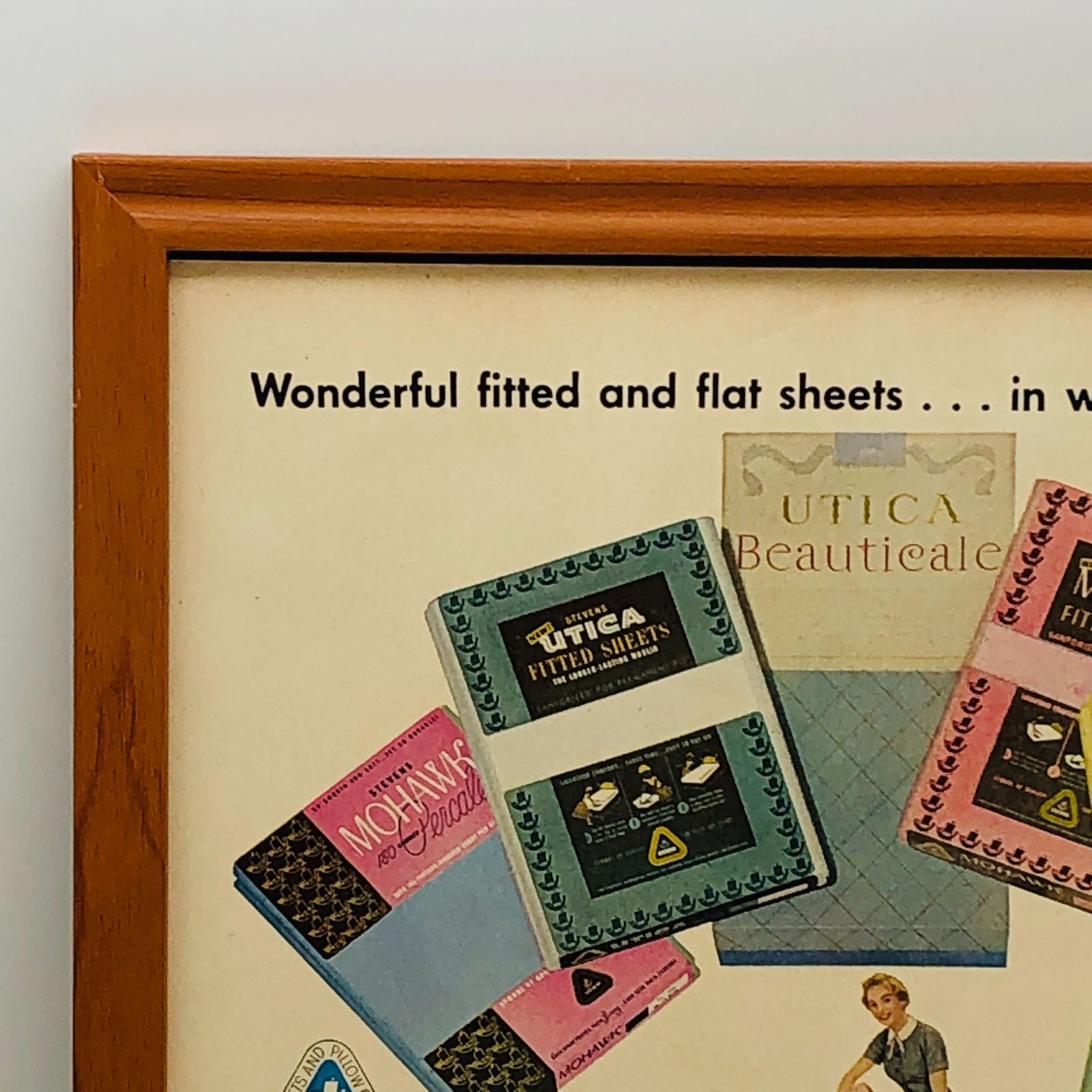 ビンテージ 広告 ポスター フレーム付 『 ユーティカモホークシーツ (Utica-Mohawk Sheets) 』 1950's ※当時物 オリジナル アメリカ 輸入雑貨 ヴィンテージ アドバタイジング ( AZ1714 )