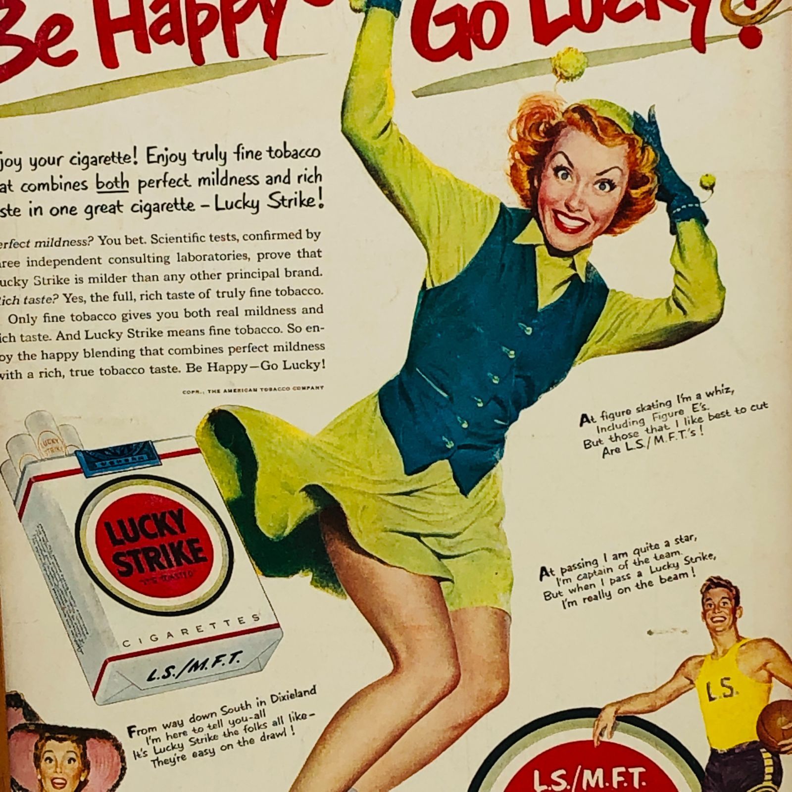 ビンテージ 広告 ポスター フレーム付 『 ラッキーストライク 煙草 (Lucky Strike) 』 1950's ※当時物 オリジナル アメリカ 輸入雑貨 ヴィンテージ アドバタイジング ( AZ1725 )