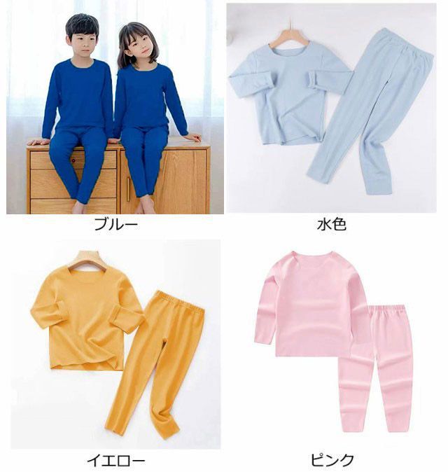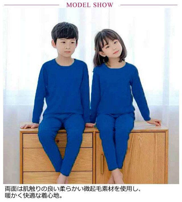 ヒートテック キッズ 子供服 肌着 インナーウェア 上下セット 裏起毛 微起毛 あったかインナー 女の子 男の子 長袖 インナー tシャツ ロンt Uネック 丸首 長ズボン 発熱 保温 防寒 シムレー#erika7809