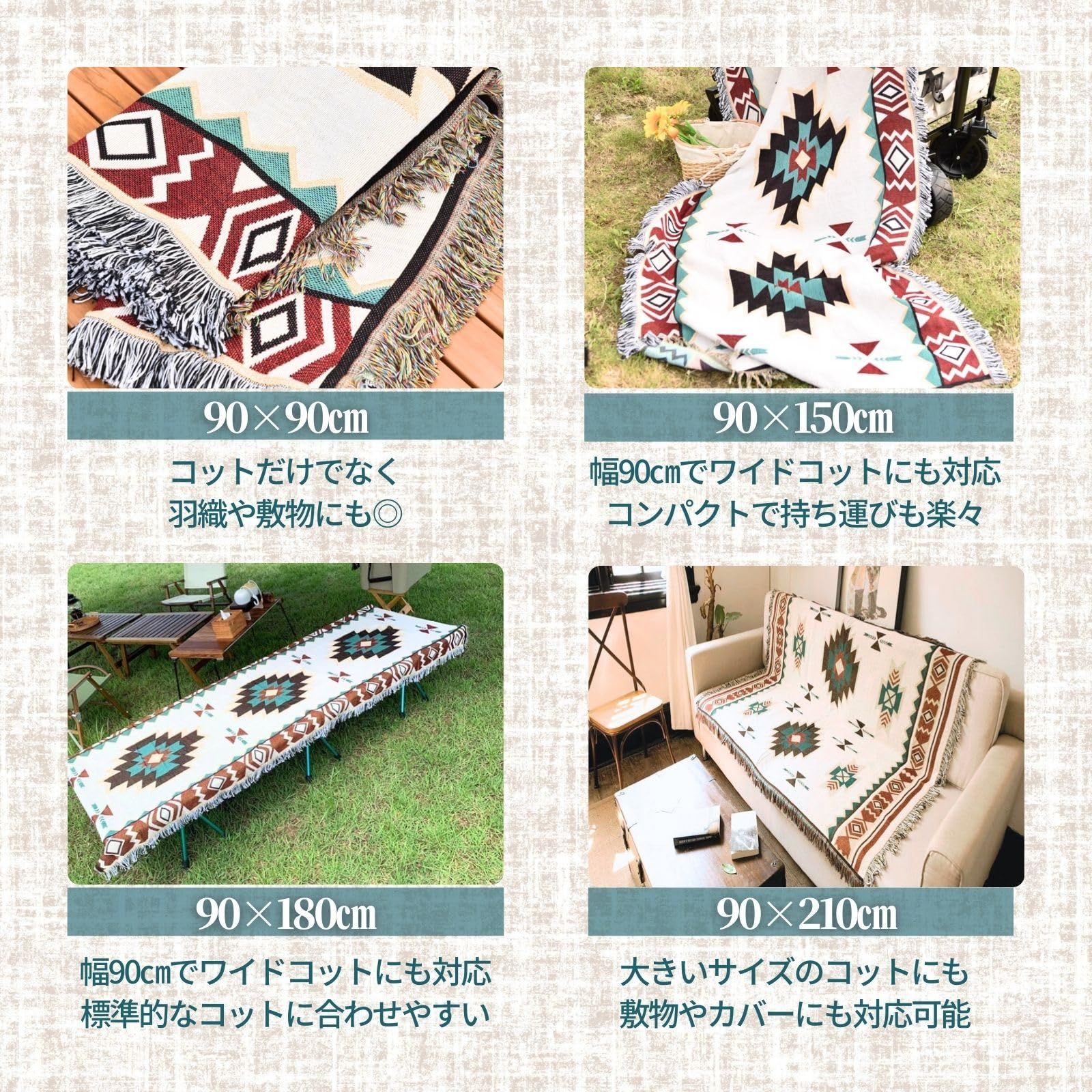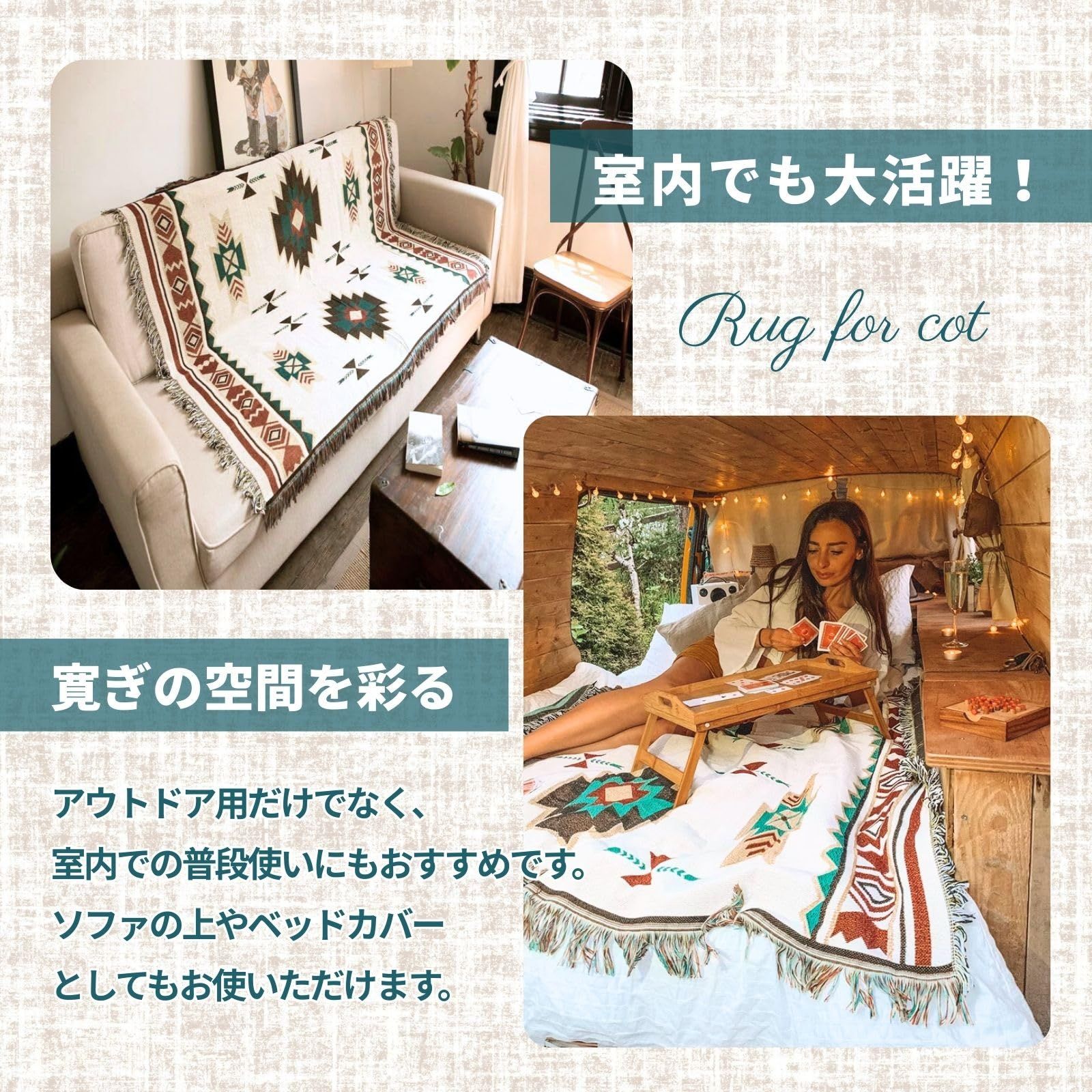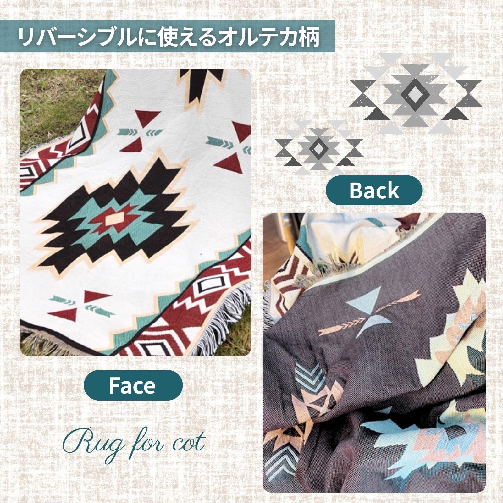 コット用ラグ キャンプ ラグマット オルテカ柄 キリム アウトドア 民族柄 マルチカバー リバーシブル ブランケット (グリーンオルテガ柄 90cm×150cm)