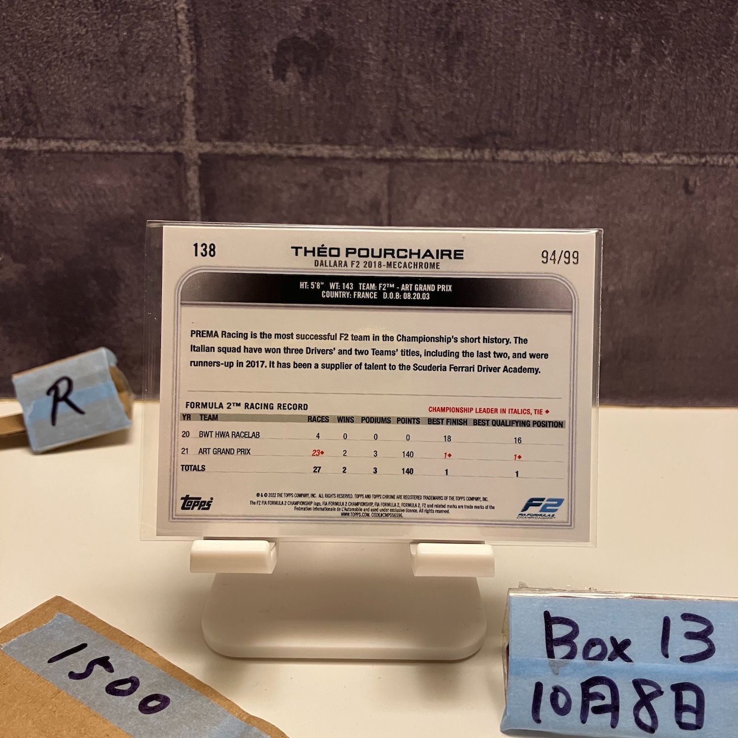 2022 Topps Chrome Theo Pourchaire 94/99 ART Grand Prix Green Refractor Parallel カード