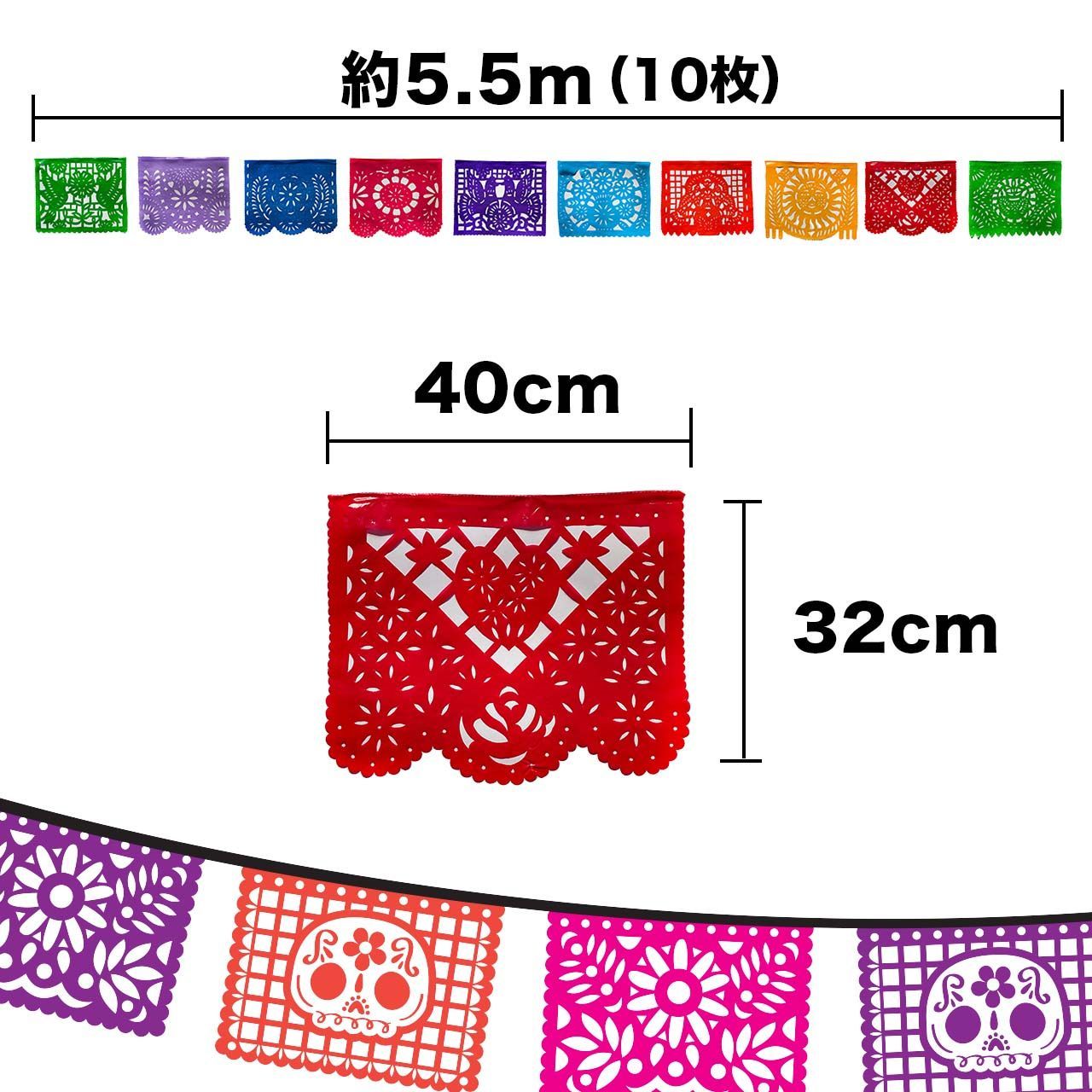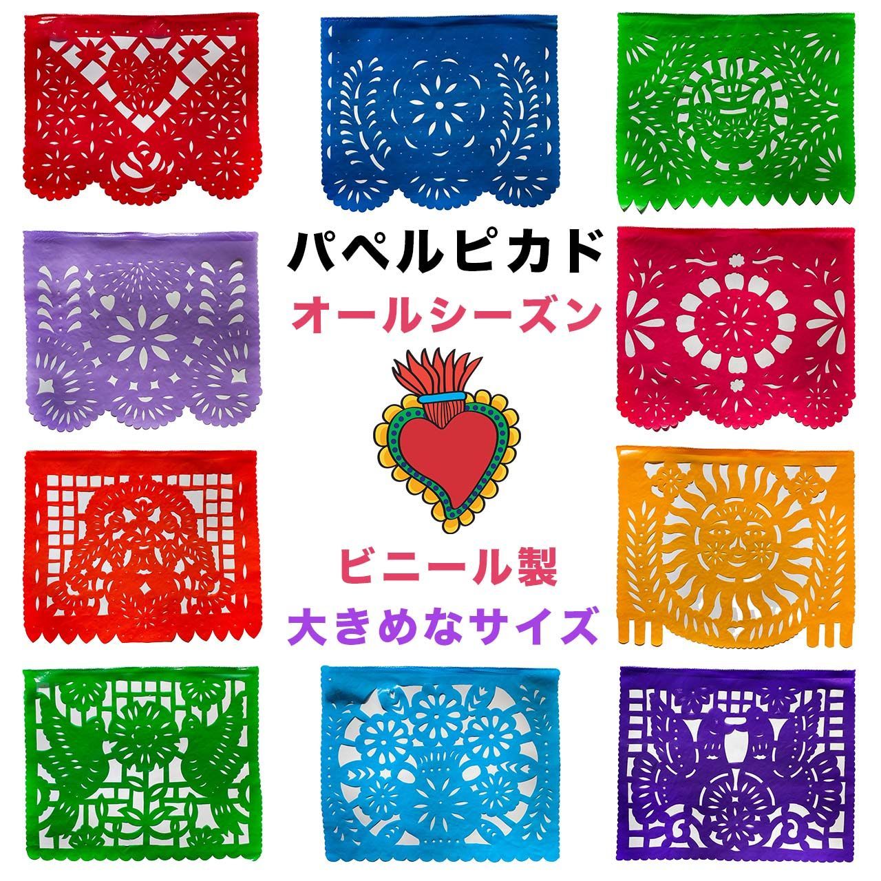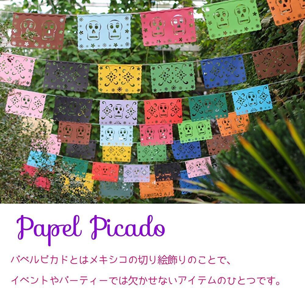 パペルピカド 2セット 20枚 大きめなサイズ 40cm x 32cm ビニール製《自然と植物・オールシーズン》メキシコ雑貨 ガーランド ウォールデコレーション