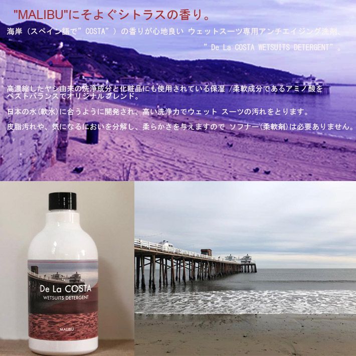 ウエットスーツ洗剤 De La COSTA WETSUITS DETERGENT MALIBU ウェットシャンプー ウエットコンディショナー 柔軟剤 サーフィン マリンスポーツ