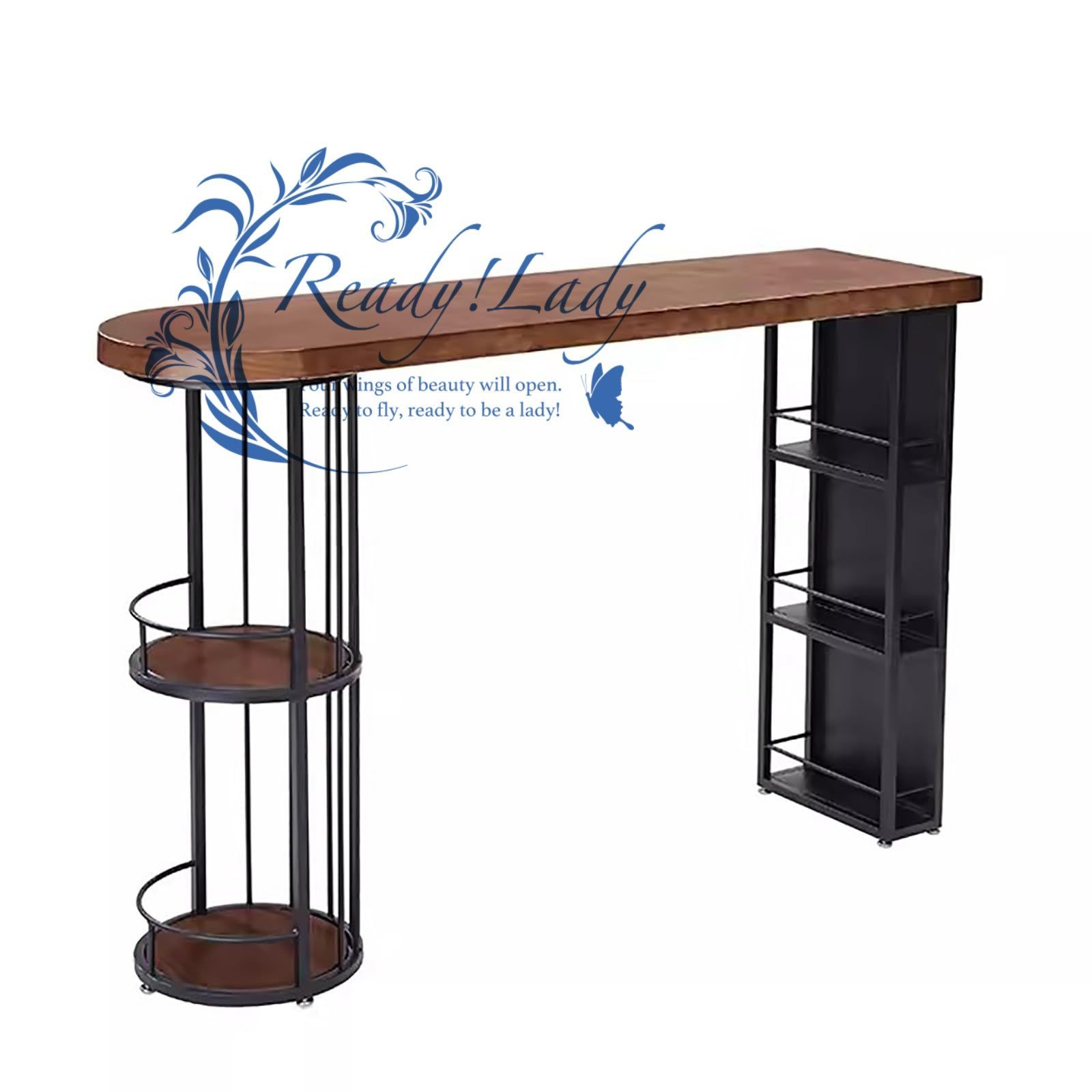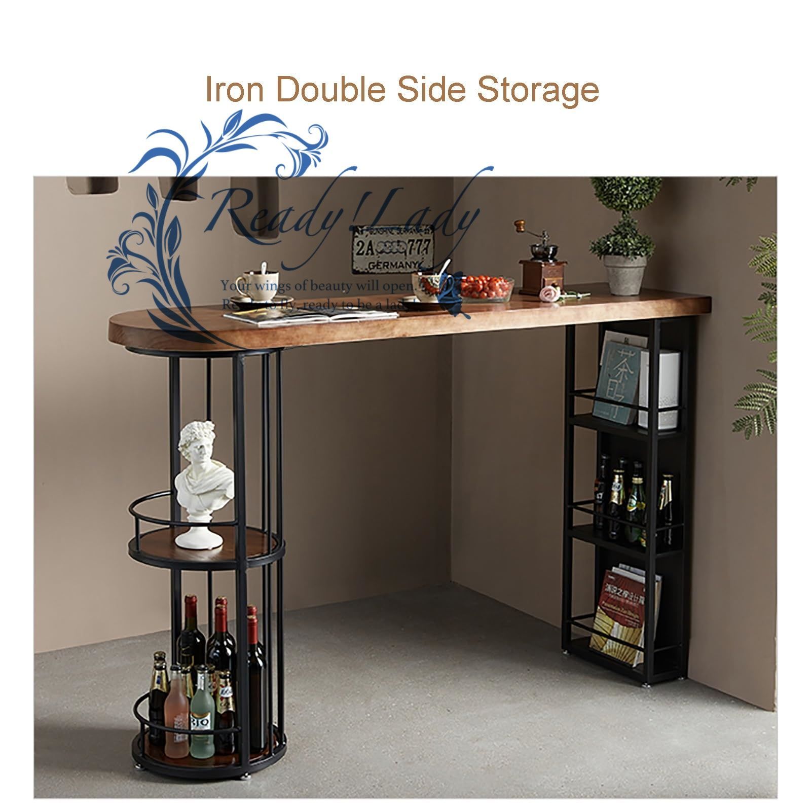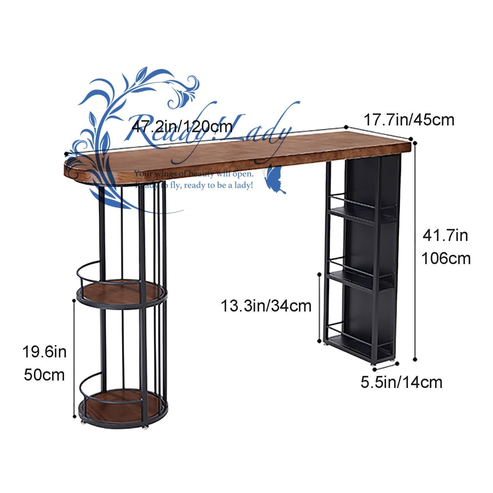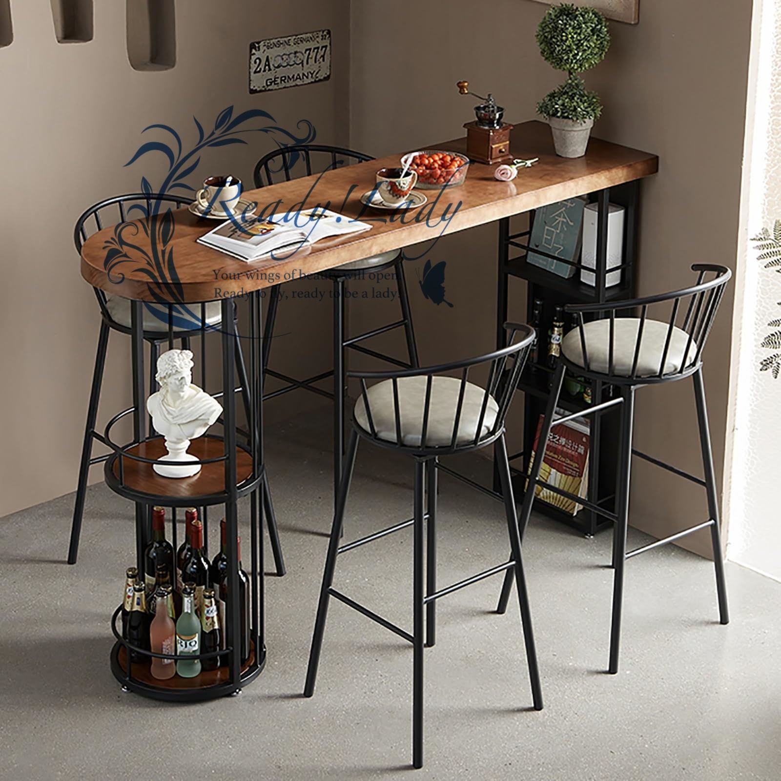 バーテーブル - カウンター高さのダイニングテーブル、カウンターテーブル 収納, カウンターテーブル, カウンターテーブル キッチン, 収納棚付き、朝食用ハイトップテーブル、キッチンバー用の省スペースの狭いバーテーブル(120cm/47.2in)