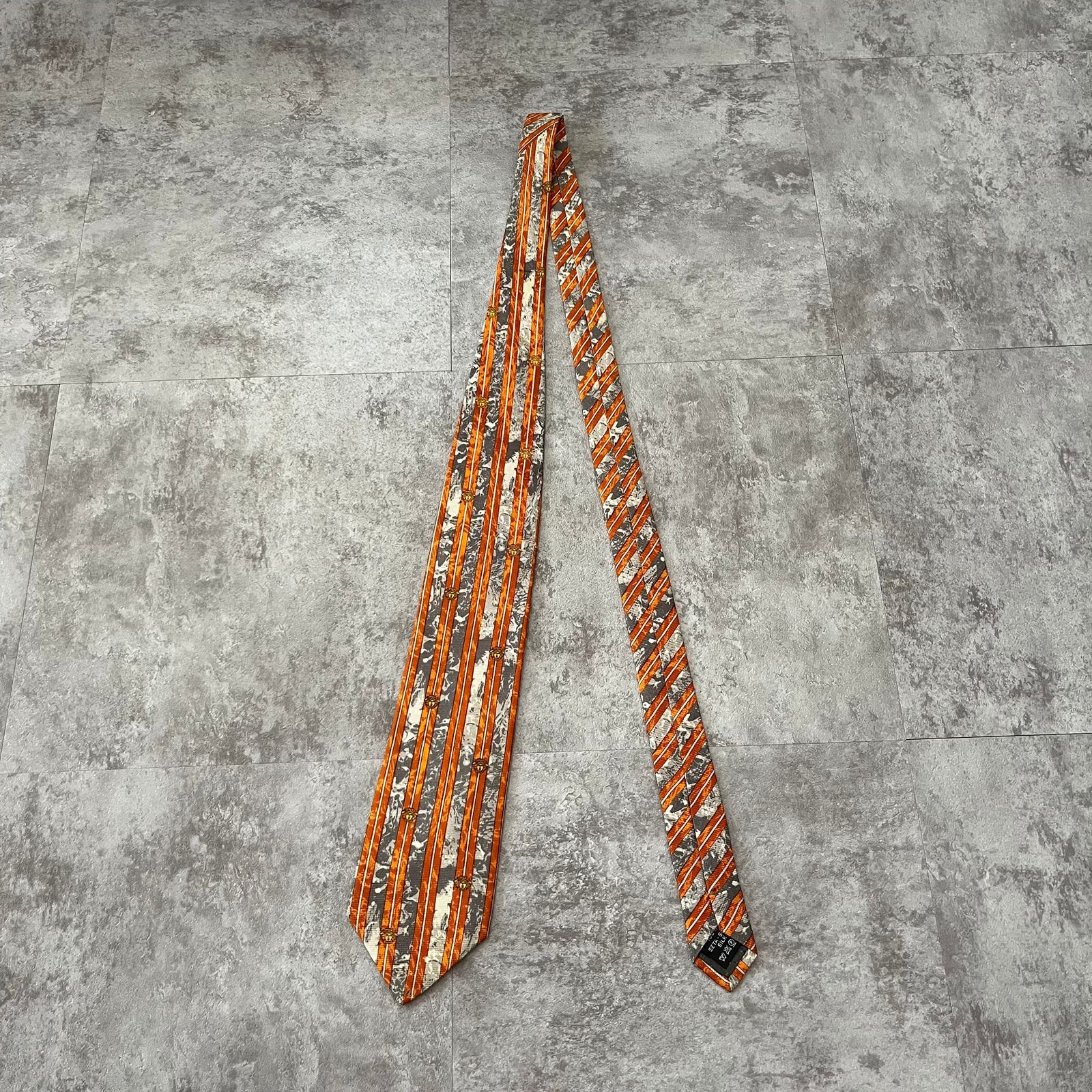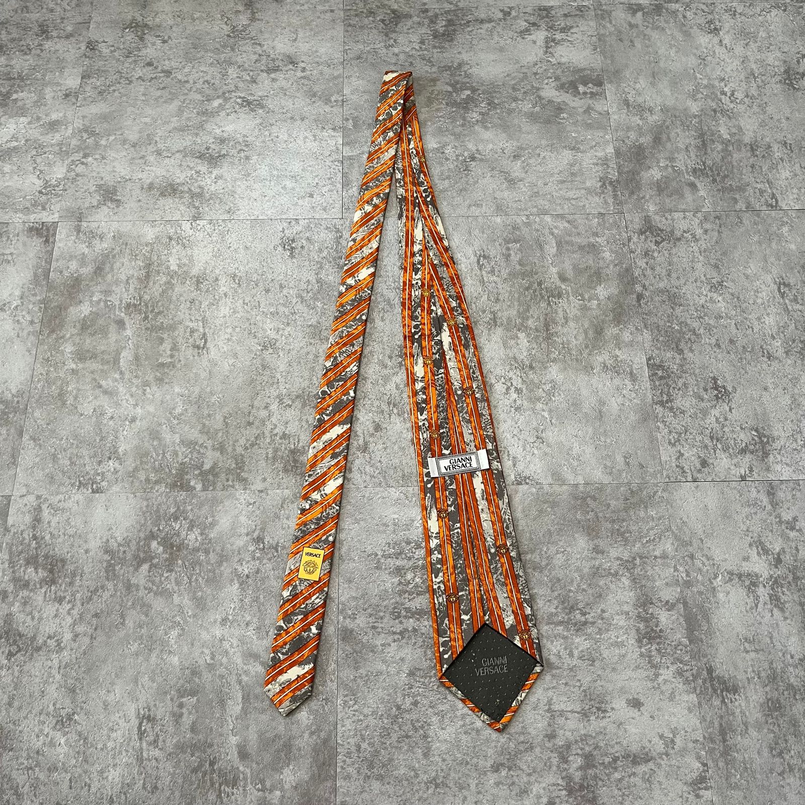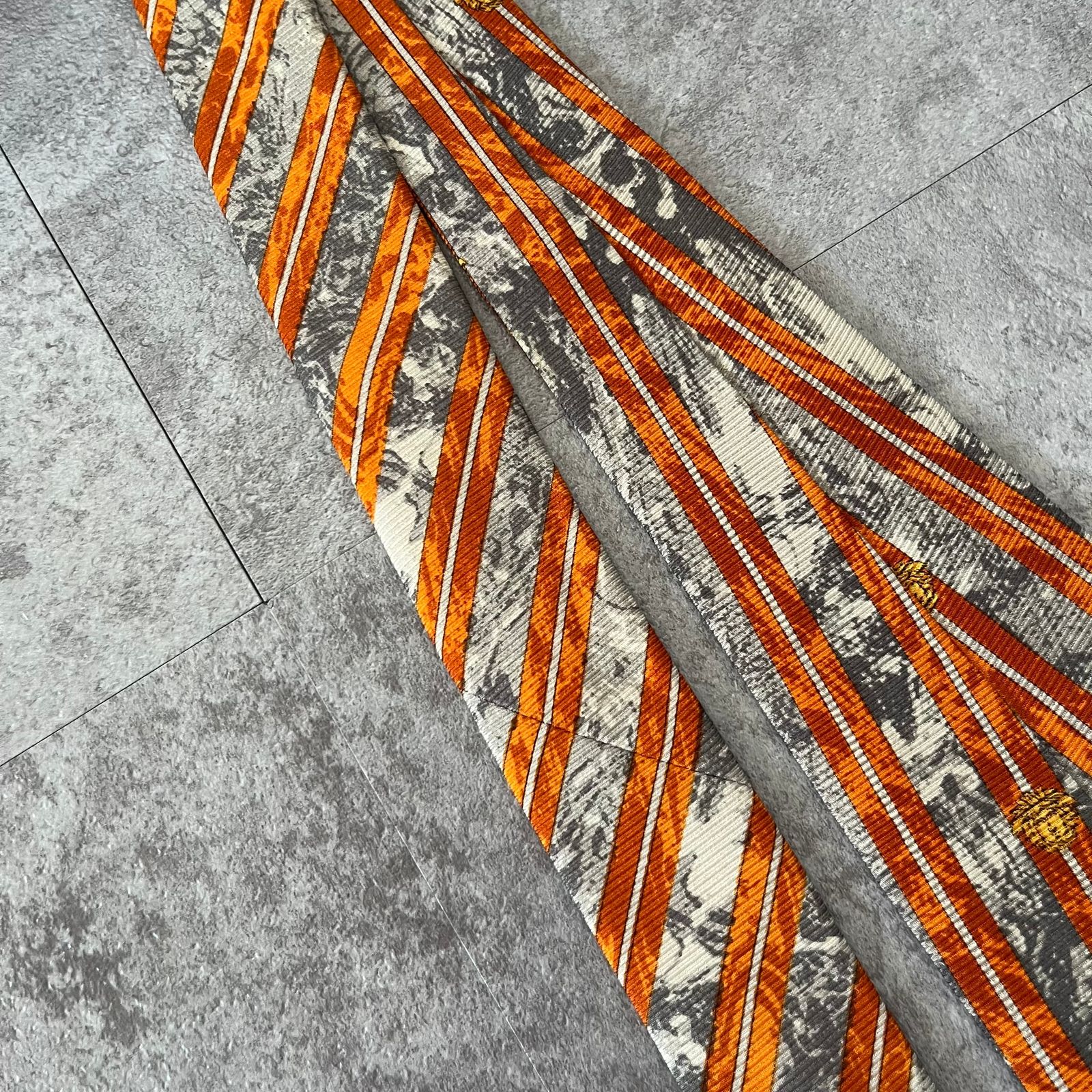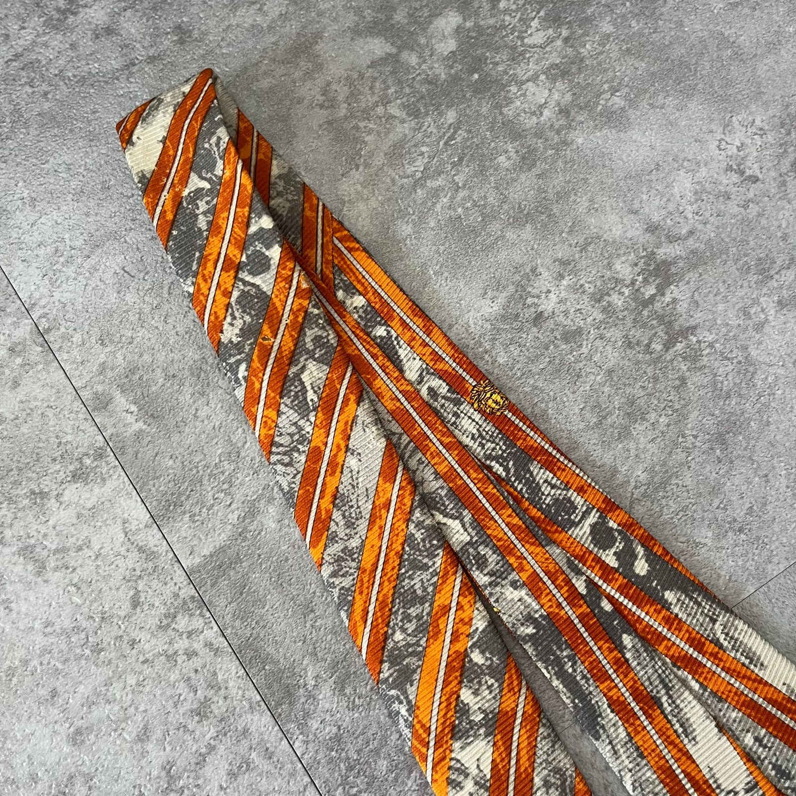 【Versace】バイカラーストライプネクタイ グレー×オレンジ ロゴ入り メデューサロゴ