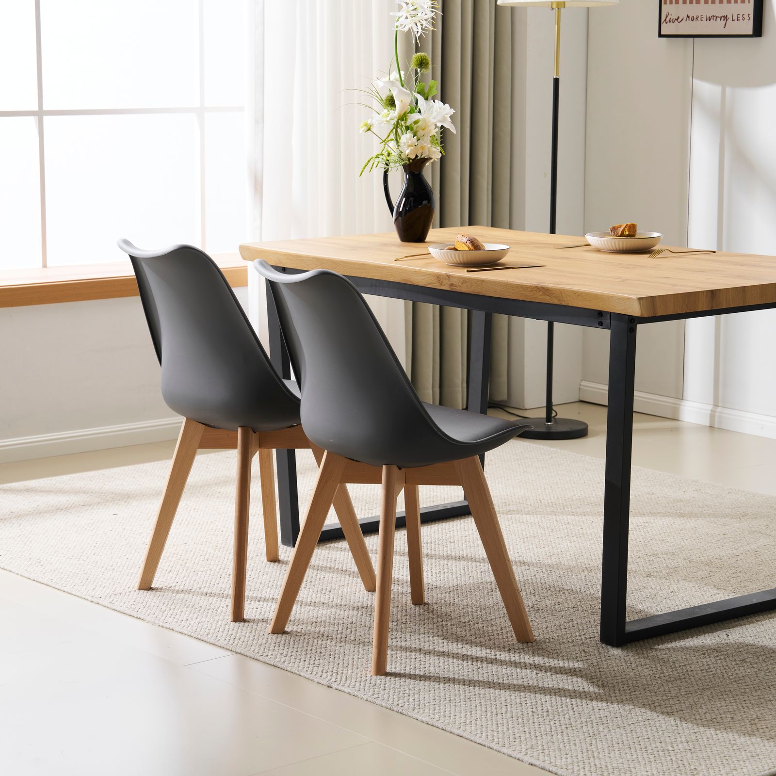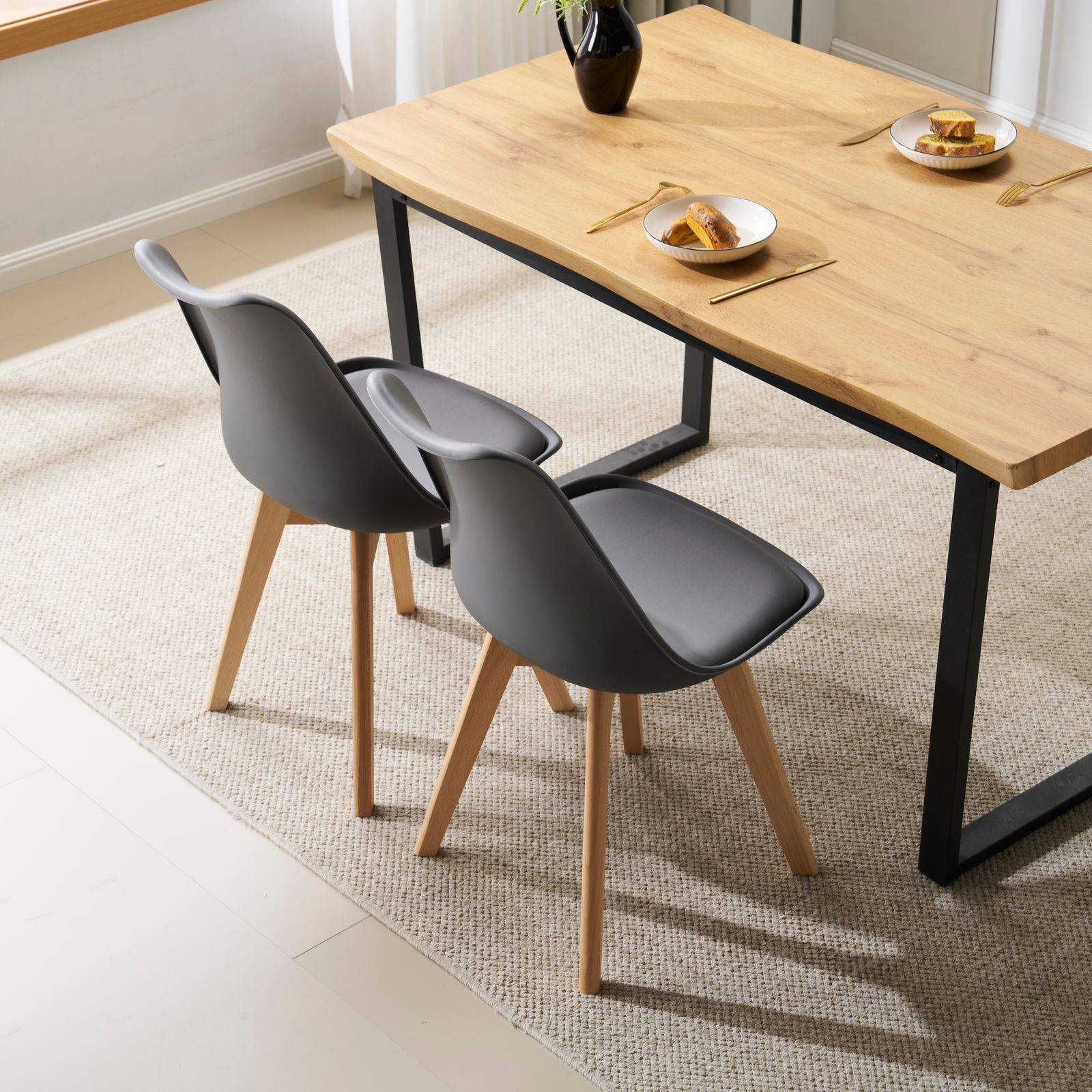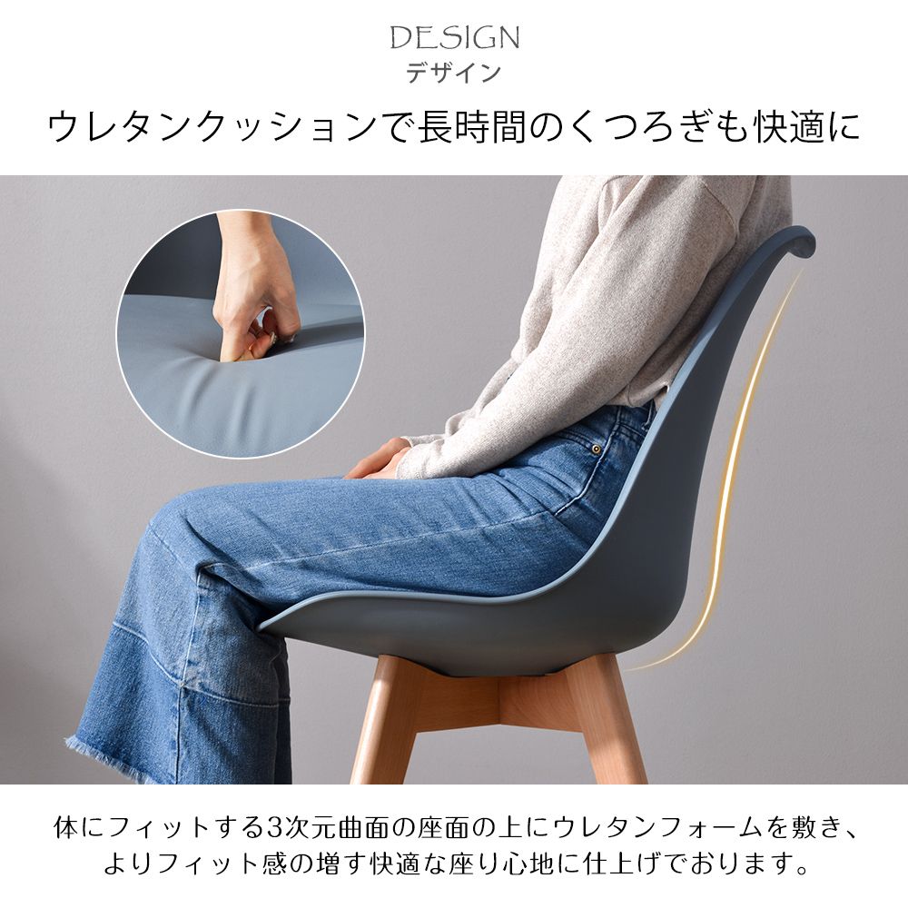 【2脚セット販売 】ダイニングチェア イームズチェア クッション付き 天然木脚 北欧 可愛い外観 おしゃれ スタッキング シェルチェア リビングチェア 組立て簡単