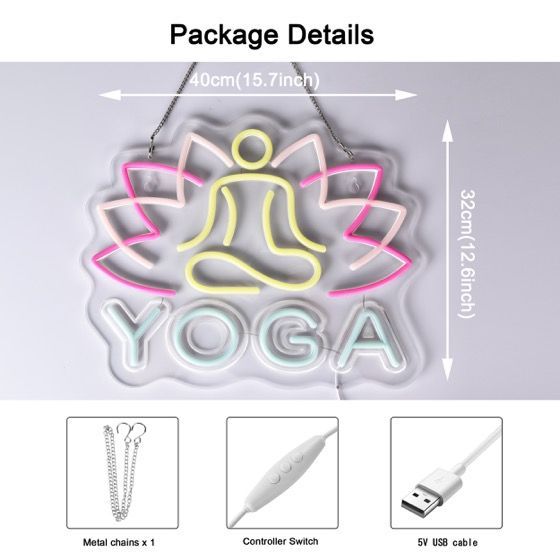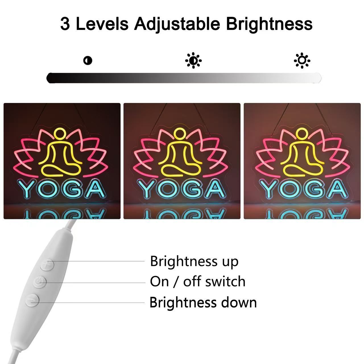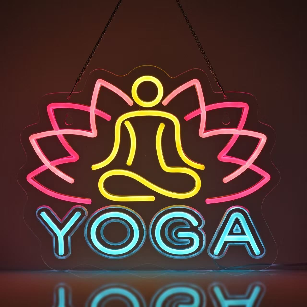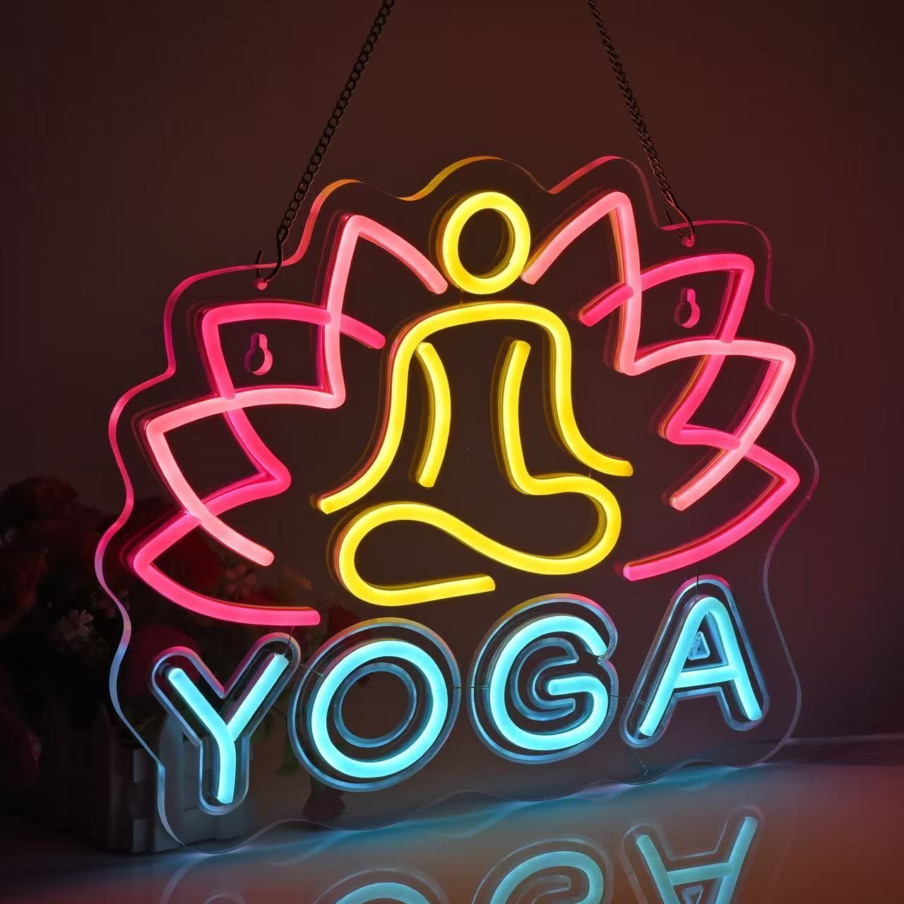 LEDネオンサイン 「ヨガ」ロゴ、柔らかな光で空間を彩る、調光機能付きネオンライト