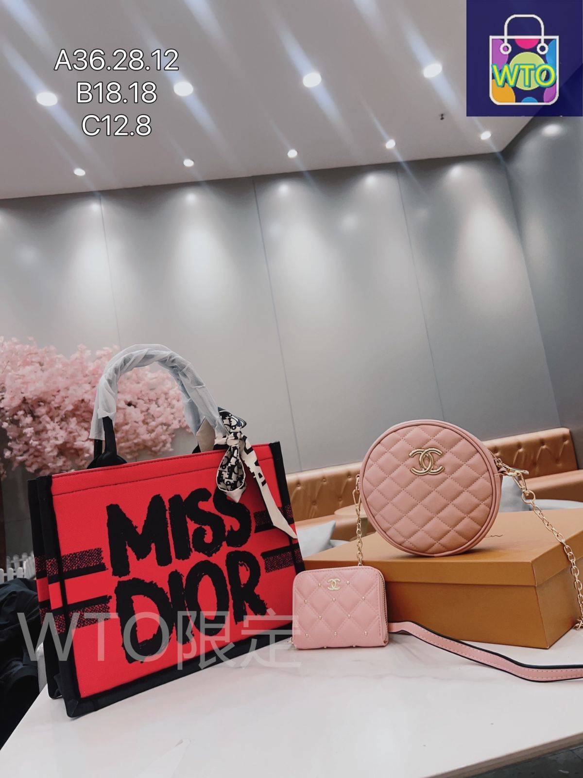 [本日特価] TOP New 2025 高品質3点セット - Dior トートバッグ + Chanel ラウンドバッグ + 財布 本日限定特別割引![本日特価|新品未使用品]