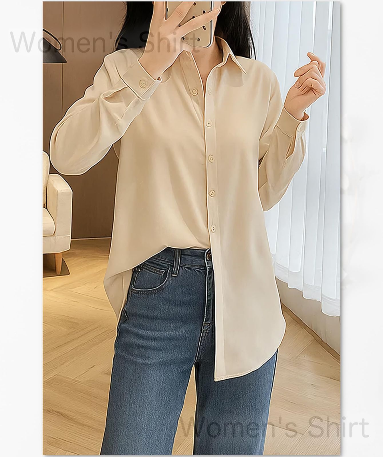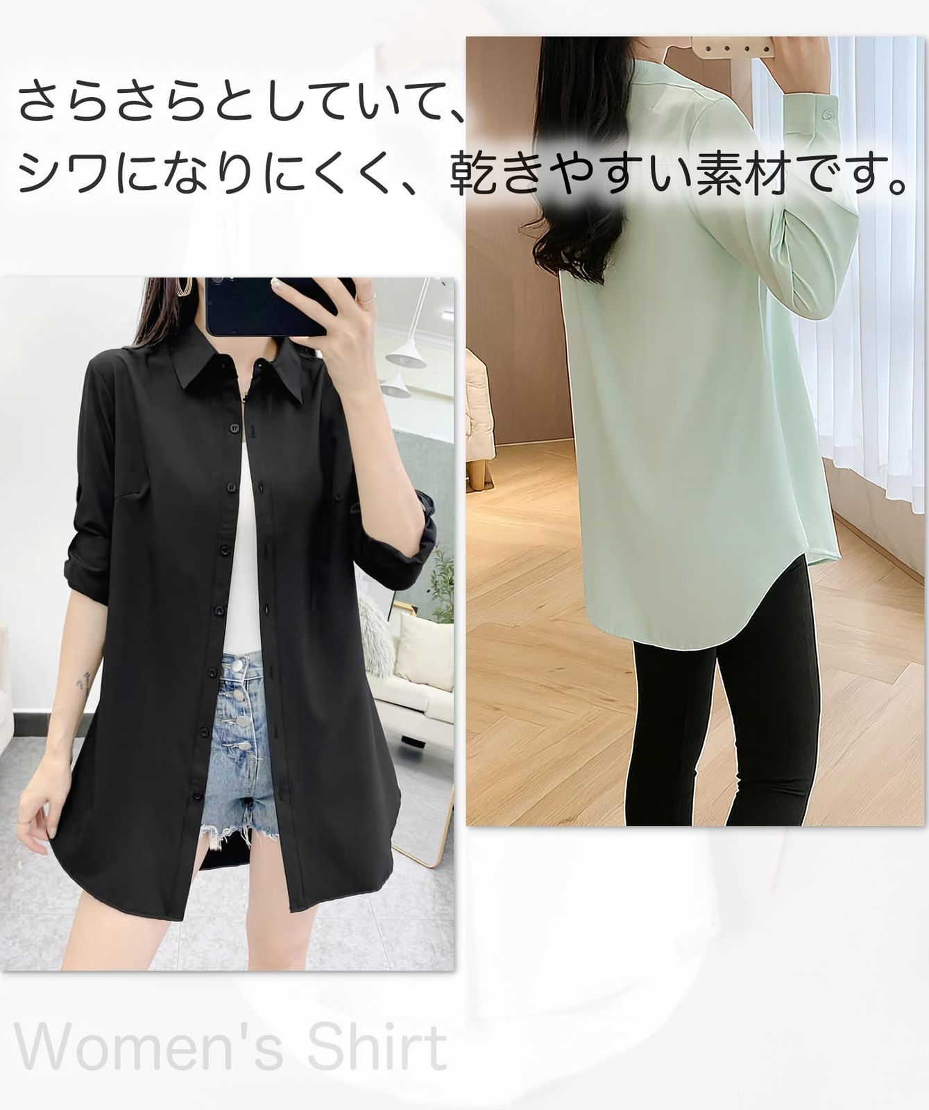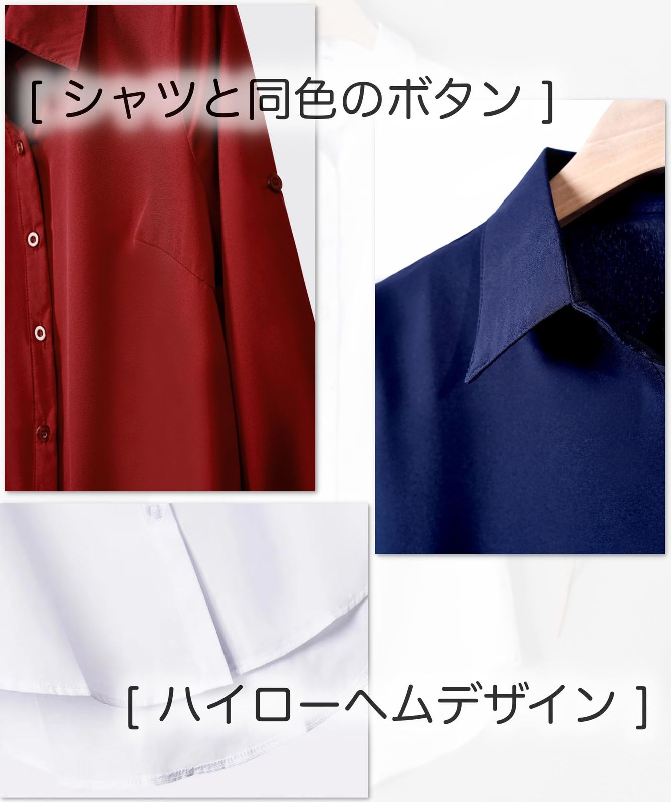 【 [ブブ オーハナ] シャツ ブラウス 長袖 無地 ロールアップ スリーブ ワイシャツ 長め ポケットレス レディース 】