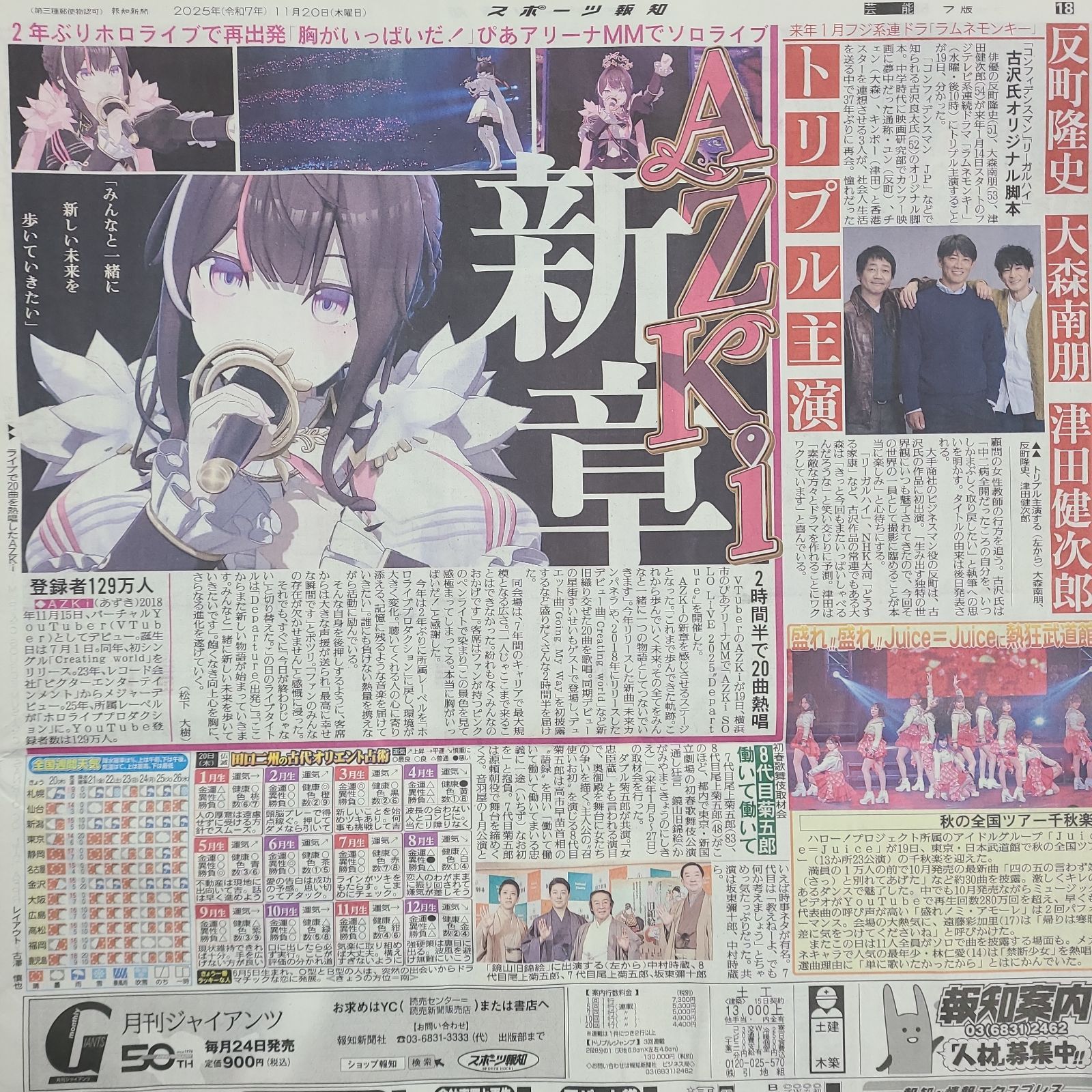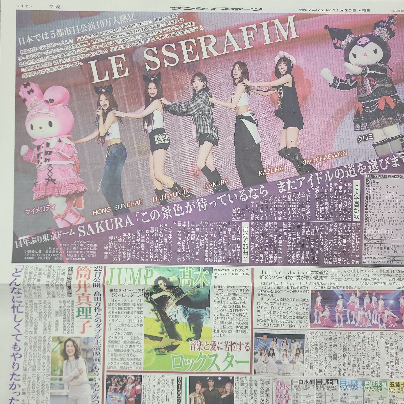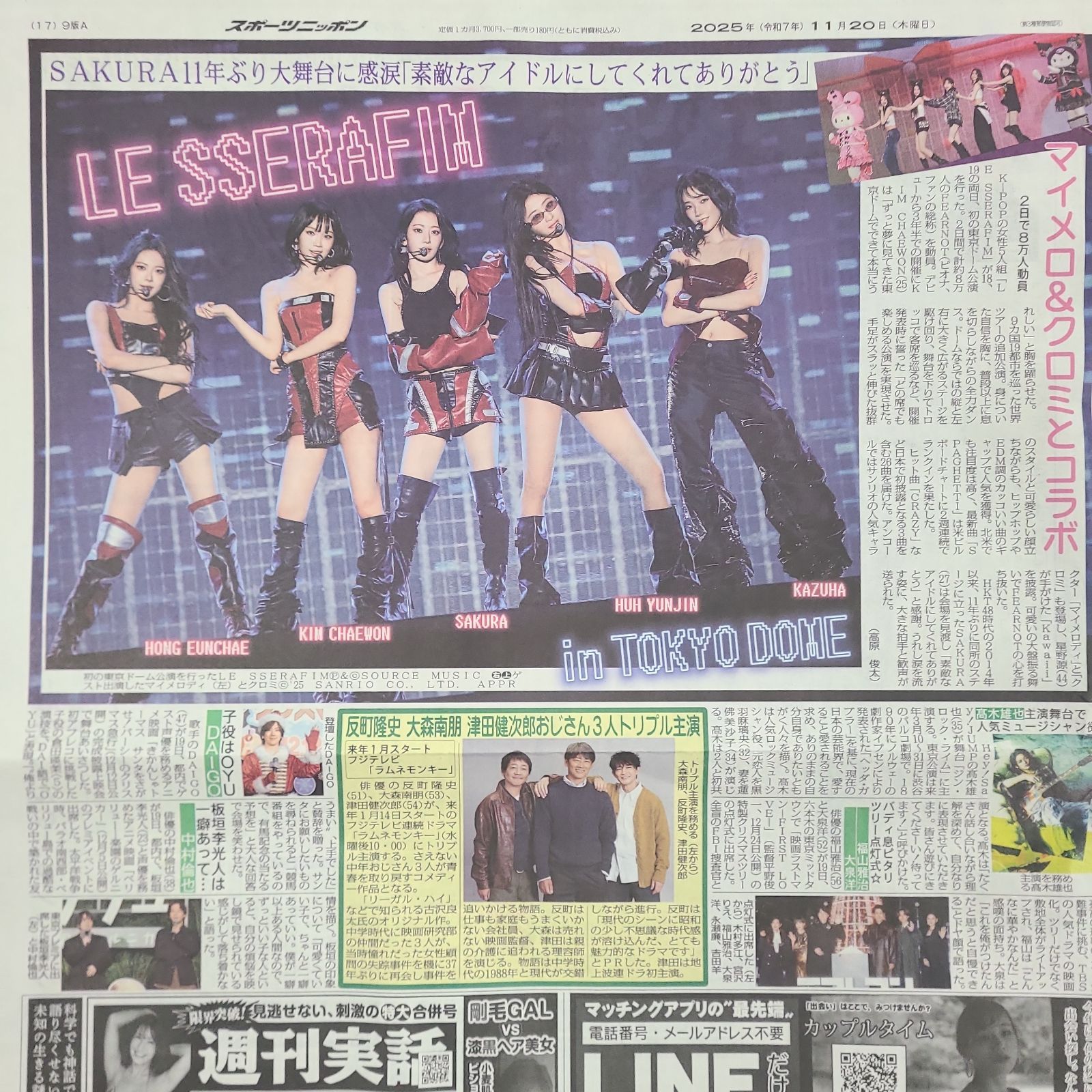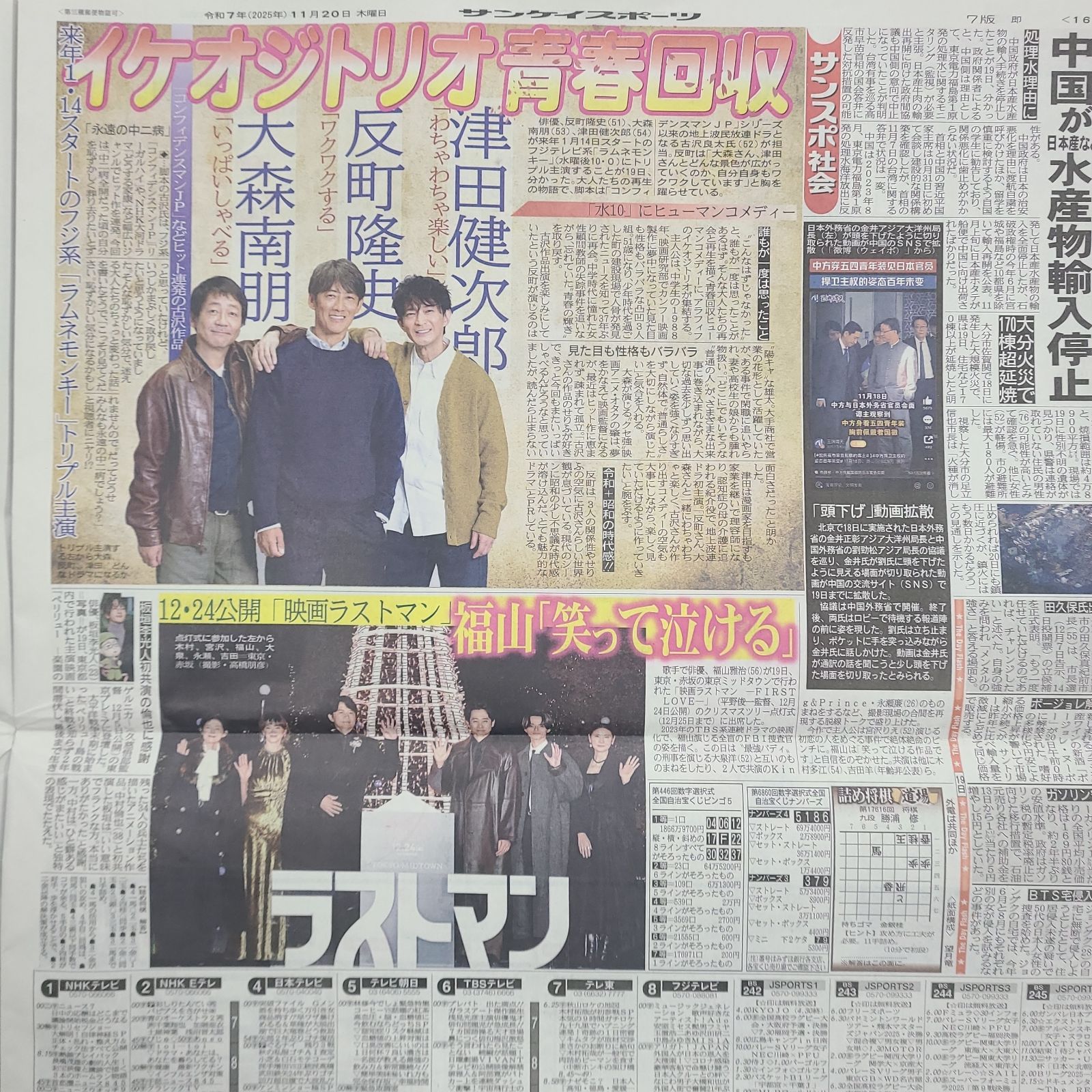 匿名配送!送料込み! 11月20日 朝刊 スポーツ紙全5社