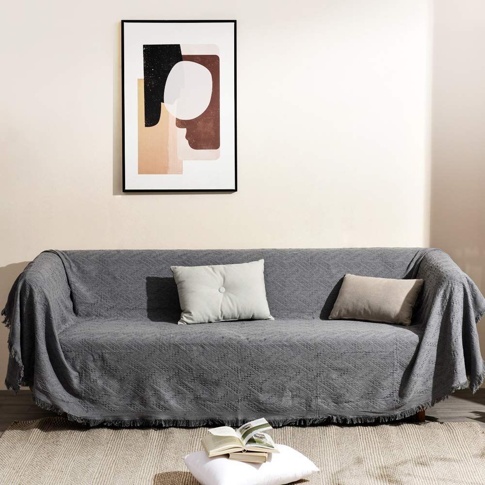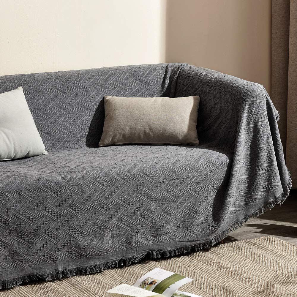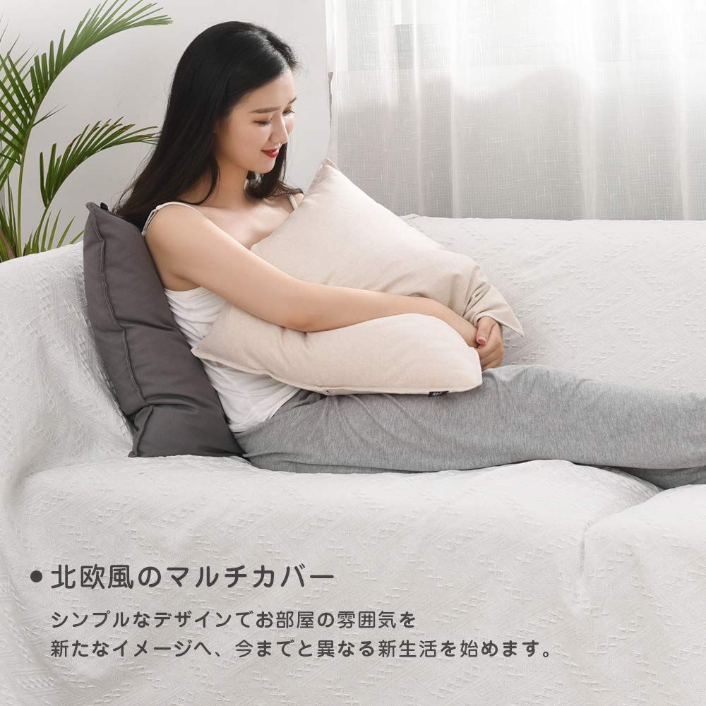 【特価商品】洗える 汚れ防止 キズ 四季通用 ほこり 保護カバー 1234人掛け おしゃれ グレー・T柄 フリンジ付き ソファーかばー 多機能 マルチカバー 130×180cm(1~2人掛け) 北欧風 ソファカバー 限定】クモリ(Kumori) 【