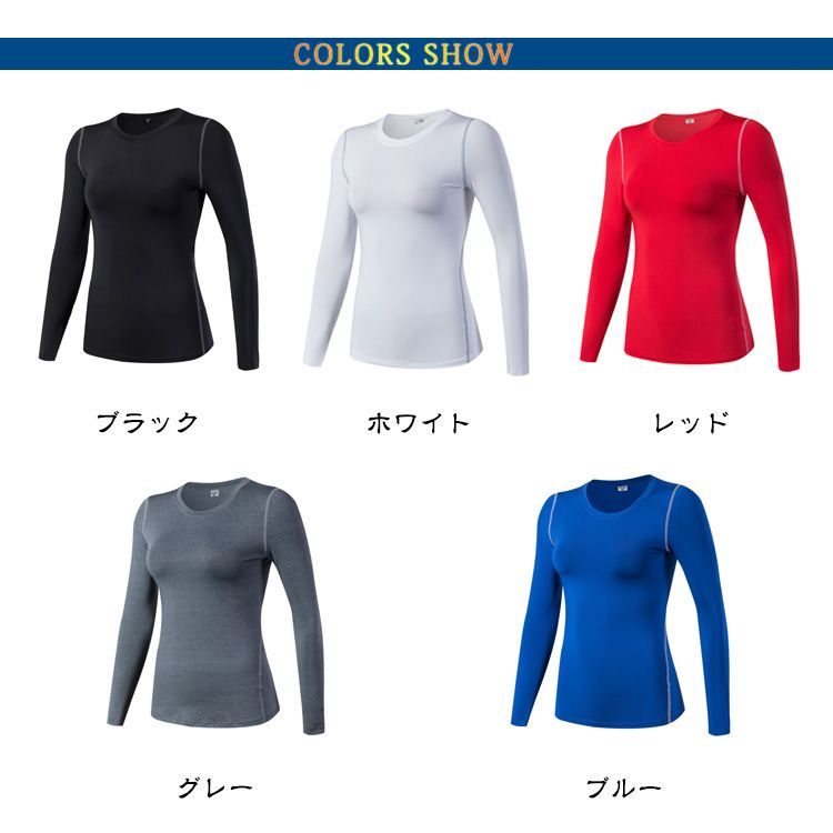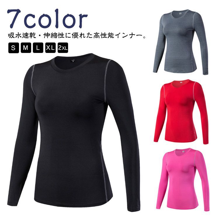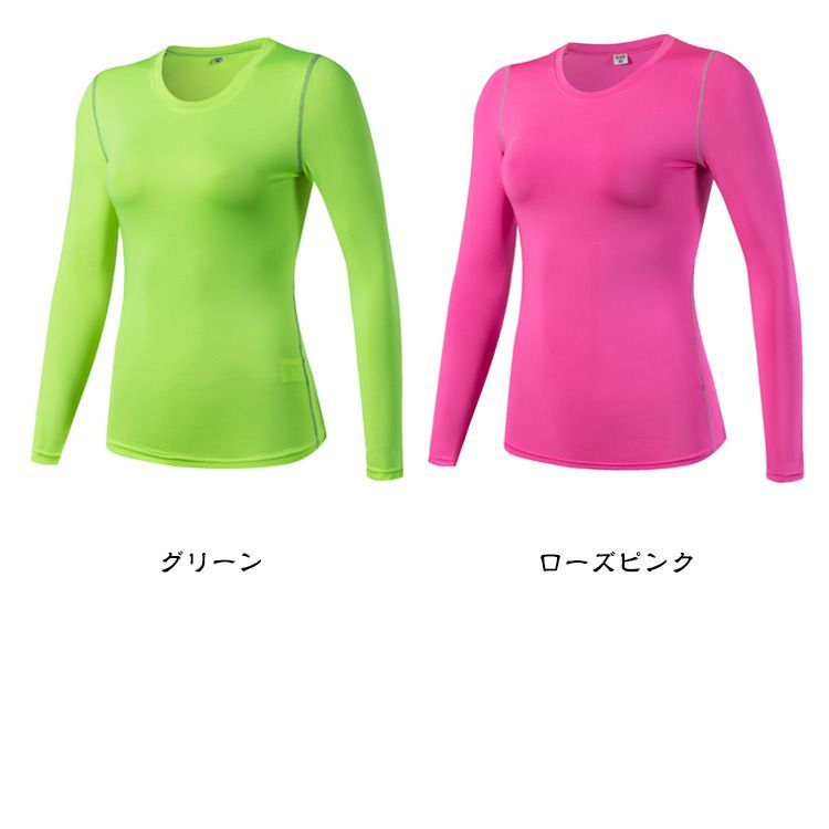スポーツインナー 長袖 コンプレッション レディース アンダーウェア ヨガウェア ストレッチ 吸汗速乾 フィットネスウェア ランニング 重ね着 ジム ウェア スポーツウェア ウォーキングウェア 丸首 #pop2425