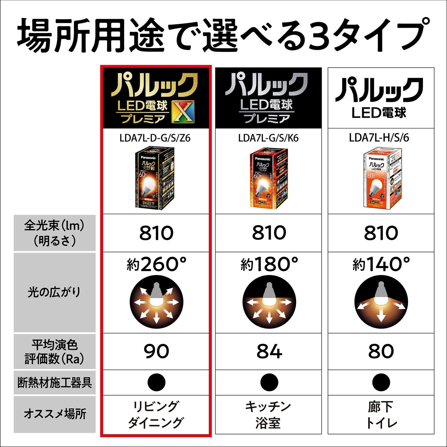 パナソニック パルック LED電球 口金直径26mm プレミアX 電球60形相当 電球色相当(7.4W) 一般電球 空間全体を照らすタイプ(全方向タイプ) 密閉器具対応 LDA7LDGSZ6 [電球色] [1個] [60W相当]
