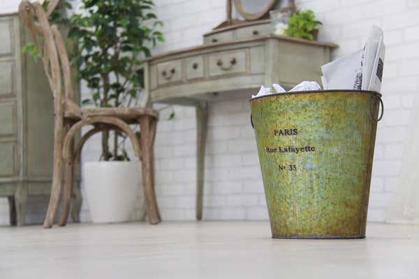 スチール製(粉体塗装)レトロデザインのマルチ収納(ダストボックス)「φ25×H29cm」(丸型)No.426/グリーン