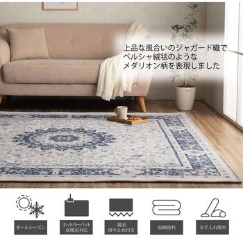 ラグ 約130×185cm 手洗い ジャガード織 メダリオン柄 床暖房 ホットカーペット対応 シンフォニー