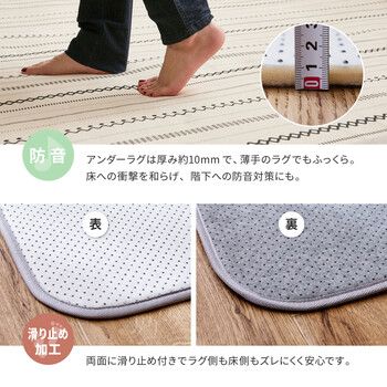 ラグ&アンダーラグ2点ブラック 約185×240cm 洗濯機で洗える ボンディングラグ インド綿100% ティック