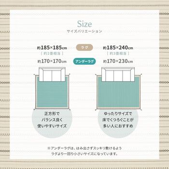 ラグ&アンダーラグ2点ブルー 約185×240cm 洗濯機で洗える ボンディングラグ インド綿100% ティック