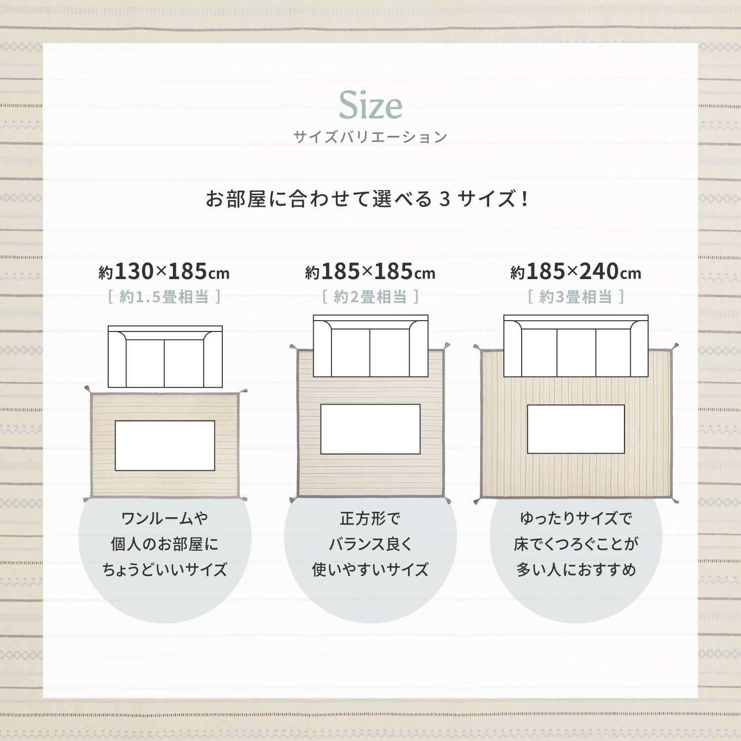 ラグ 約185×185cm インド綿100% ブラック 洗濯機で洗える ボンディングラグ ティック