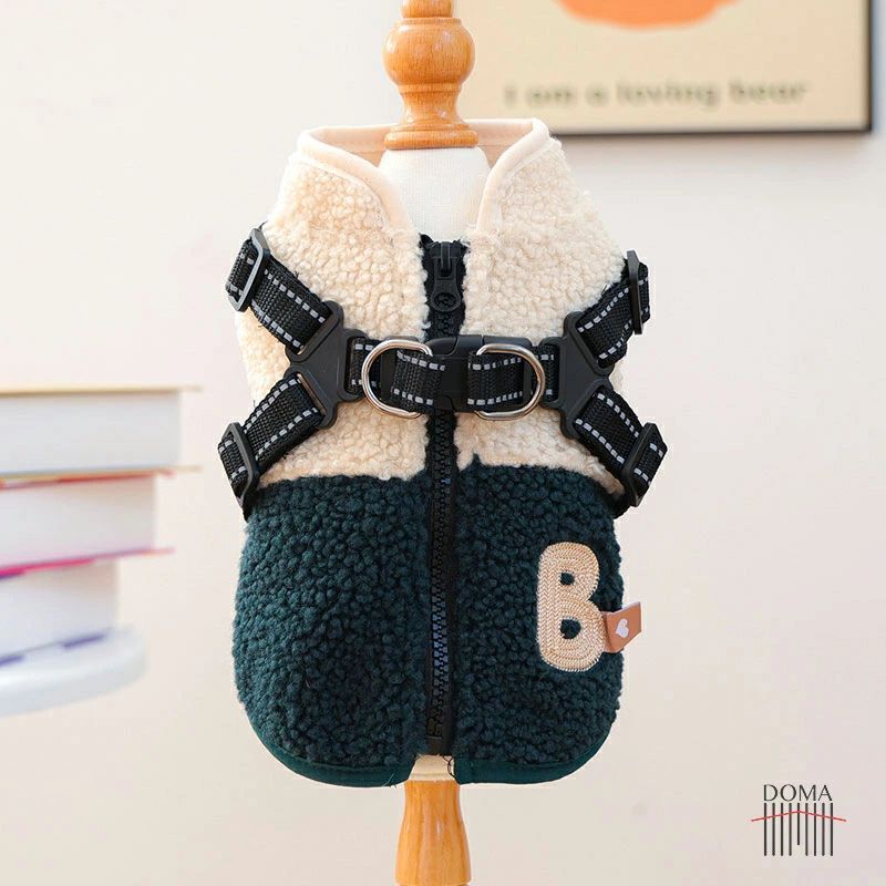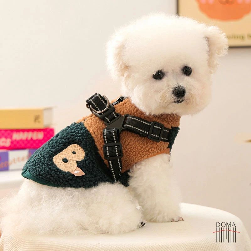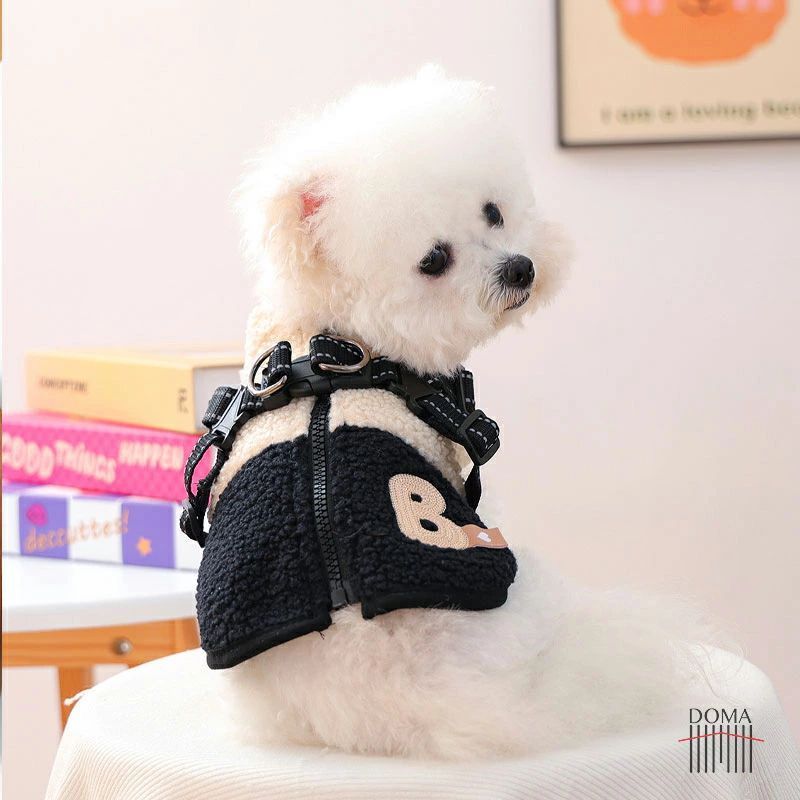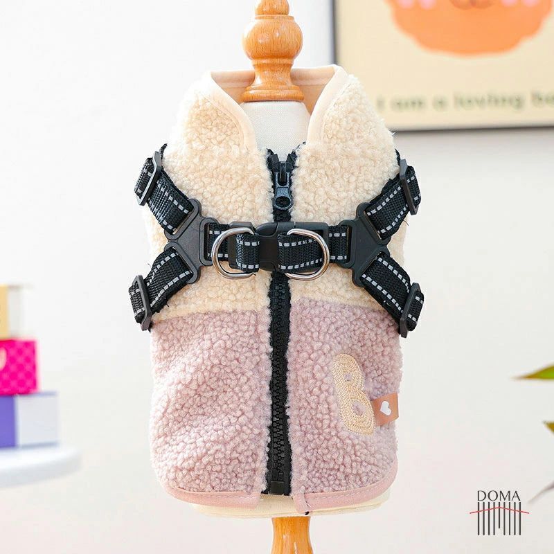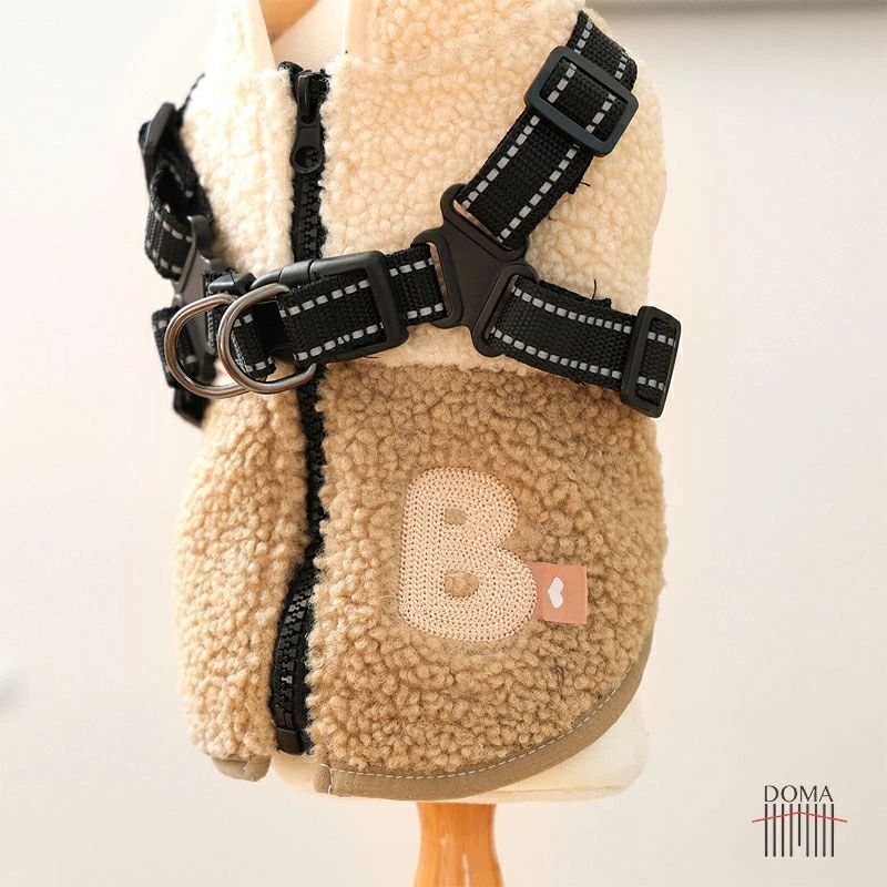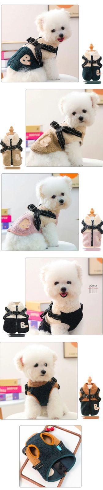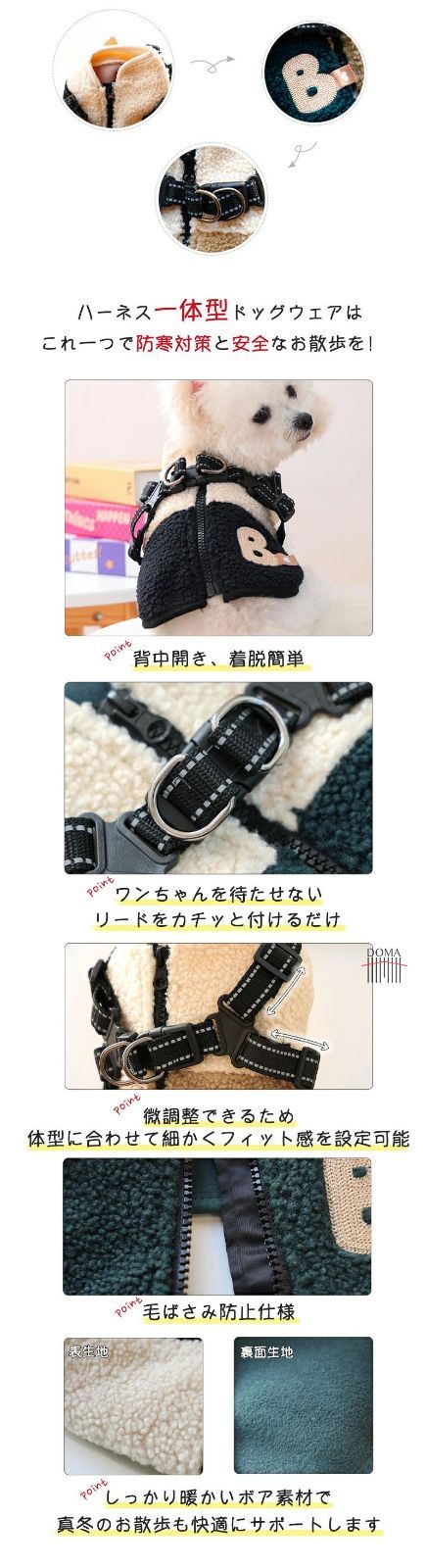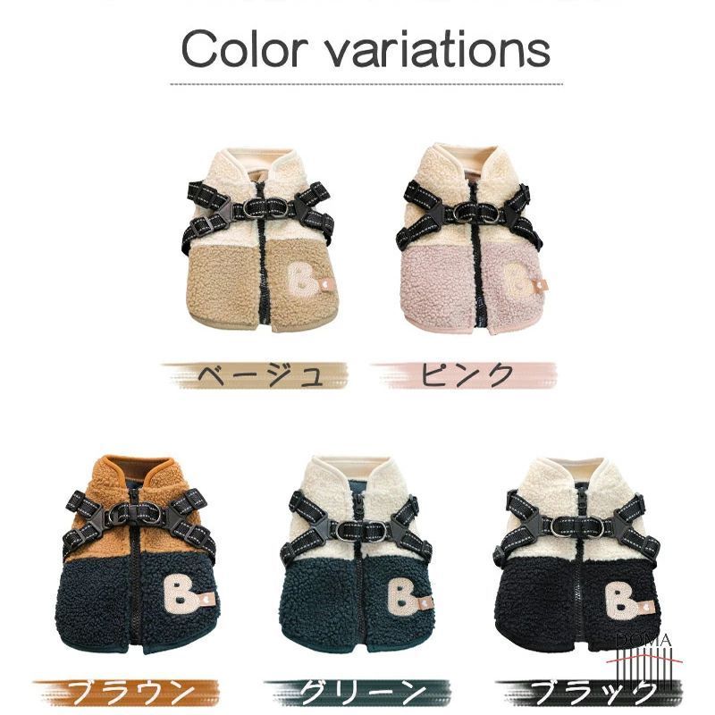 【秋冬新作】犬 服 冬 ハーネス一体型 ボア ベスト コート 防寒 着脱簡単 ジッパー 小型犬 中型犬 暖かい あったか 裏起毛 フリース 反射材付き もこもこ 秋冬
