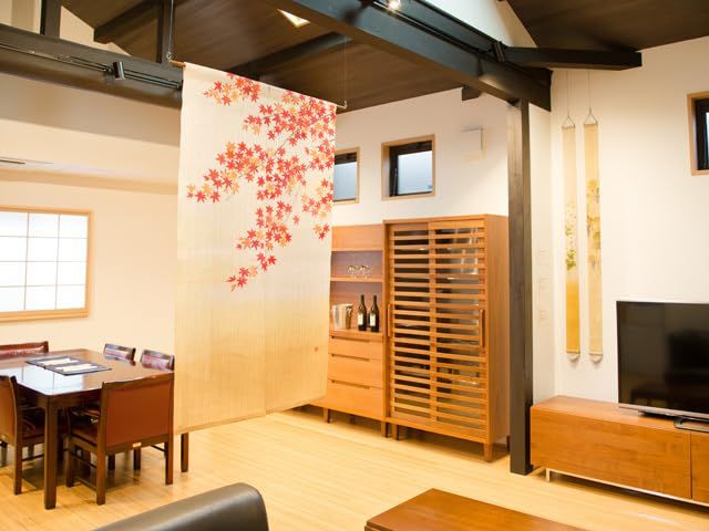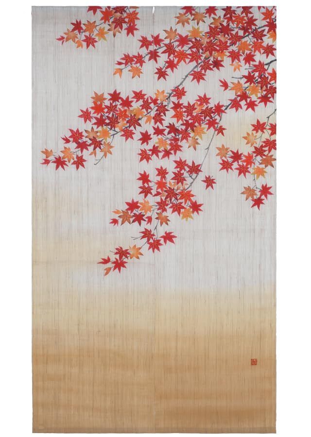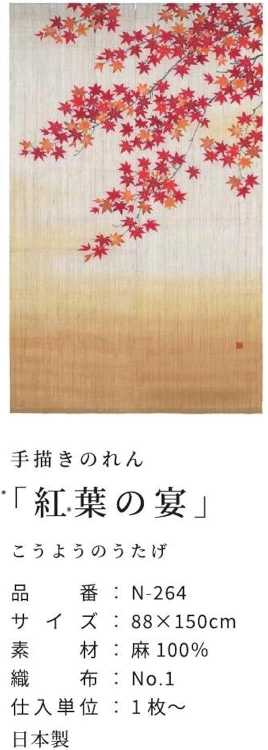 265 京都洛柿庵 のれん N-264 手書きのれん 「紅葉の宴」 麻 100% タペストリー 掛け軸 インテリア 和モダン 和風