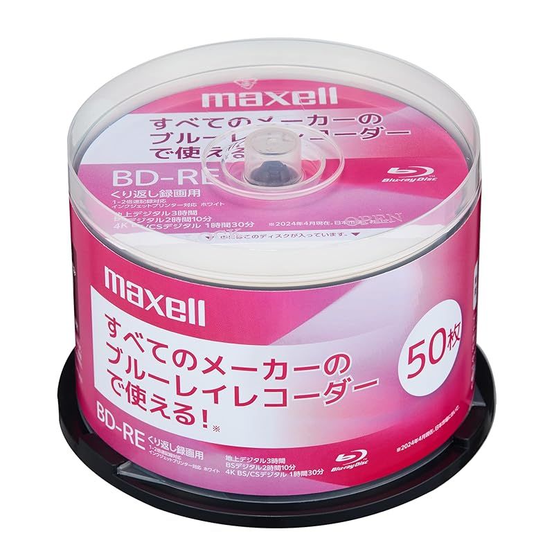 【.co.jp限定】 マクセル(maxell) ブルーレイディスク ブルーレイ Blu-ray Blu-rayディスク 録画用 BD-RE 50枚 くり返し 繰り返し 25GB 地上デジタル BSデジタル 4K BS CS スピンドルケース インクジェット 1