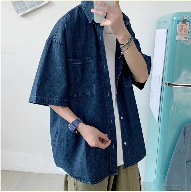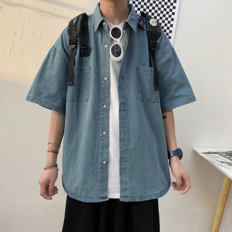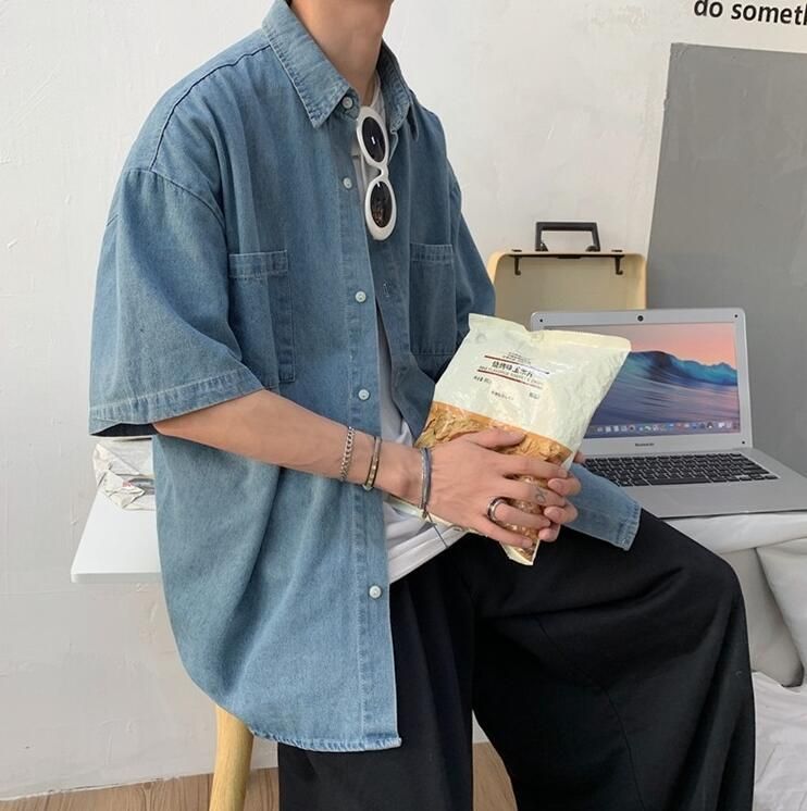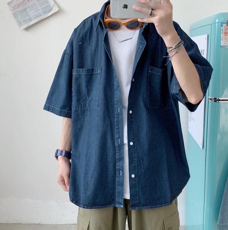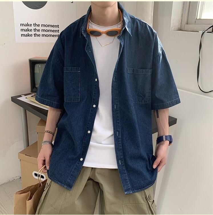 デニムシャツ メンズ かっこいい 春 夏アウター 半袖シャツ カジュアルシャツ ゆったり 通勤 スリム 細身 おしゃれ 20代30代 大人 学生 ス