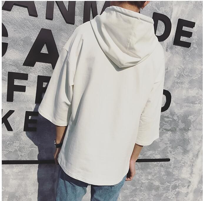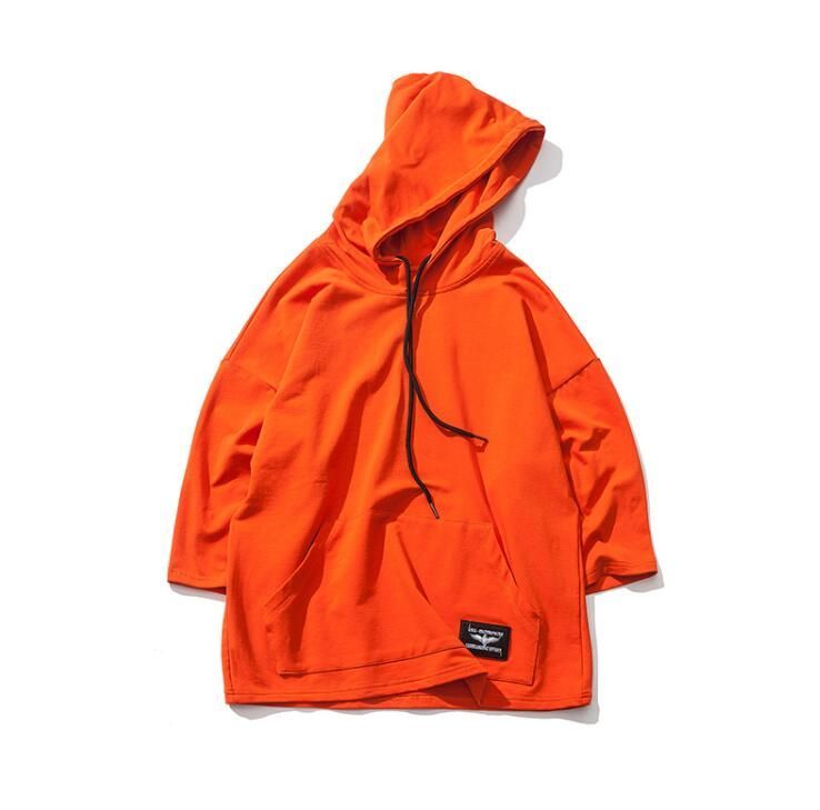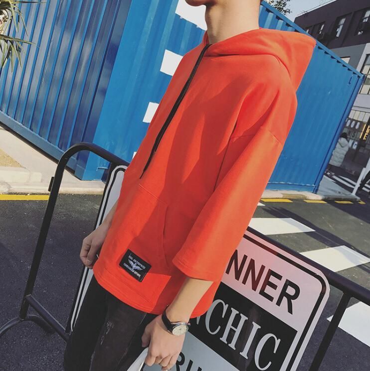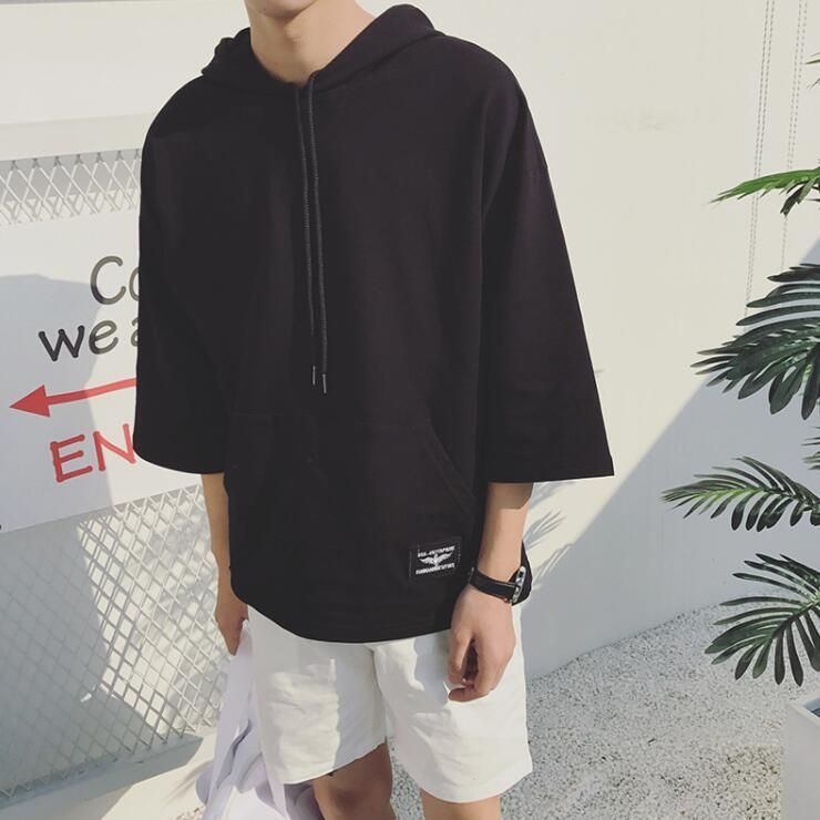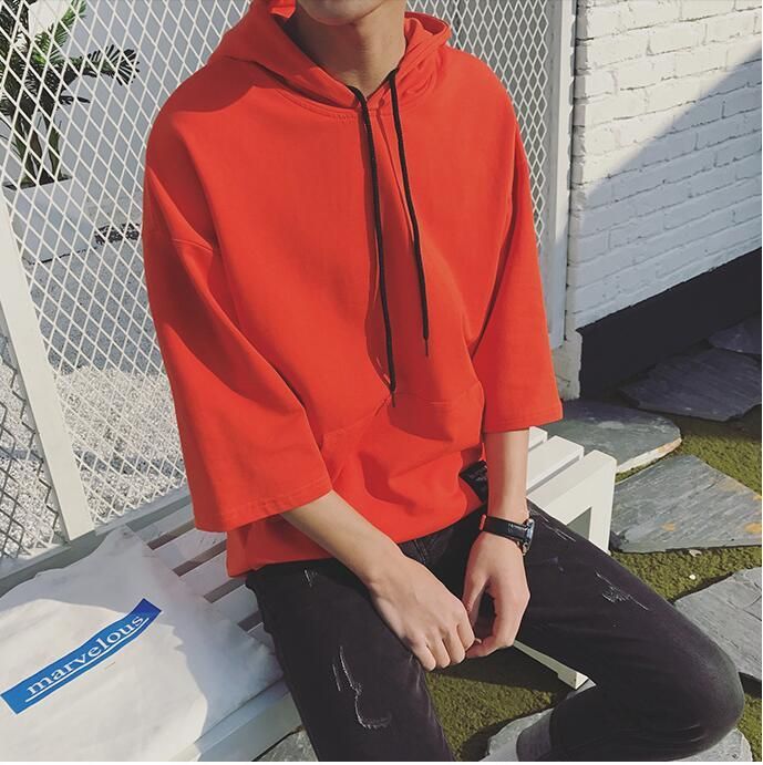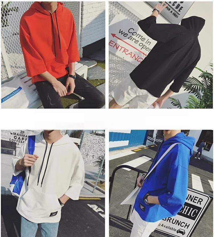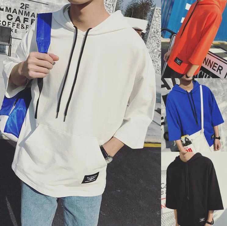 メンズ プルオーバー パーカー スウェット コットン 7分袖 フード付き 無地 薄手 春夏 アウター トップス ゆったり アウトドア 大きいサイ
