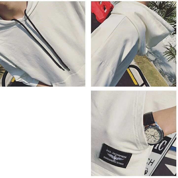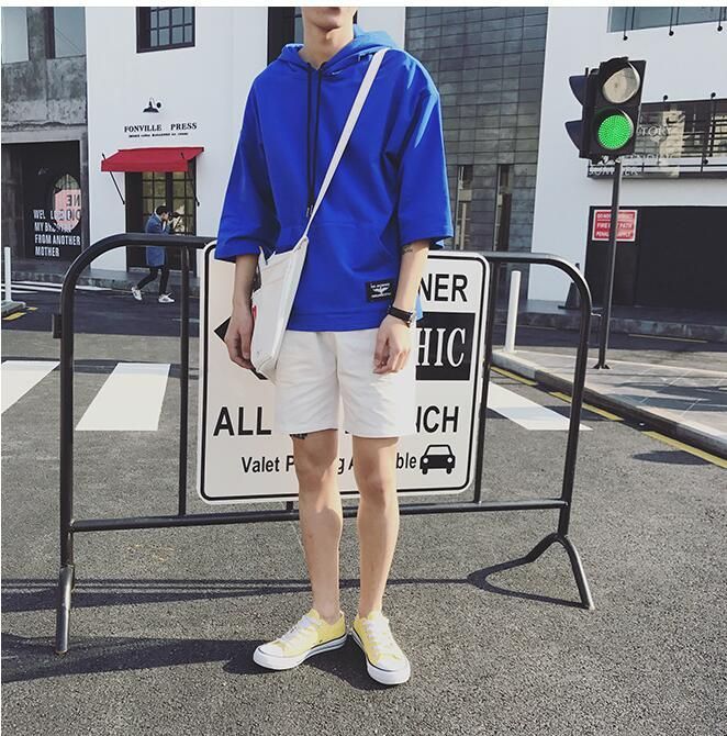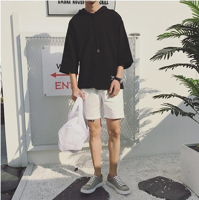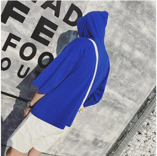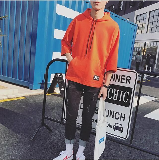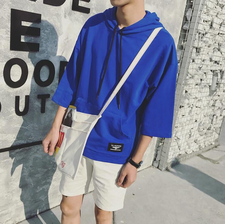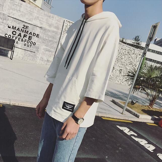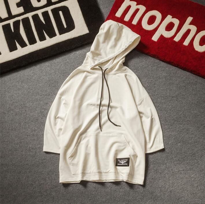 メンズ プルオーバー パーカー スウェット コットン 7分袖 フード付き 無地 薄手 春夏 アウター トップス ゆったり アウトドア 大きいサイ