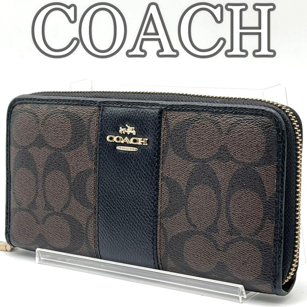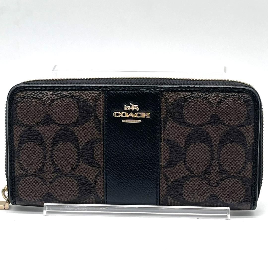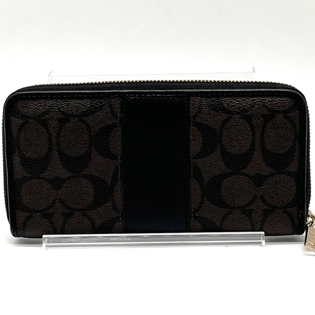 COACH コーチ Long Wallet シグネチャー PVC レザー ラウンドファスナー 長財布 ブラウン 馬車ロゴ 大容量