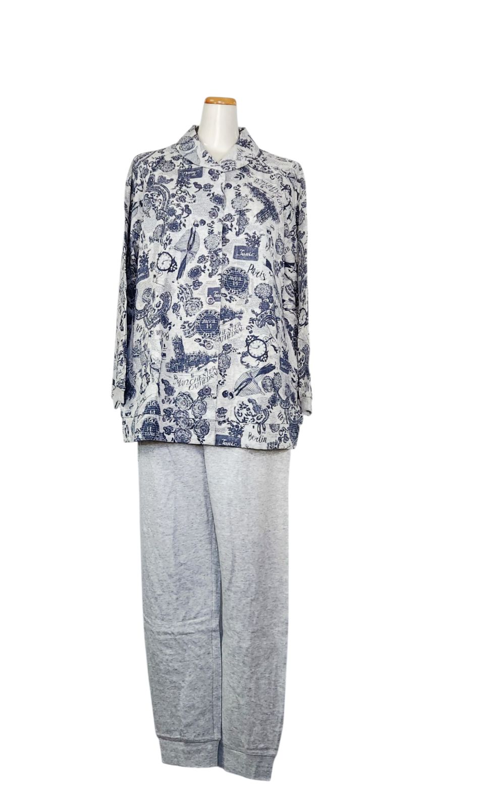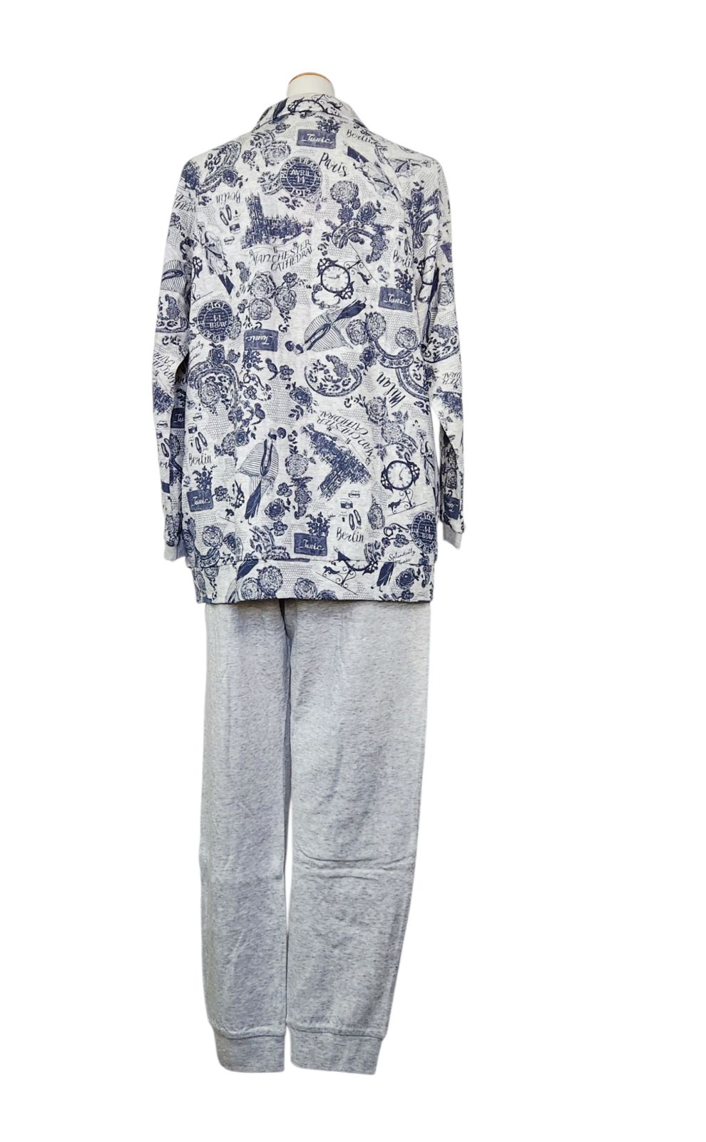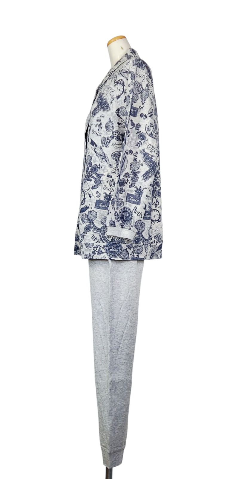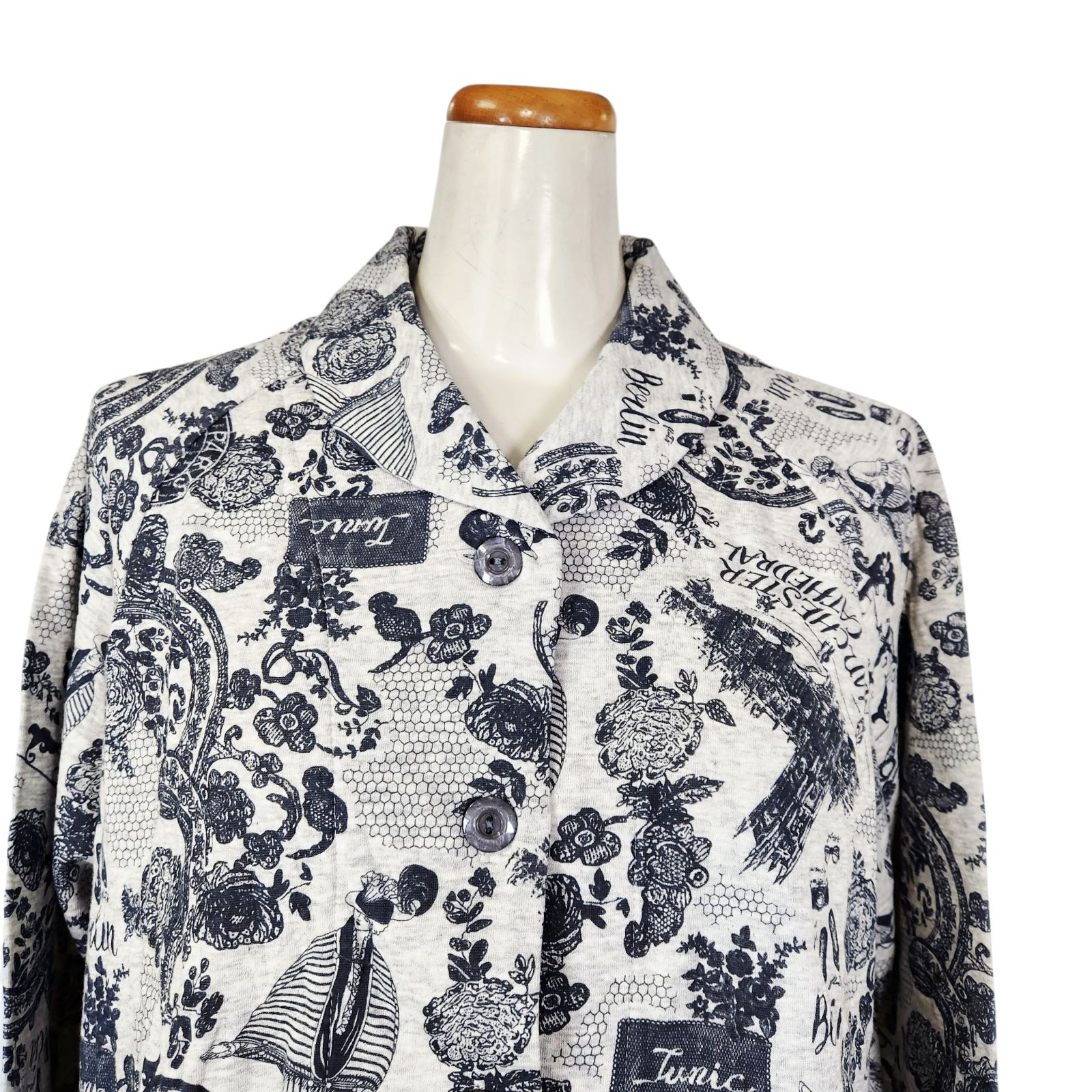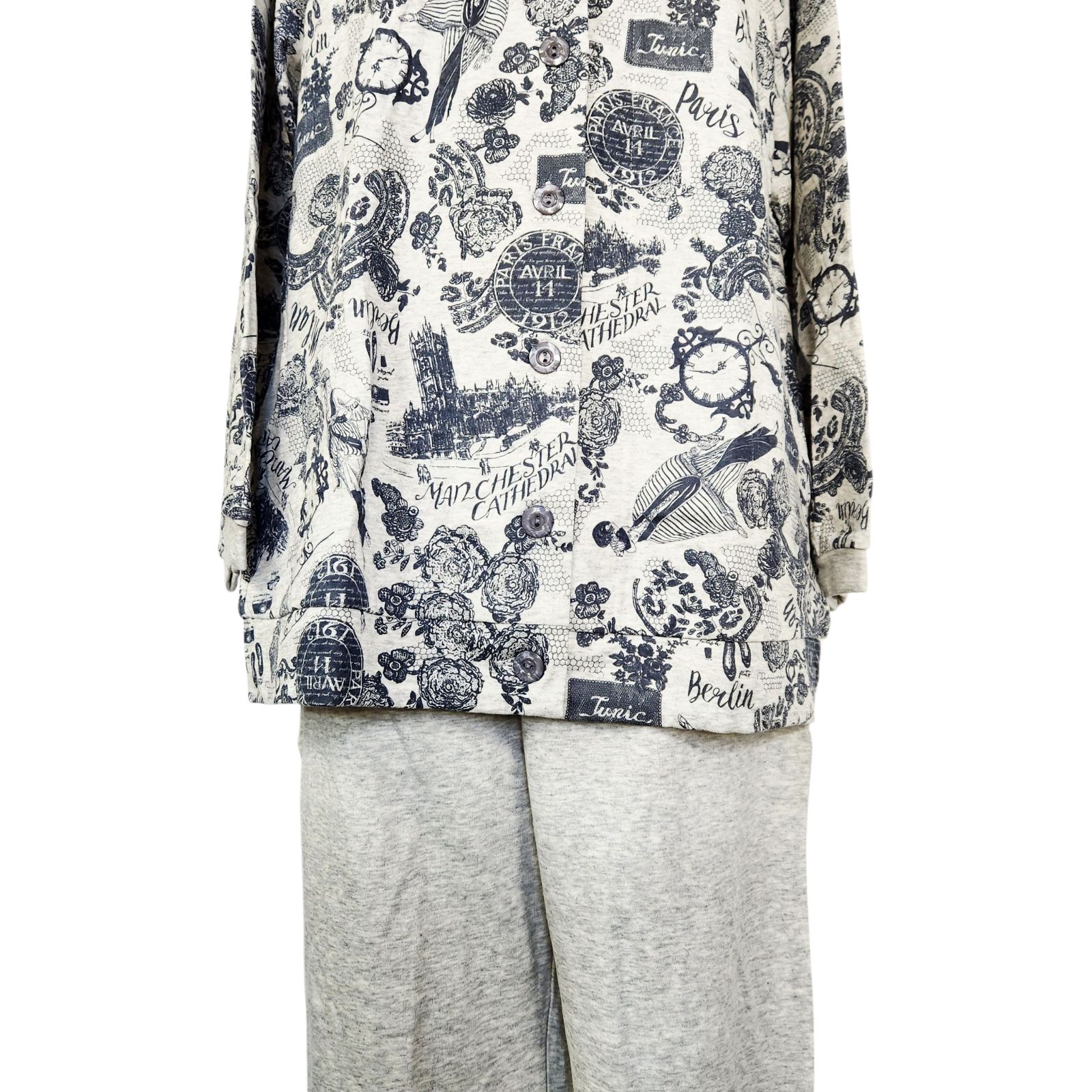 鴨居羊子パジャマ 新品未使用‼️TUNIC 襟付き全開ジャマ 40接結レトロモノトン 29340 グレー色 日本製