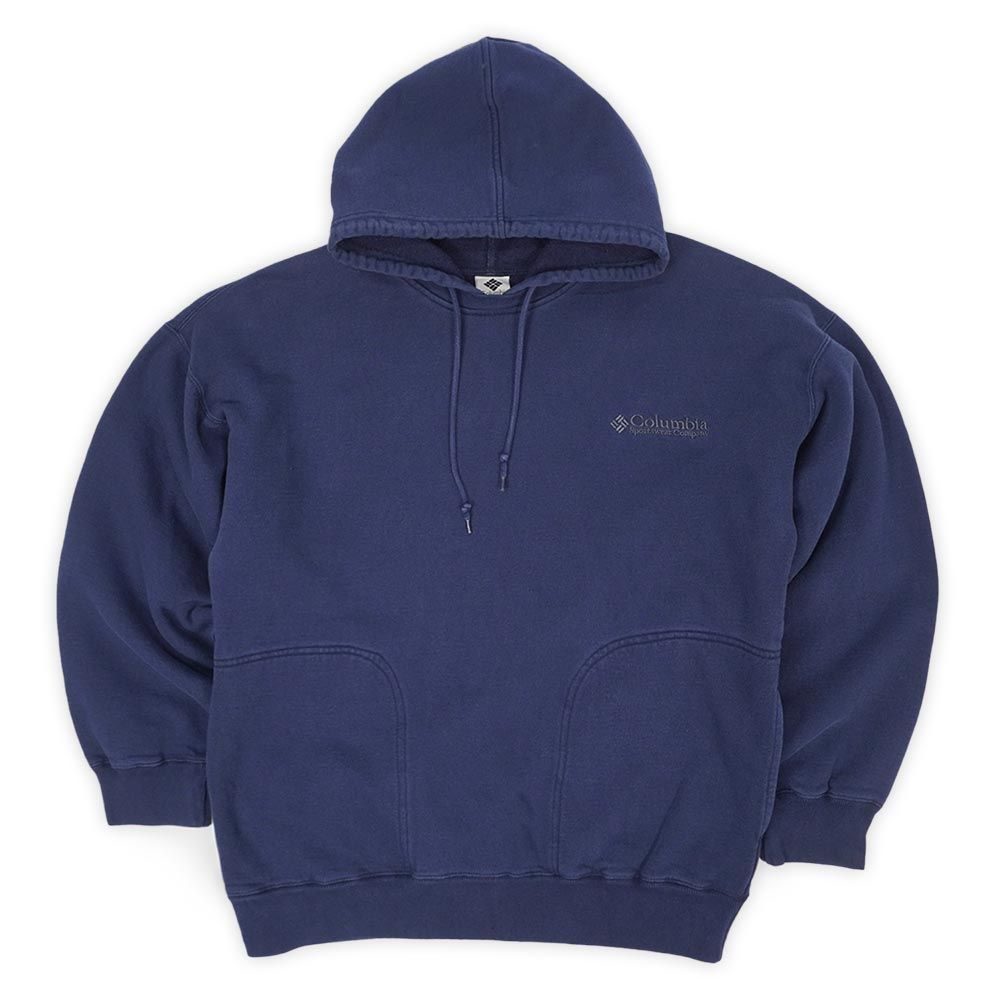コロンビア Columbia 90s 90年代 フェイクレイヤード スウェットパーカー フーディー オールド 旧タグ アウトドア USA ヴィンテージ アメリカ 古着 メンズ パーカー ネイビー 紺 M【中古】