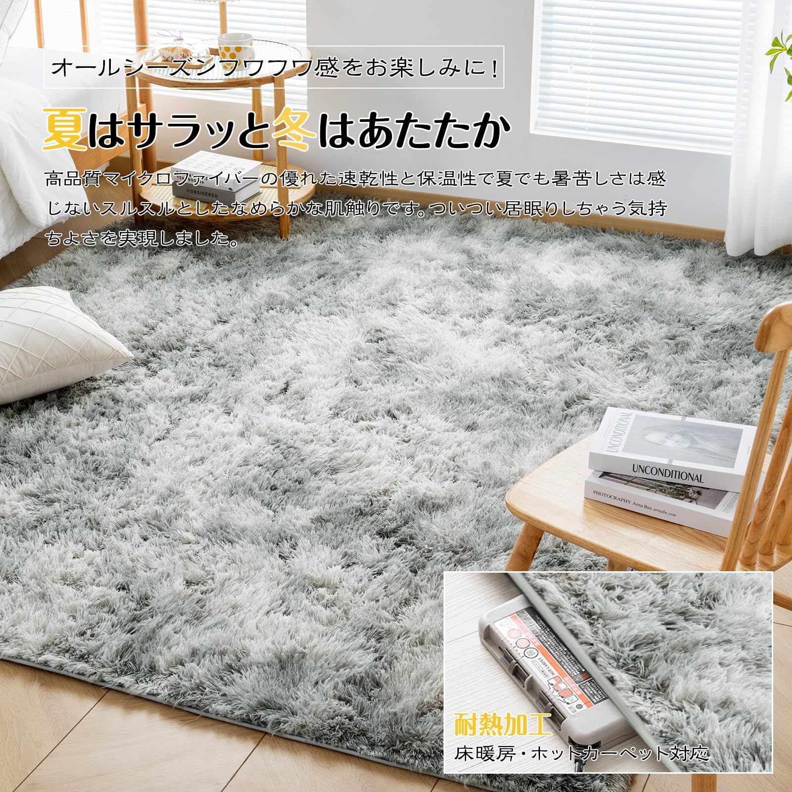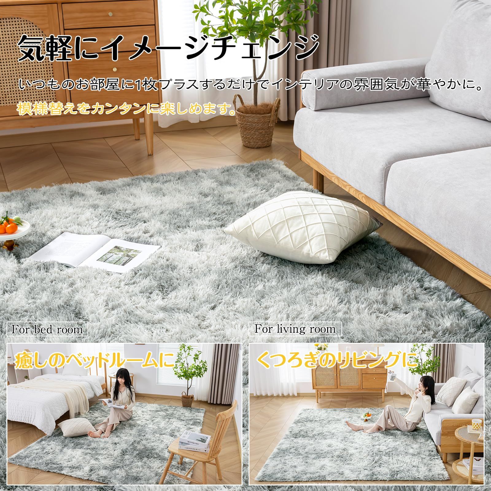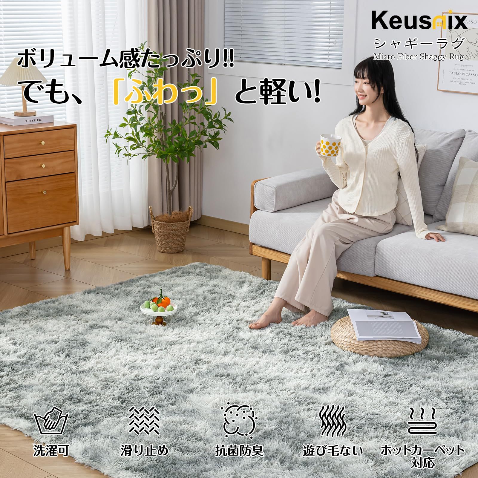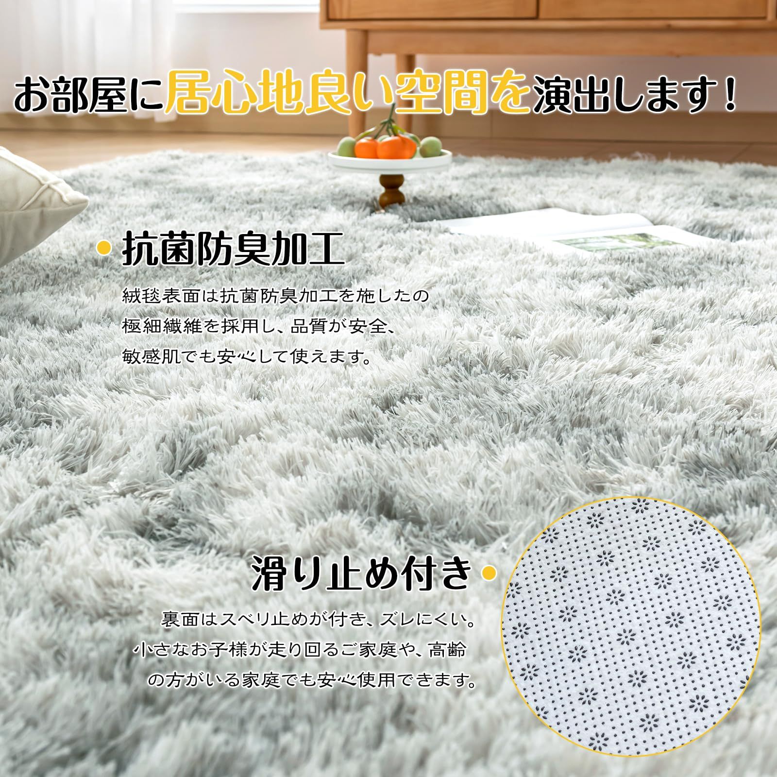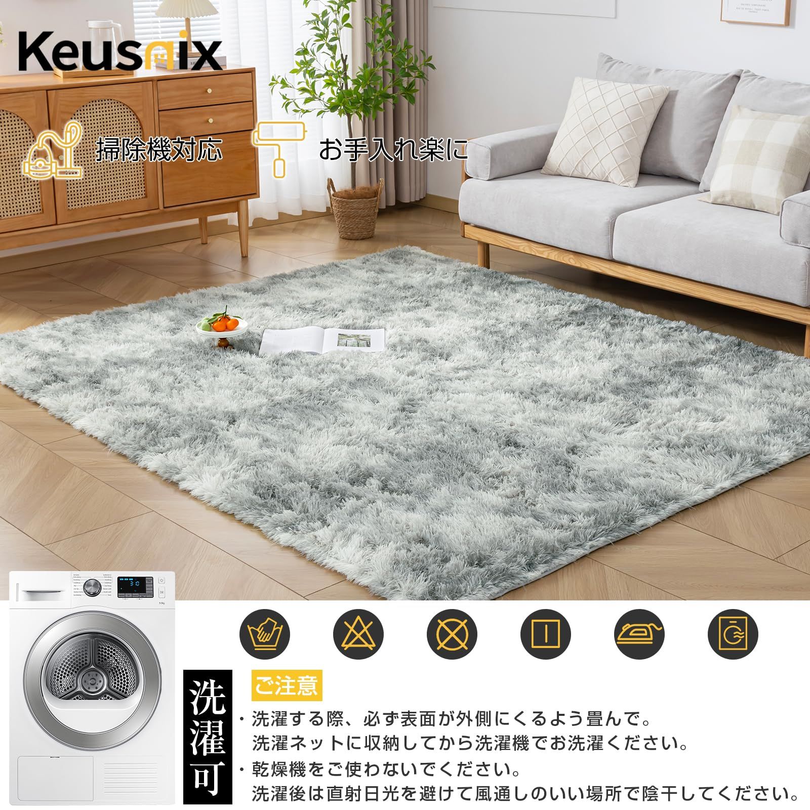 Keusnix ラグ カーペット ラグマット シャギーラグ 120x160cm 絨毯 ふわふわ 洗える 滑り止め付 肌触り優しい 防ダニ 抗菌 防臭 オールシーズン快適に使用 床暖房 ホットカーペット対応 ミストグレー