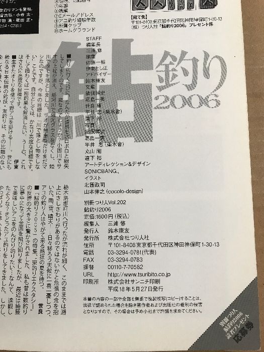 鮎釣り 2006 特集 のんびり、気張らず、入れ掛かり 悠々自適のマイ鮎ライフ&最新競技テクニック つり人社 (別冊つり人 Vol. 202)