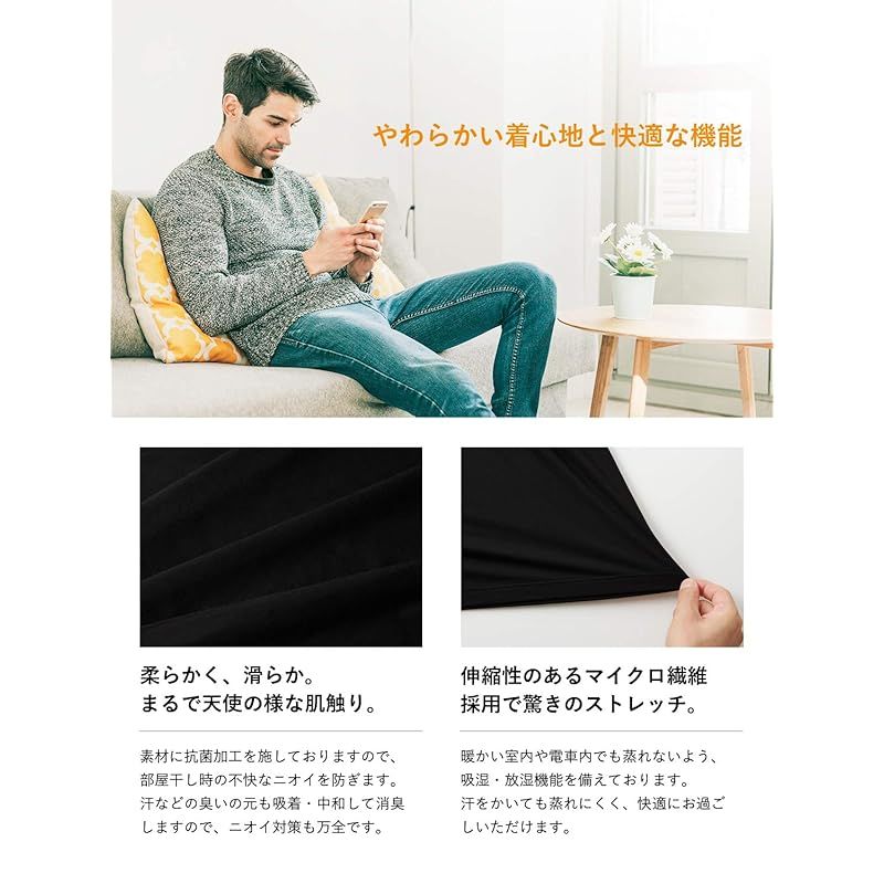 驚きのストレッチ性能で、ストレスフリー:伸縮性のあるマイクロ繊維素材を採用し、驚くほどの伸縮性を実現しました。体の動きを邪魔せず、不快感無く着用していただけます。重ね着をしていただく際のごわつきなどのストレスも軽減することができますので、ストレスフリーに着用していただけます。
