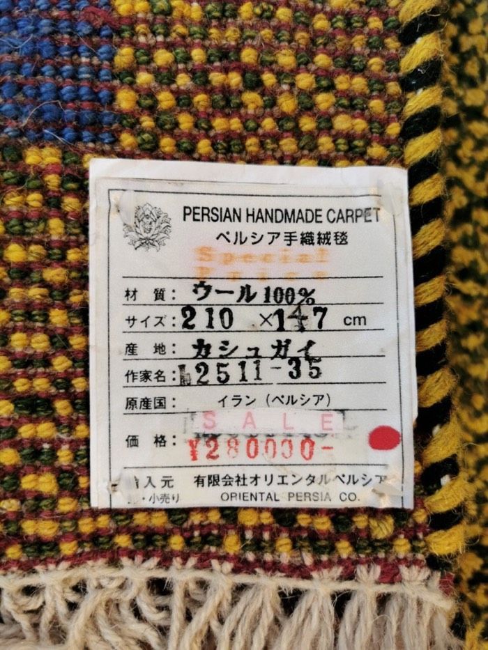 ギャッベ 手織りウールラグ 210×147cm カシュガイ