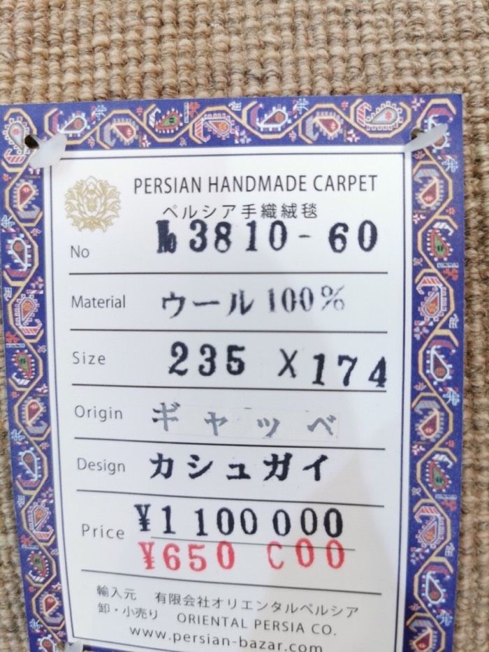 カシュガイ ギャッベ ウール100%手織りラグ 235×174cm