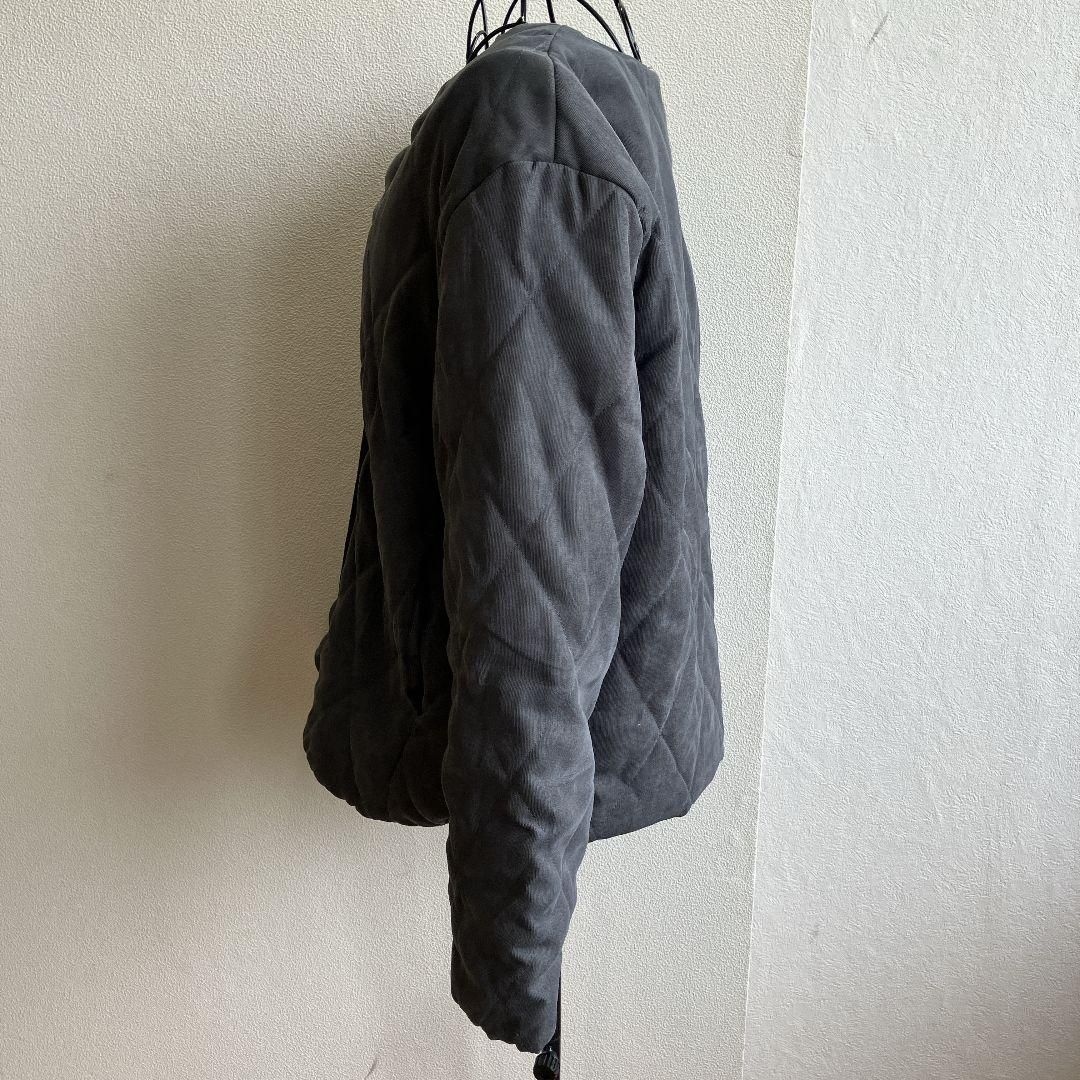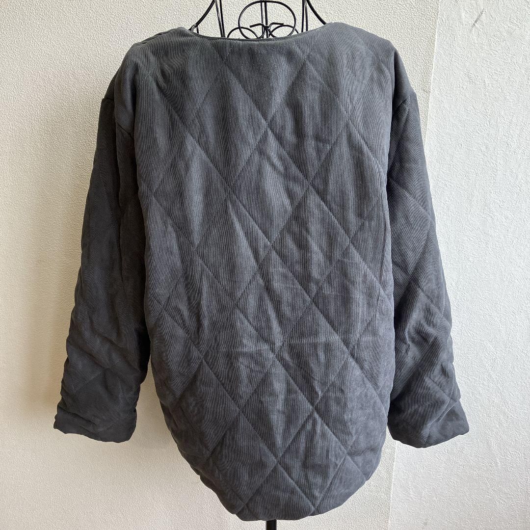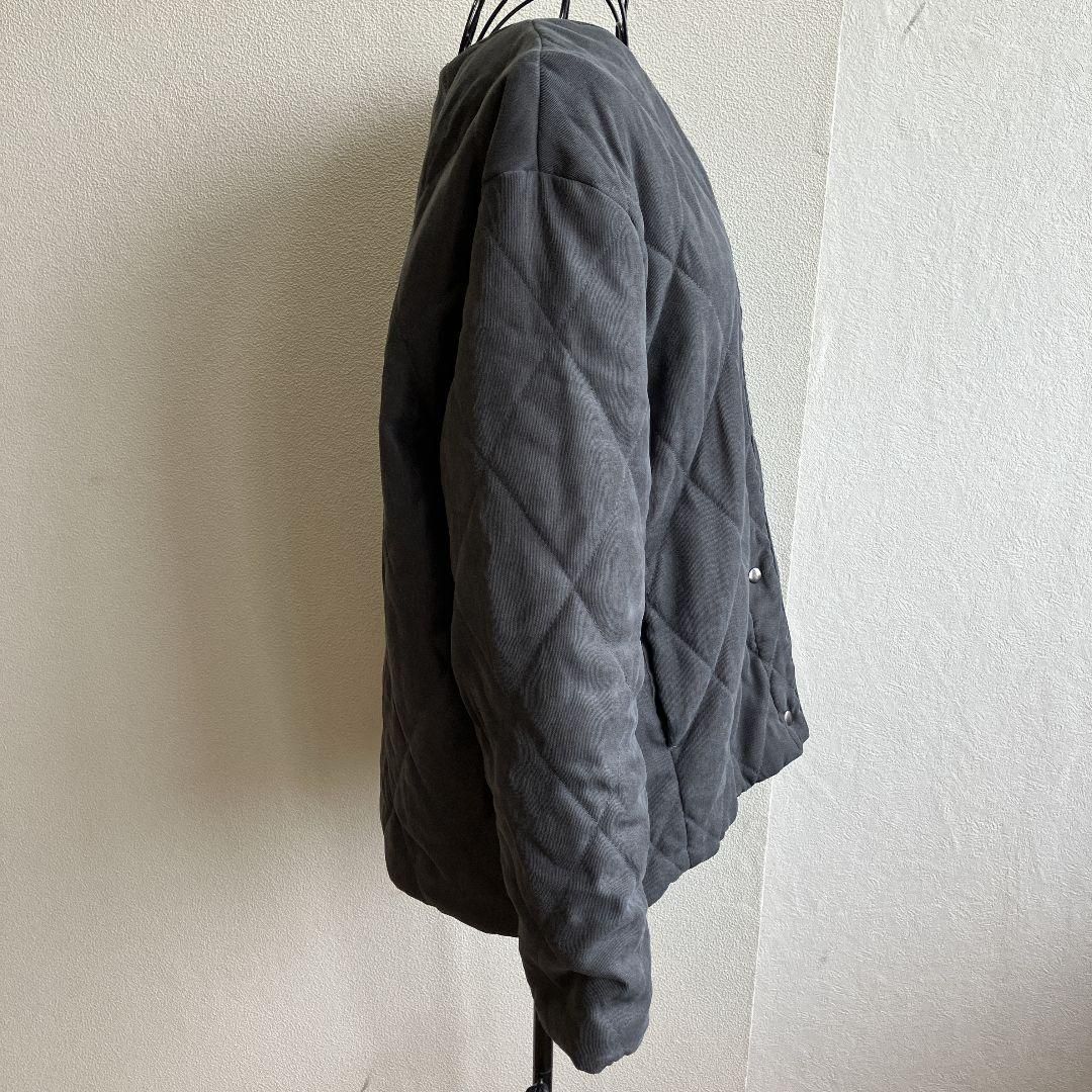 美品⭐️ ヒナスタイル HINA STYLE キルティング ジャケット コーデュロイ アウター ブルゾン ノーカラー スナップボタン 羽織 厚手 ミリタリー 大きめ オーバーサイズ ゆるダボ 起毛 防寒 しまむら コラボ グレー