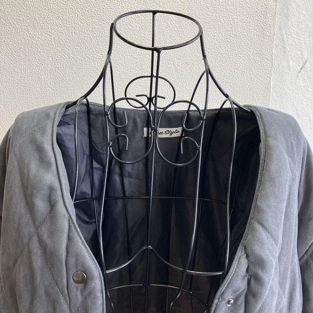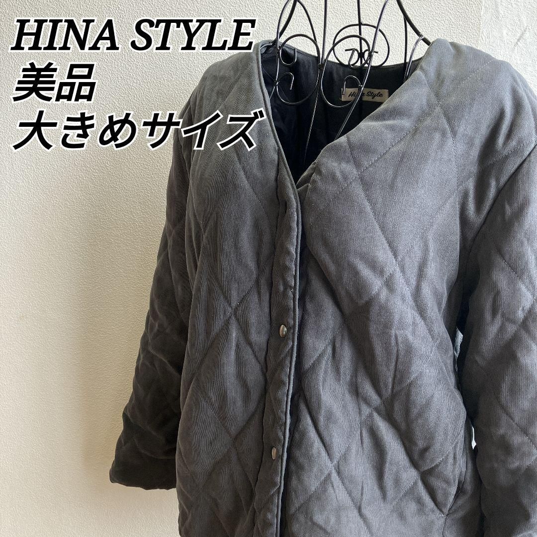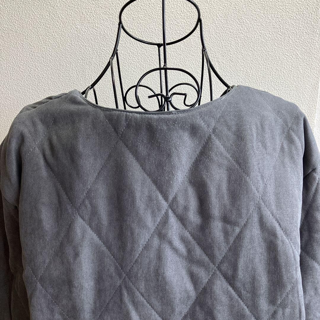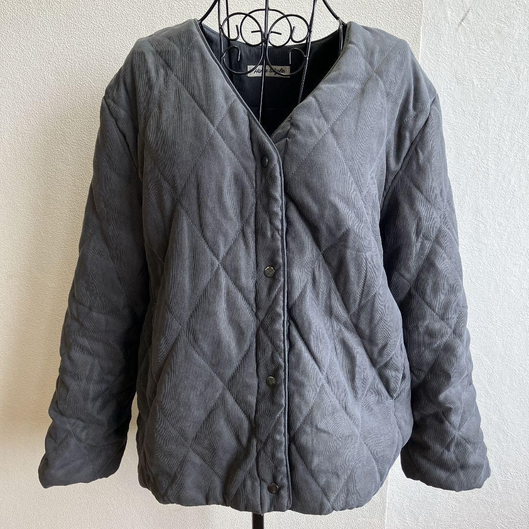 美品⭐️ ヒナスタイル HINA STYLE キルティング ジャケット コーデュロイ アウター ブルゾン ノーカラー スナップボタン 羽織 厚手 ミリタリー 大きめ オーバーサイズ ゆるダボ 起毛 防寒 しまむら コラボ グレー