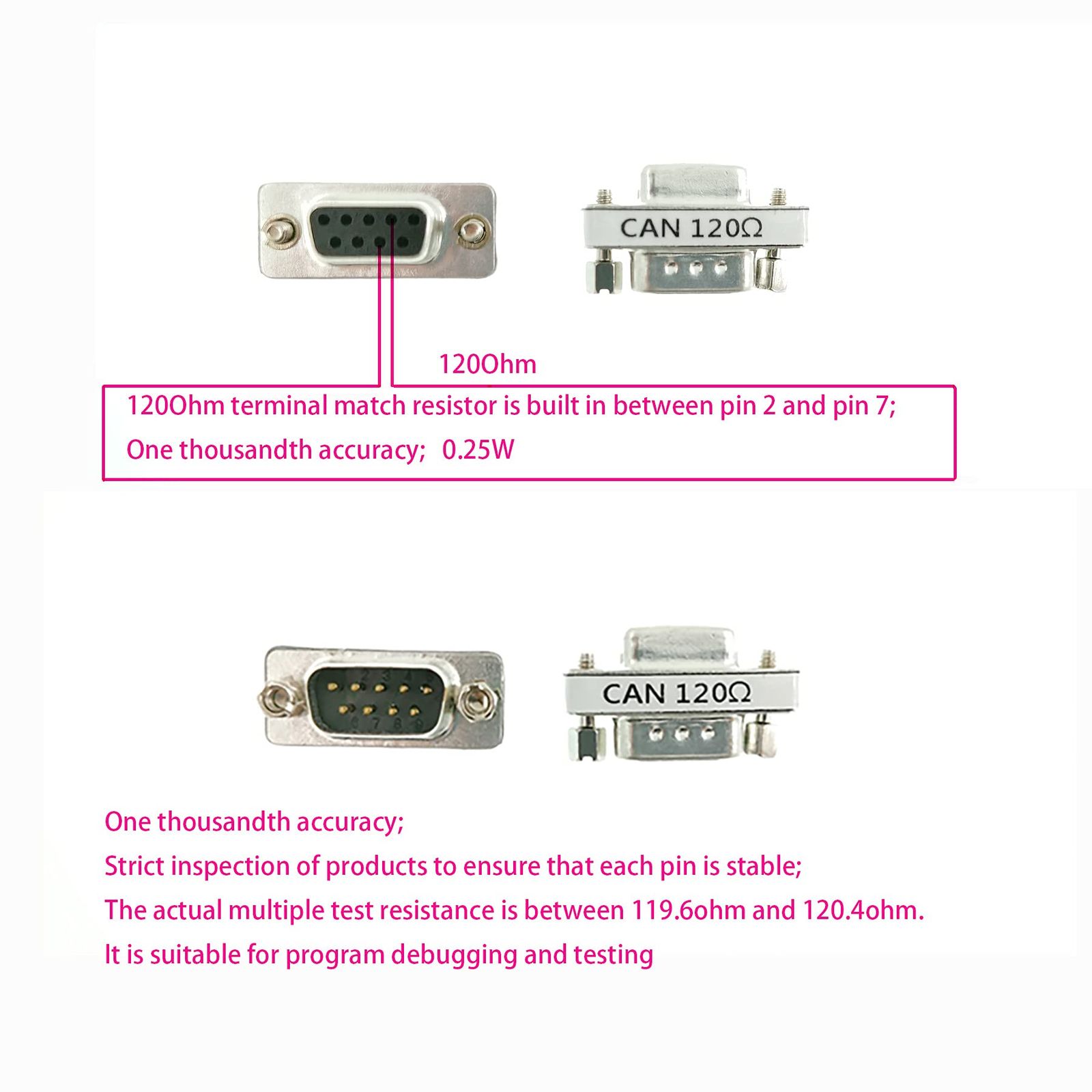 CAN DB9 120ohmCAN Bus Terminal ResistanceDB9 Female to Male Connector with Accuracy of one Thousandth 120 Ohm Resistancehigh-Precision up to one Thousandth (CANDB9120ohm5PCS)