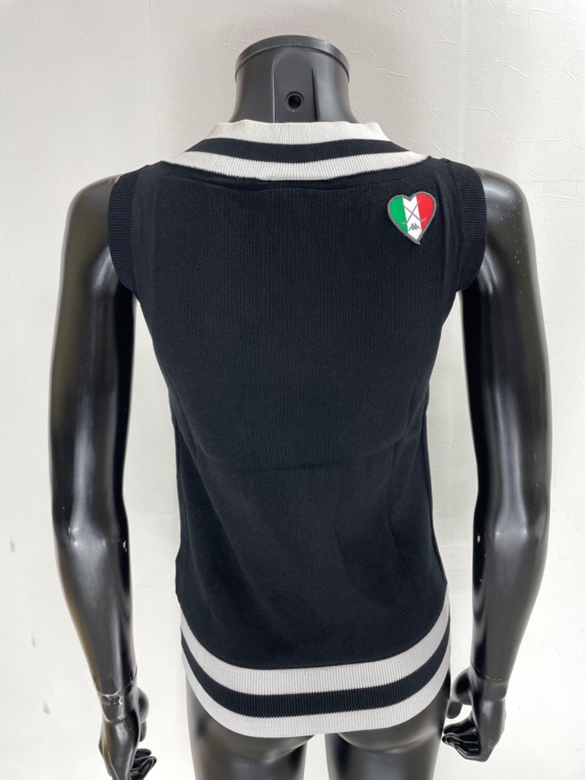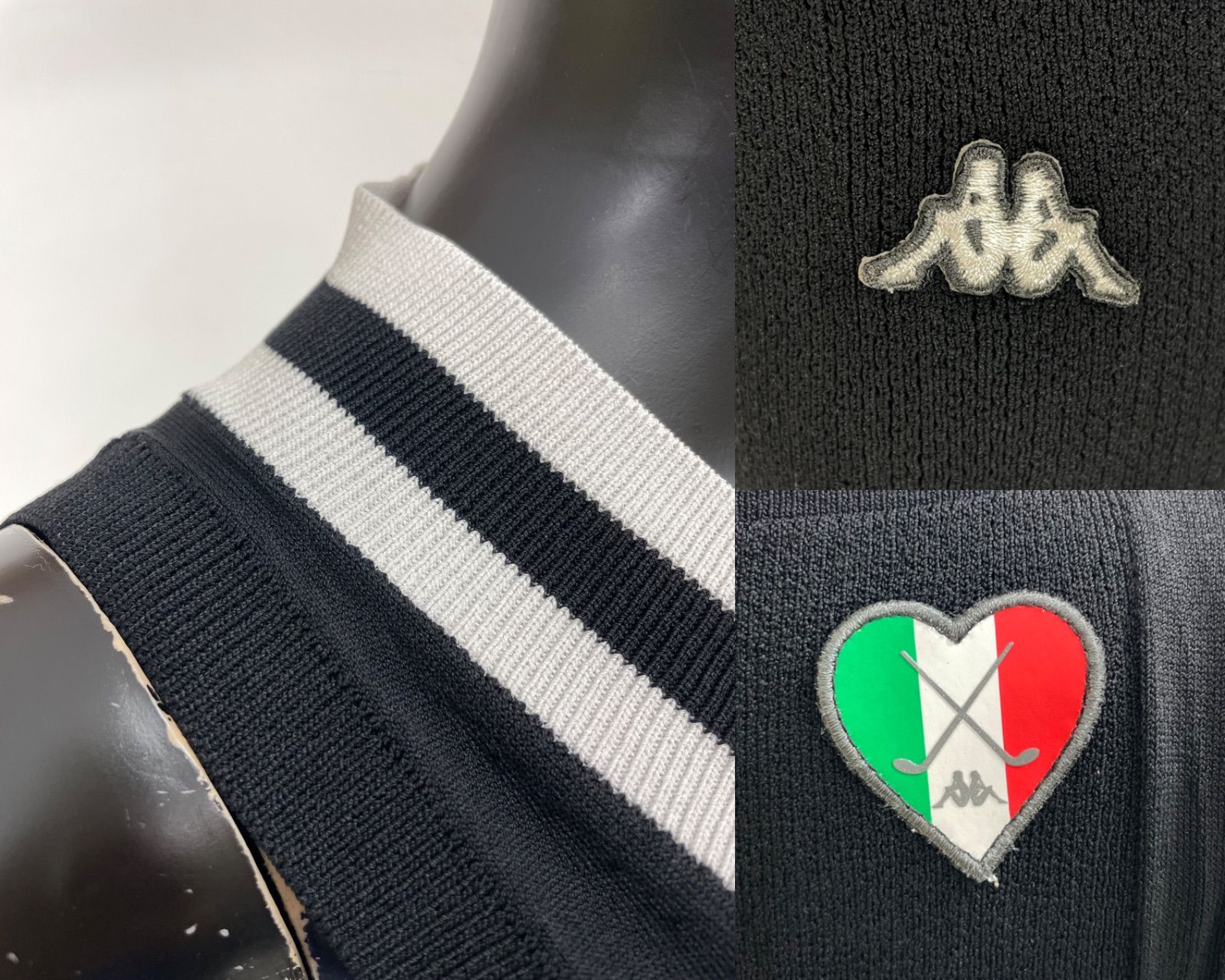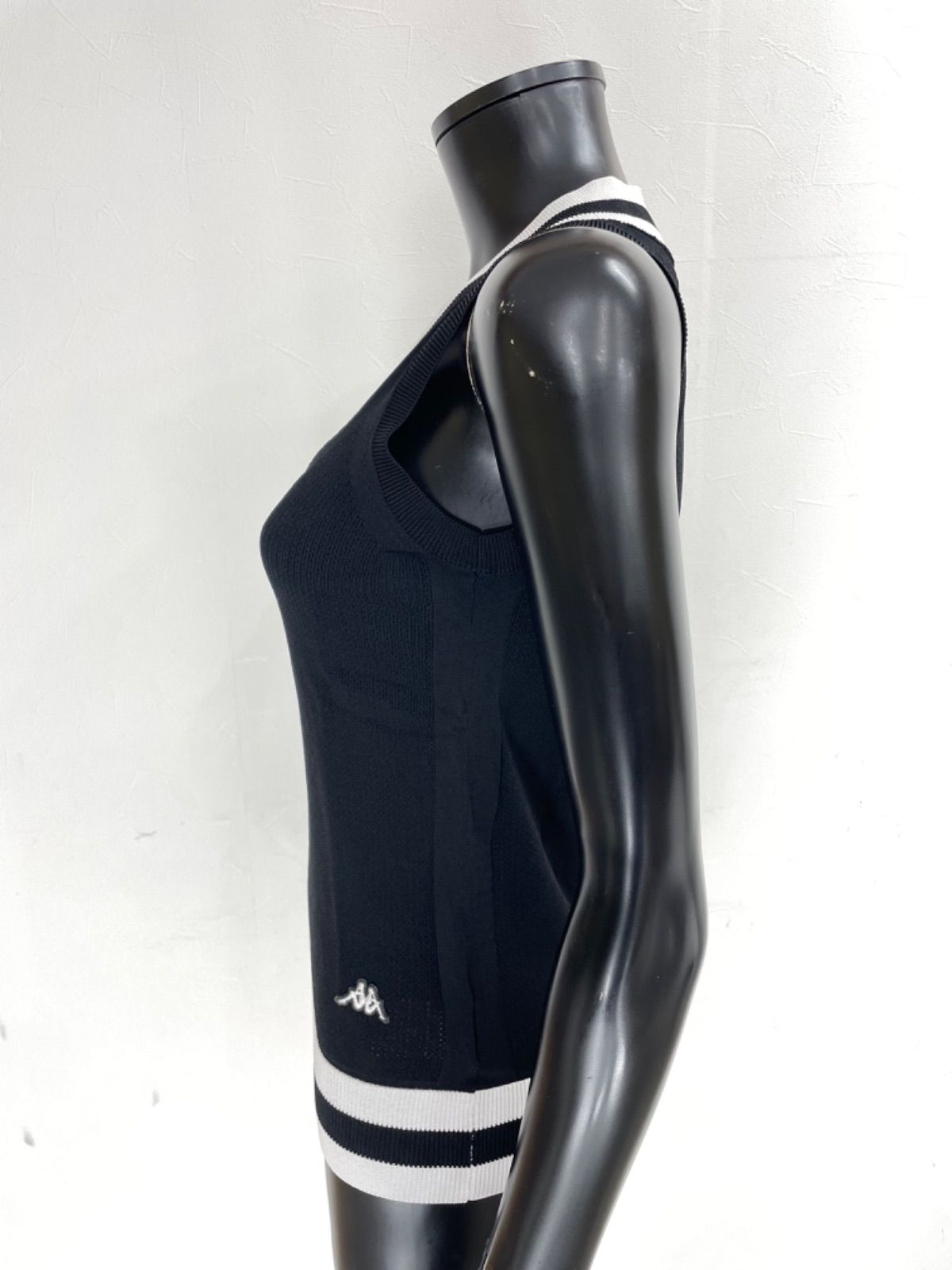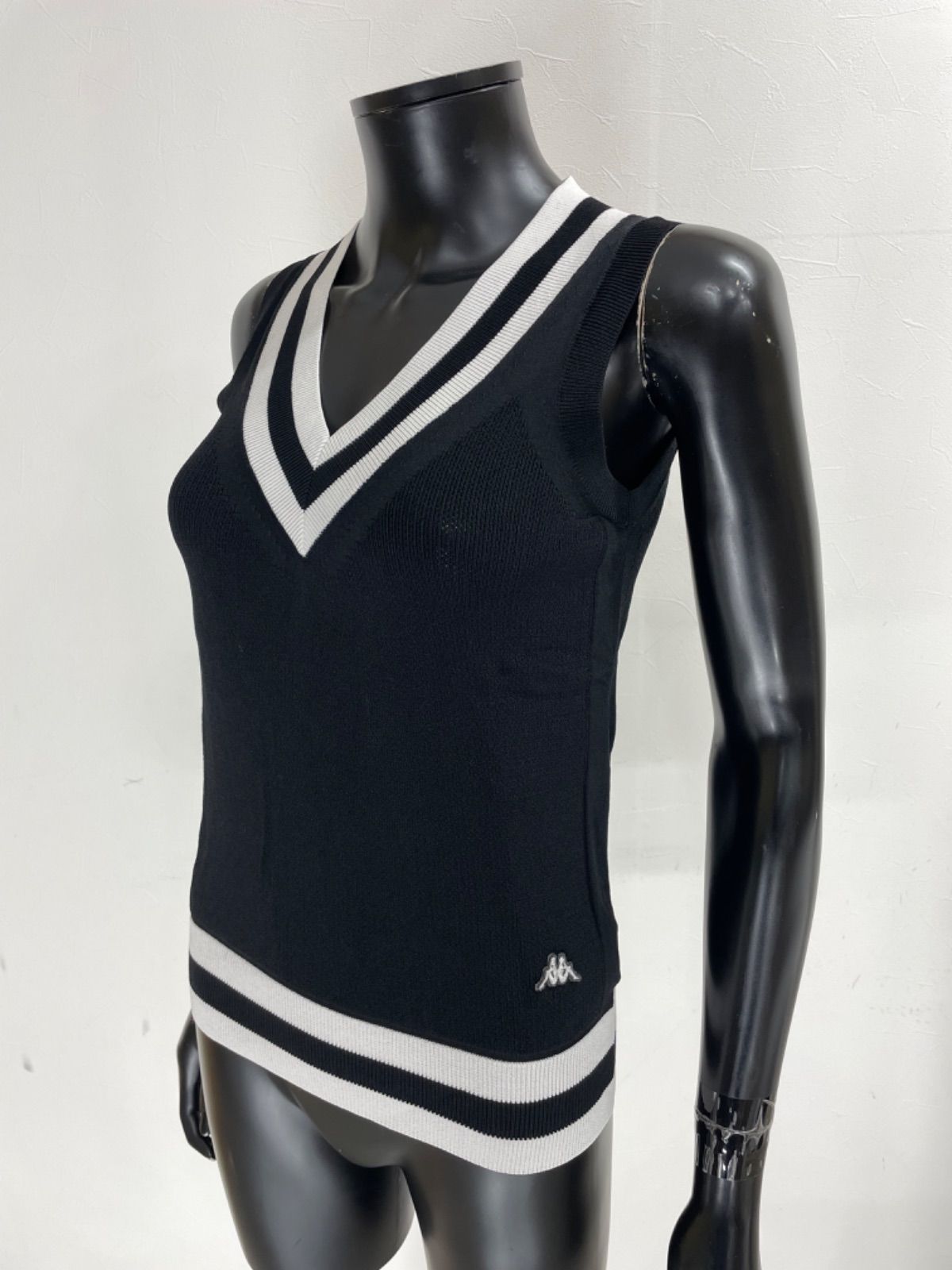 【USED】Kappa カッパ レーヨン Vネック ニット ベスト ワッペン ブラック 黒 レディース M ゴルフウェア